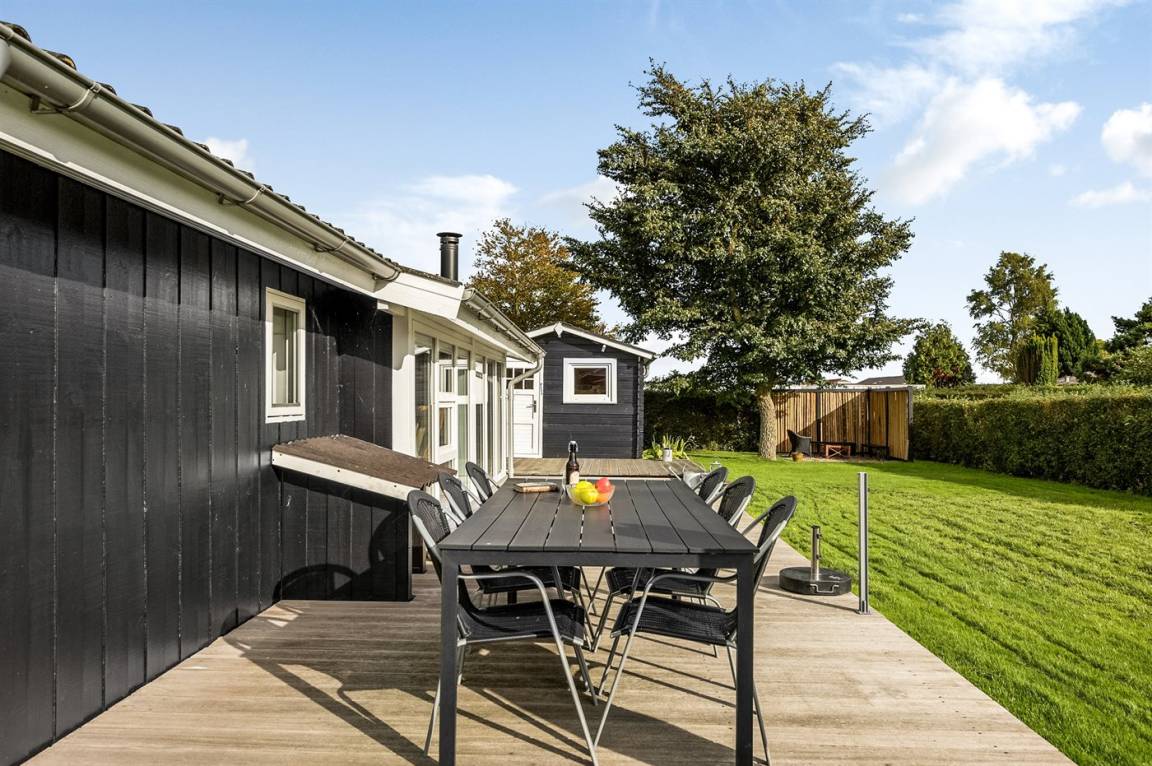 Dieses schöne und hell eingerichtete Ferienhaus liegt in dem gemütlichen Ferienort Hejlsminde. Zum Haus gehören eine gute Terrasse mit Gartenmöbeln sowie ein Gästehaus, das mit Doppelbett eingerichtet ist.