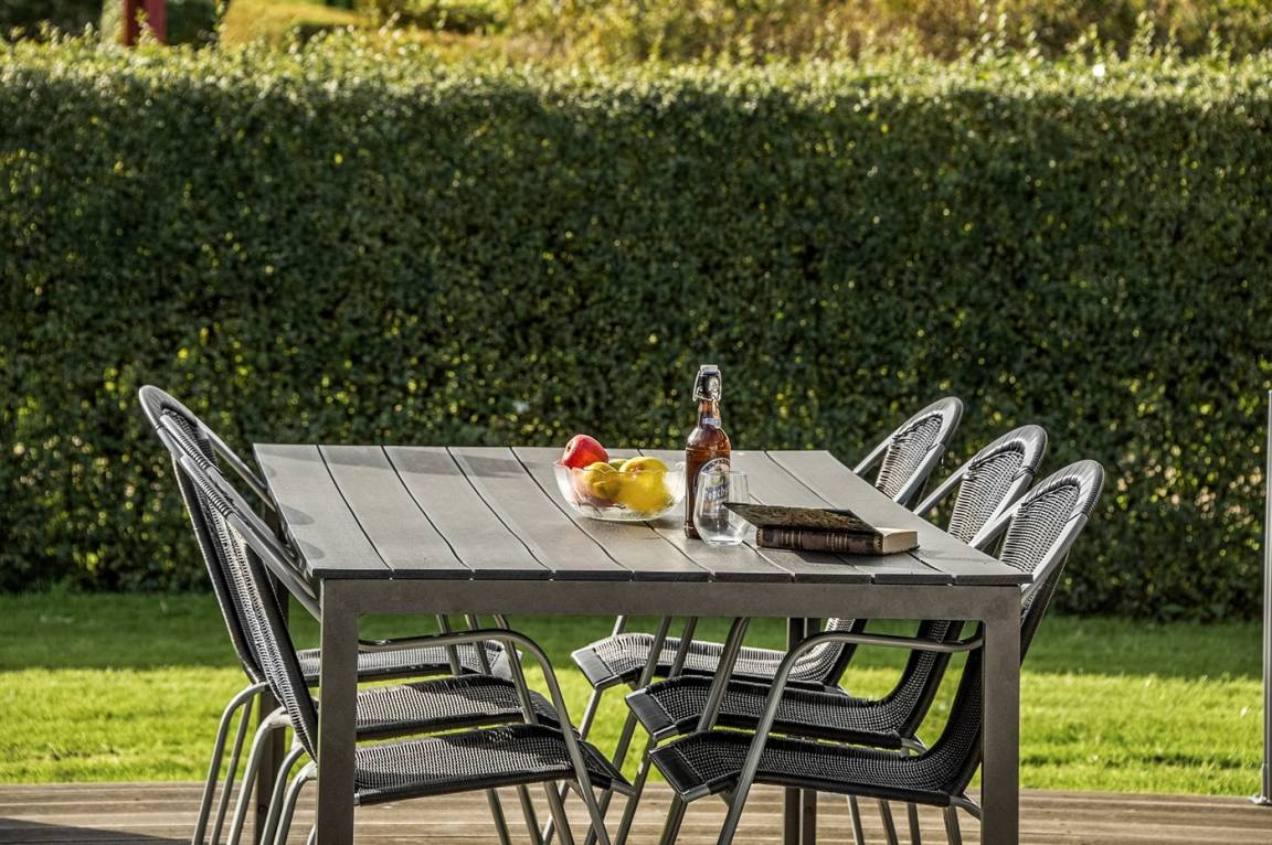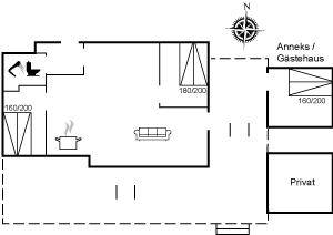 DraußenDie Ferienunterkunft liegt auf einem 682 m² großen Gartengrundstück. Die Entfernung zum Meer beträgt 700 m. Die nächste Einkaufsmöglichkeit liegt 1800 m entfernt. Es steht ein 40 m² Terrassenareal zur Verfügung. Sandkasten.Lagerfeuerstelle. Es steht ein Grill zur Verfügung. Parkplatz auf dem Grundstück.