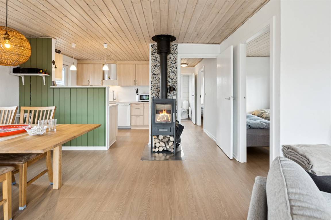 EinrichtungDas Ferienhaus eignet sich für 5 Personen sowie 1 Kleinkind bis zu 3 Jahren. Die Ferienunterkunft hat eine Wohnfläche von 66 m² und wurde 1971 gebaut. 2010 wurde die Ferienunterkunft teilweise renoviert. Es ist erlaubt 1 Haustier mitzubringen. Die Ferienunterkunft ist mit energiefreundlicher Luft-Luft- Wärmepumpe ausgestattet. Tiefkühlmöglichkeit mit 15 Liter Nutzinhalt. Es gibt außerdem einen Kaminofen. Für die jüngsten Feriengäste ist 1 Kinderhochstuhl vorhanden.