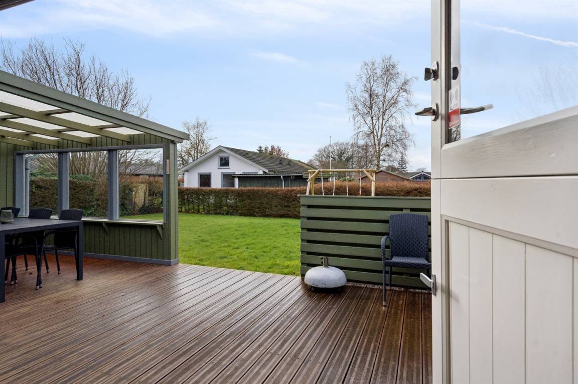 DraußenDie Ferienunterkunft liegt auf einem 680 m² großen Gartengrundstück. Die Entfernung zum Meer beträgt 650 m. Die nächste Einkaufsmöglichkeit liegt 4000 m entfernt. In einem Abstand von 16000 m gibt es einen Golfplatz. Es steht ein 20 m² Terrassenareal zur Verfügung. Außerdem gibt es 12 m² überdachte Terrasse. Schaukel. Sandkasten.Lagerfeuerstelle. Es steht ein Grill zur Verfügung.Es steht eine Garage zur Verfügung. Parkplatz auf dem Grundstück.