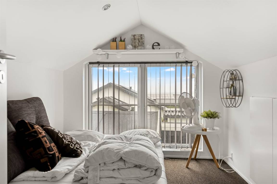 Im ersten Stock gibt es einen kleinen Aufenthaltsraum sowie ein Dachfenster, das sich öffnen lässt, sodass du den Blick auf den Kleinen Belt und die Umgebung genießen kannst.