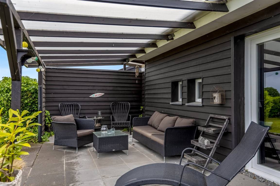 Das Leben im Freien ist hier etwas ganz Besonderes. Auf der großen Holzterrasse findest du einen gemütlichen, überdachten Loungebereich mit Gartenmöbeln und einer Hängeschaukel, auf der du die Abende genießen kannst. Am Gästehaus gibt es eine Außendusche – perfekt nach einem Tag am Strand.