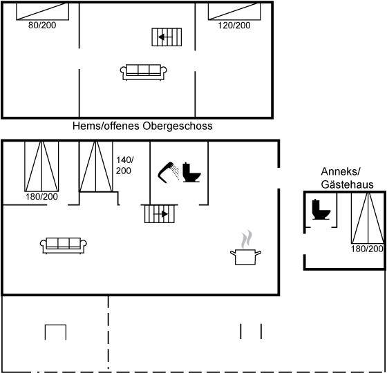 SchlafverhältnisseDie Schlafplätze verteilen sich auf 5 Schlafräume. 6 Schlafplätze in Doppelbetten. 2 Schlafplätze in Einzelbetten. 2 von diesen Schlafplätzen befinden sich im Gästehaus. Ferner steht ein Kinderbett zur Verfügung.