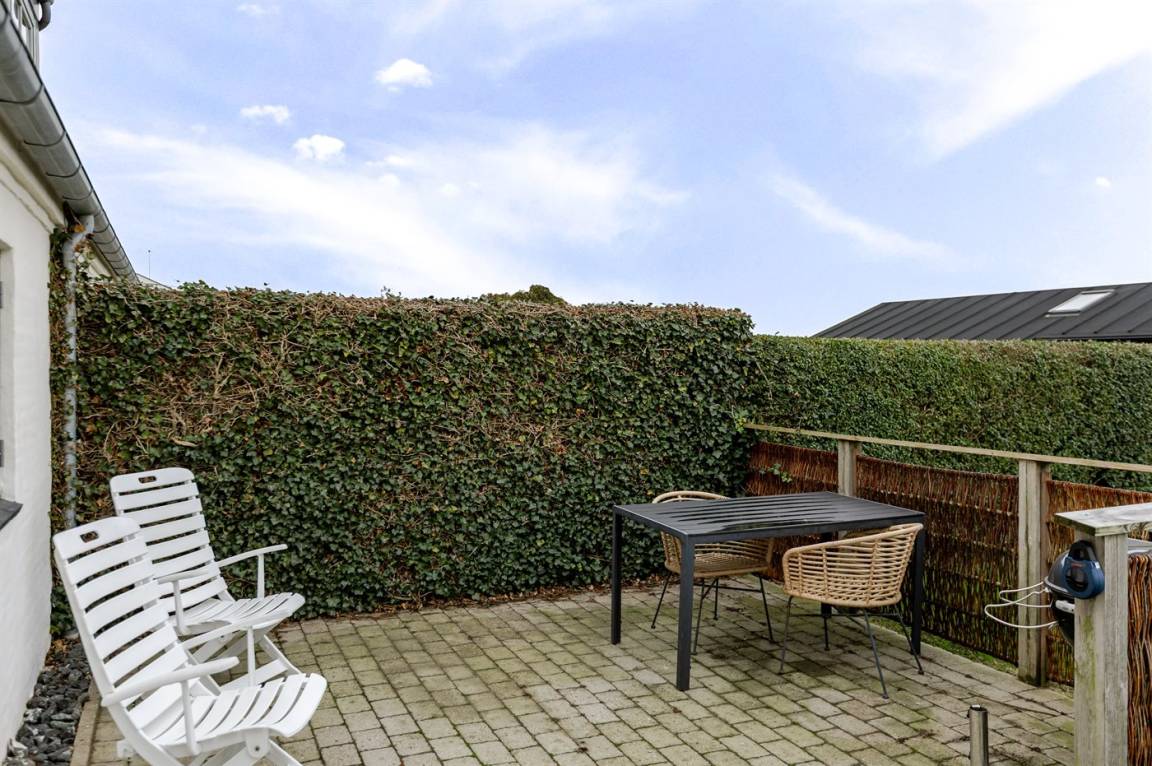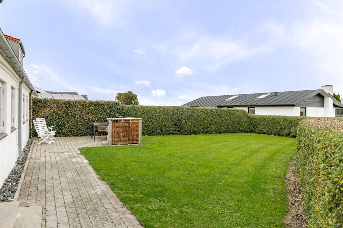 Der Garten bietet mehrere gemütliche Ecken und eine grüne Rasenfläche, auf der ihr Ball spielen, die Sonne genießen oder ein leckeres Essen auf dem Grill zubereiten könnt. Für die jüngsten Familienmitglieder gibt es einen Spielplatz nur etwa 80 Meter vom Haus entfernt, und nur rund 100 Meter weiter findet ihr den Strand – einen kinderfreundlichen Strand mit feinem, weißem Sand und guten Möglichkeiten für entspannte Spaziergänge entlang der Küste.