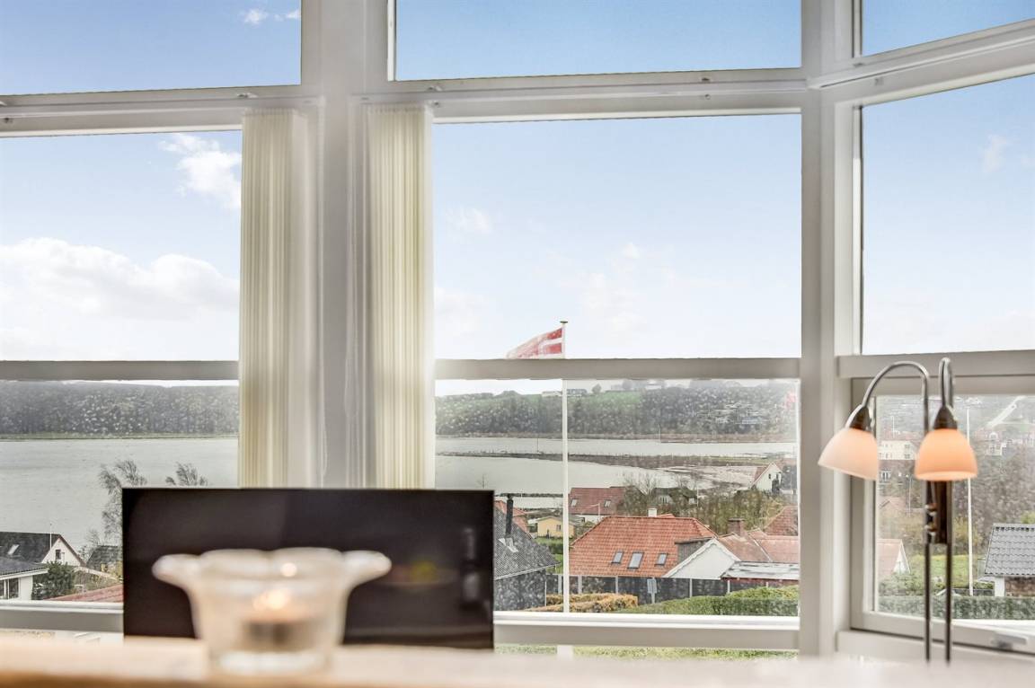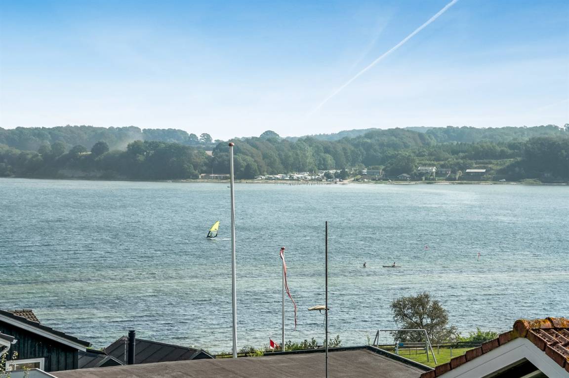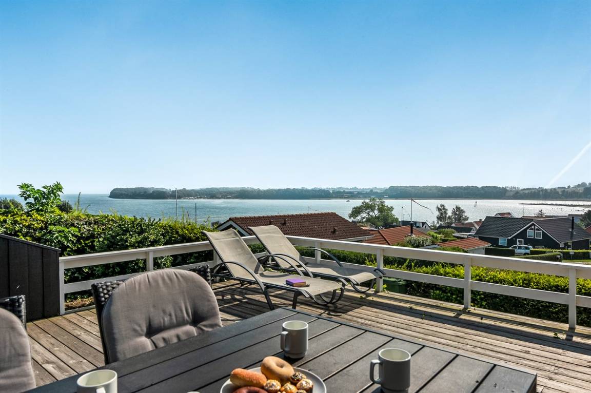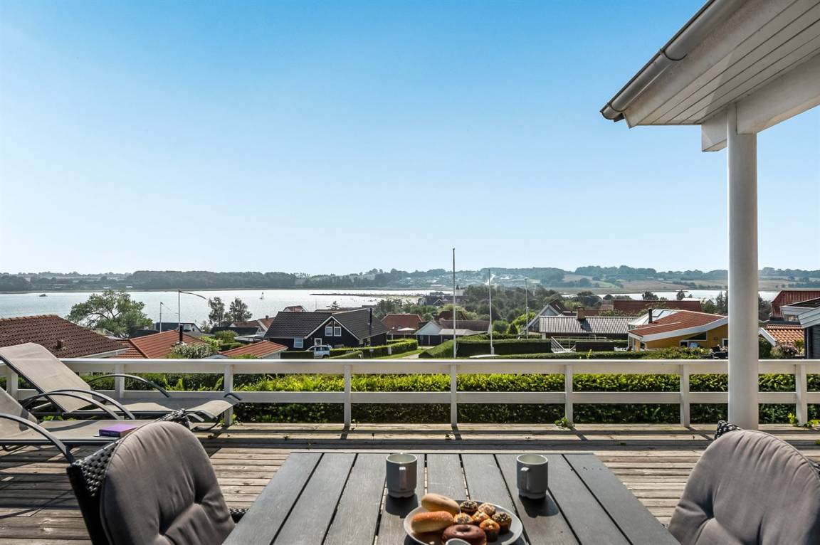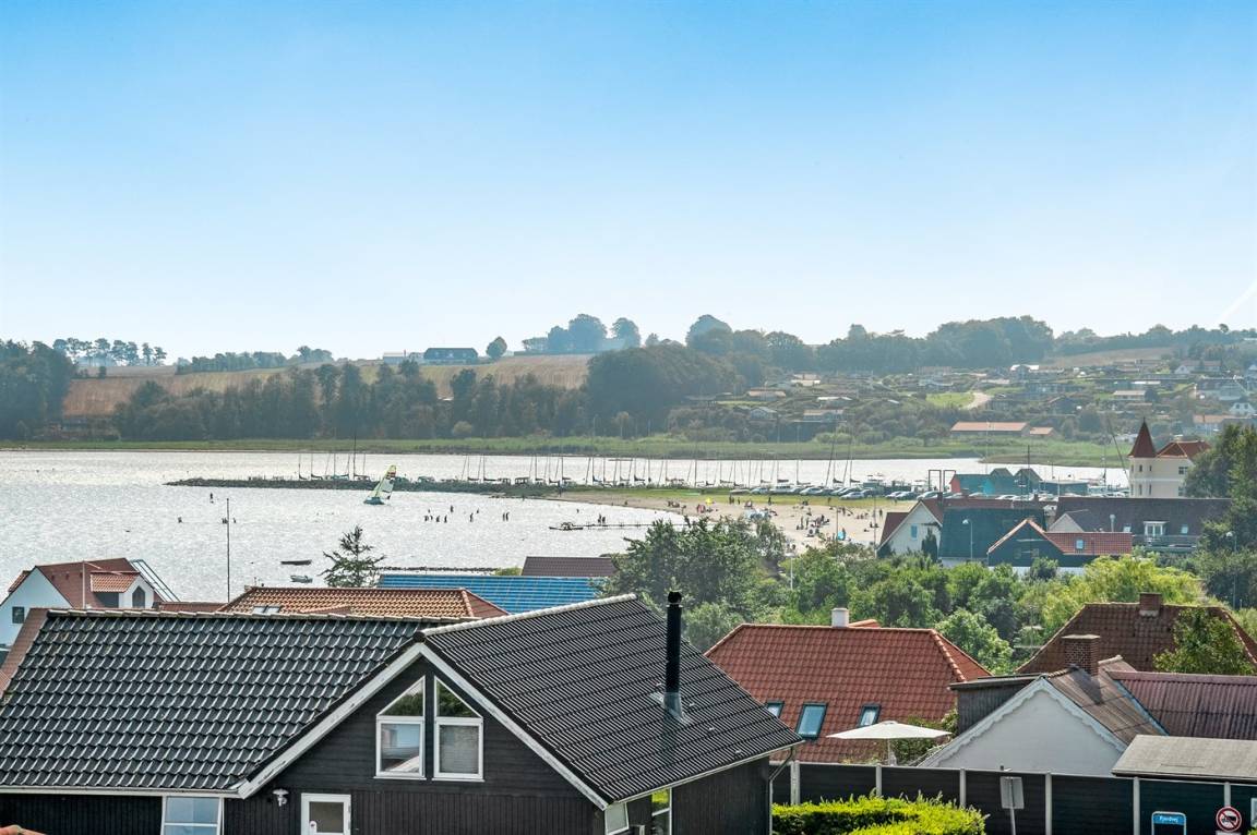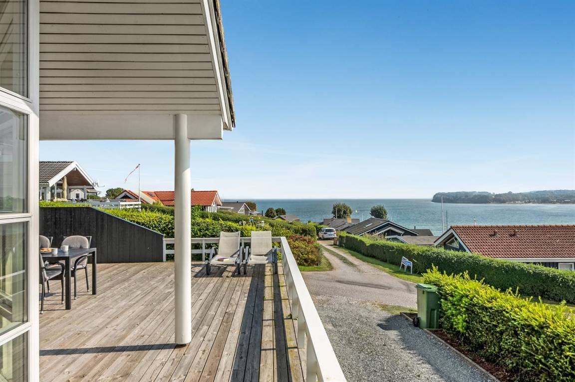 Von einem Architekten gezeichnetes, exklusives Ferienhaus, hoch auf einem phantastischen Gartengrundstück mit einer besonders hübschen Panoramaaussicht über den Kleinen Belt sowie den Segelboothafen in Hejlsminde gelegen. Beheizbare italienische Klinkerböden im Wohnzimmer, in der Küche und im Badezimmer. Ferner gibt es Teppichböden in den Zimmern.