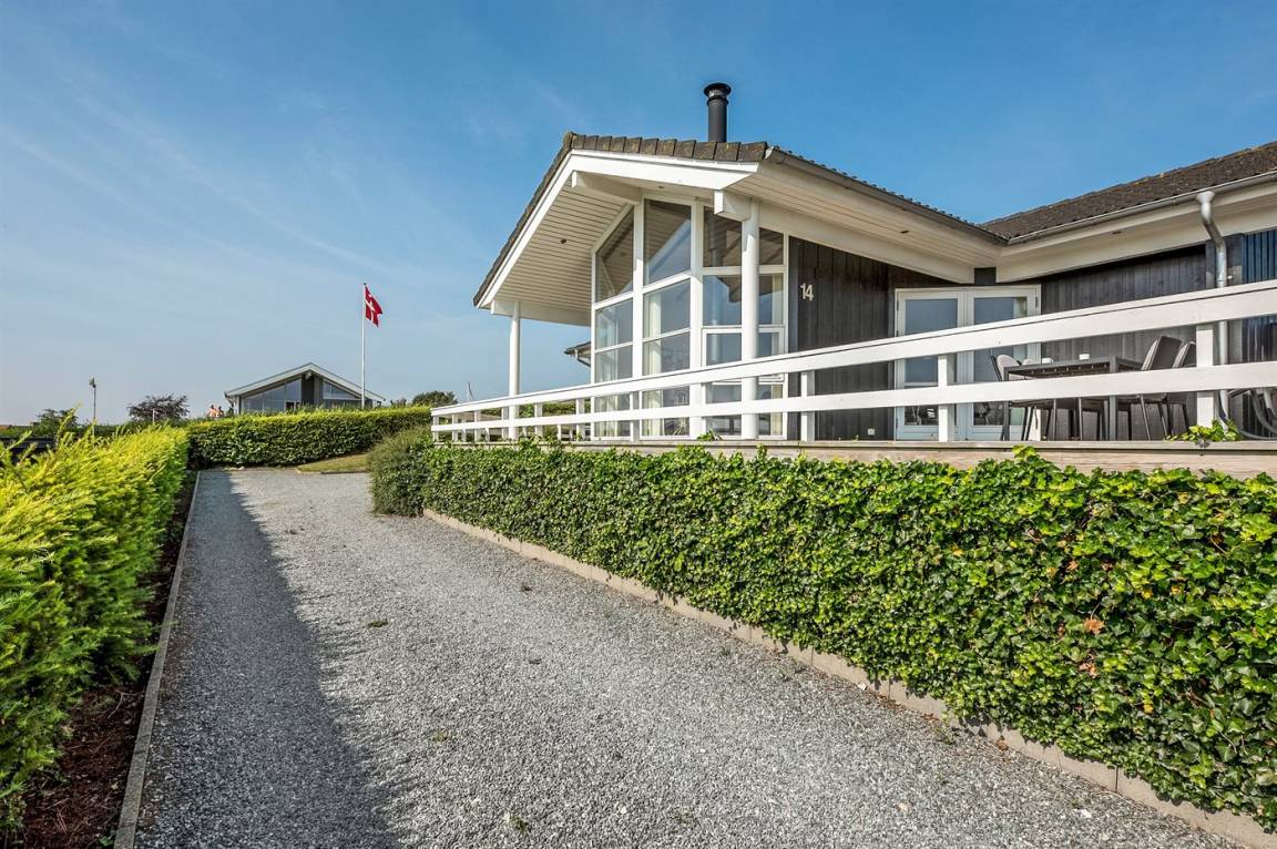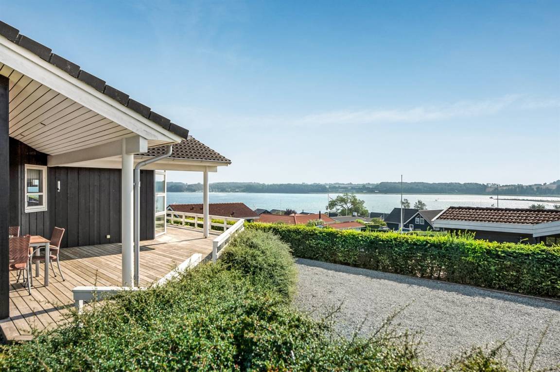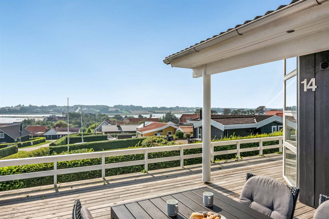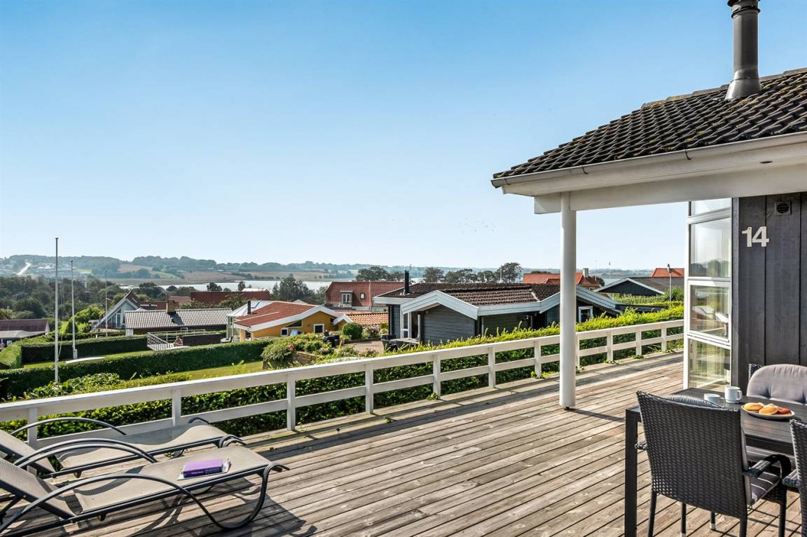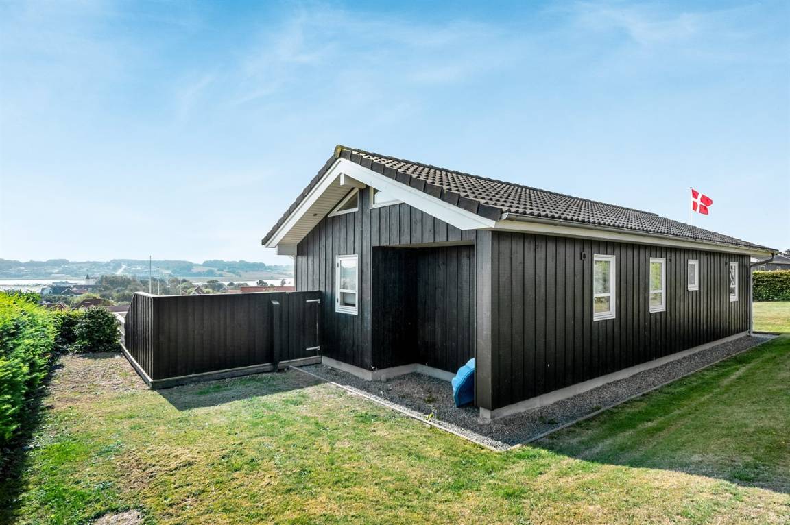 Von einem Architekten gezeichnetes, exklusives Ferienhaus, hoch auf einem phantastischen Gartengrundstück mit einer besonders hübschen Panoramaaussicht über den Kleinen Belt sowie den Segelboothafen in Hejlsminde gelegen. Beheizbare italienische Klinkerböden im Wohnzimmer, in der Küche und im Badezimmer. Ferner gibt es Teppichböden in den Zimmern.