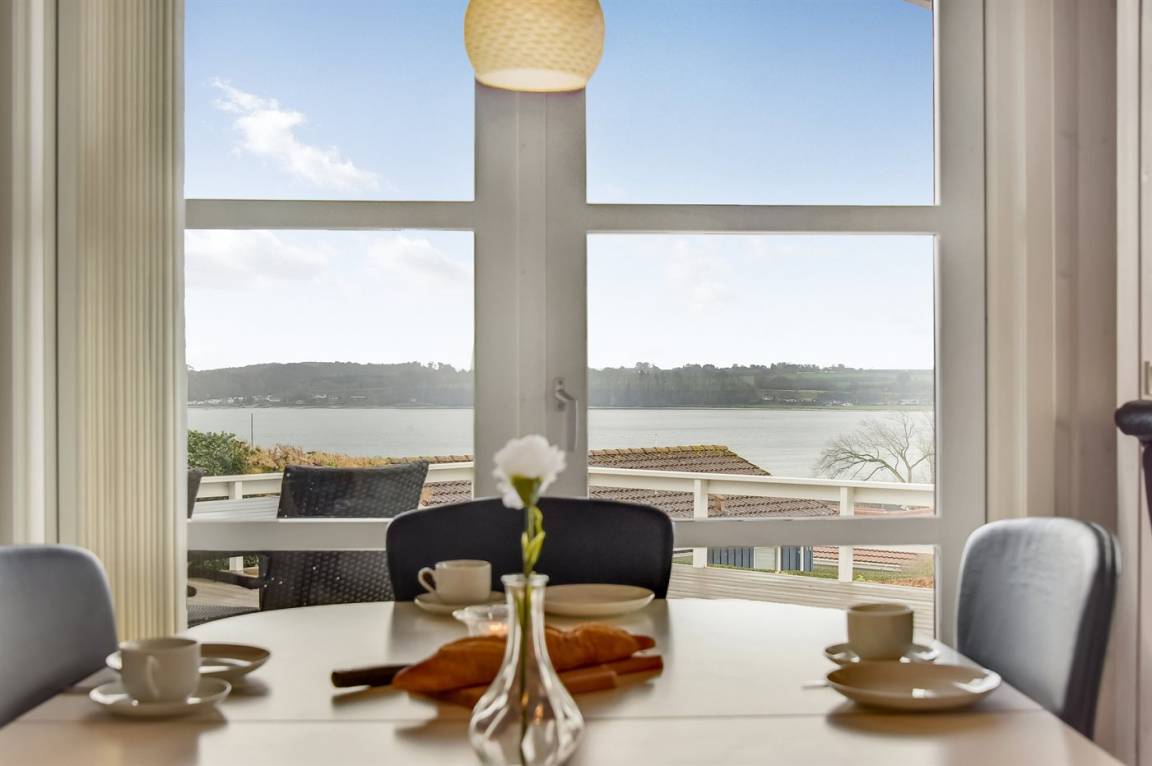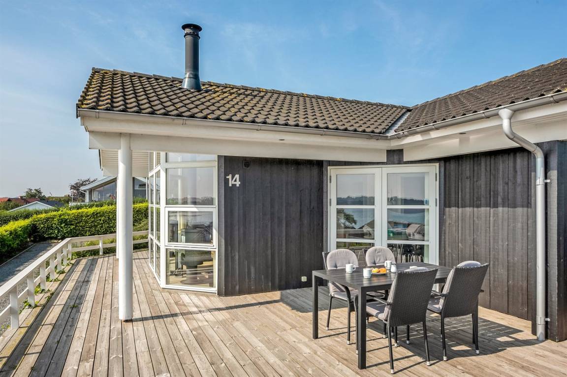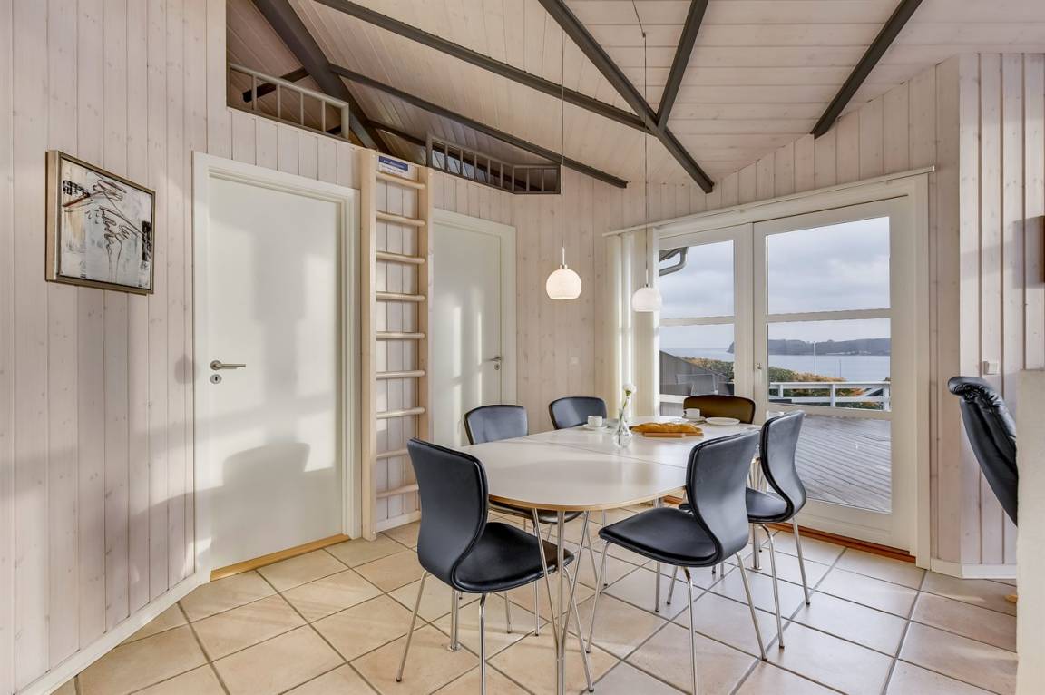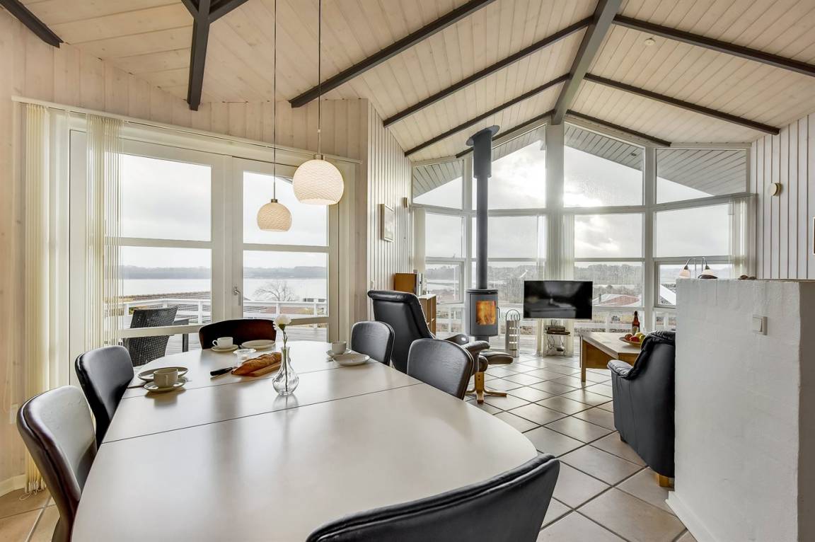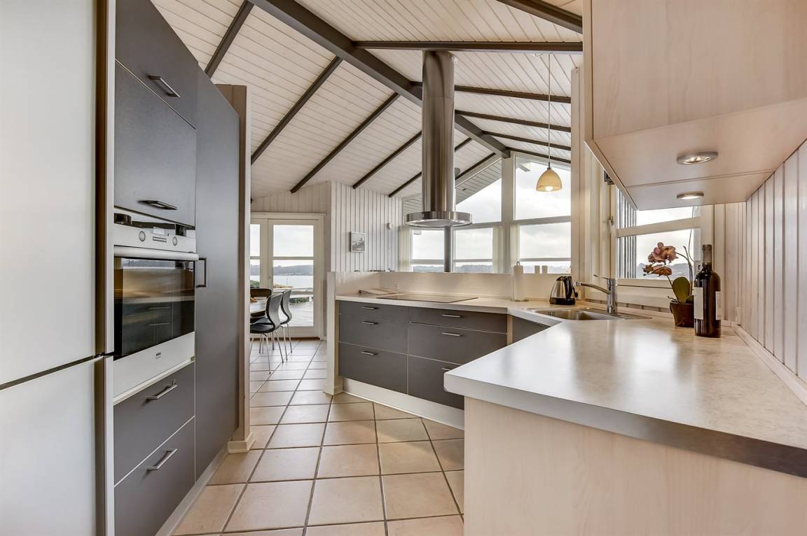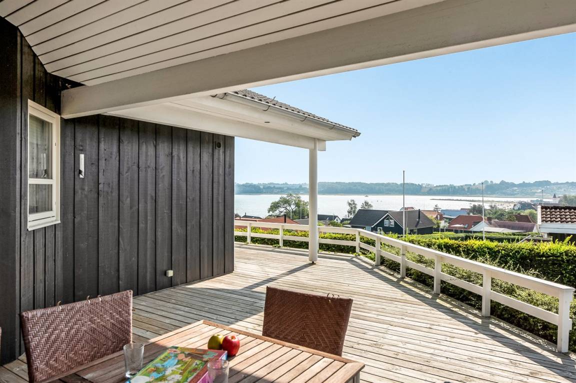 Von einem Architekten gezeichnetes, exklusives Ferienhaus, hoch auf einem phantastischen Gartengrundstück mit einer besonders hübschen Panoramaaussicht über den Kleinen Belt sowie den Segelboothafen in Hejlsminde gelegen. Beheizbare italienische Klinkerböden im Wohnzimmer, in der Küche und im Badezimmer. Ferner gibt es Teppichböden in den Zimmern.