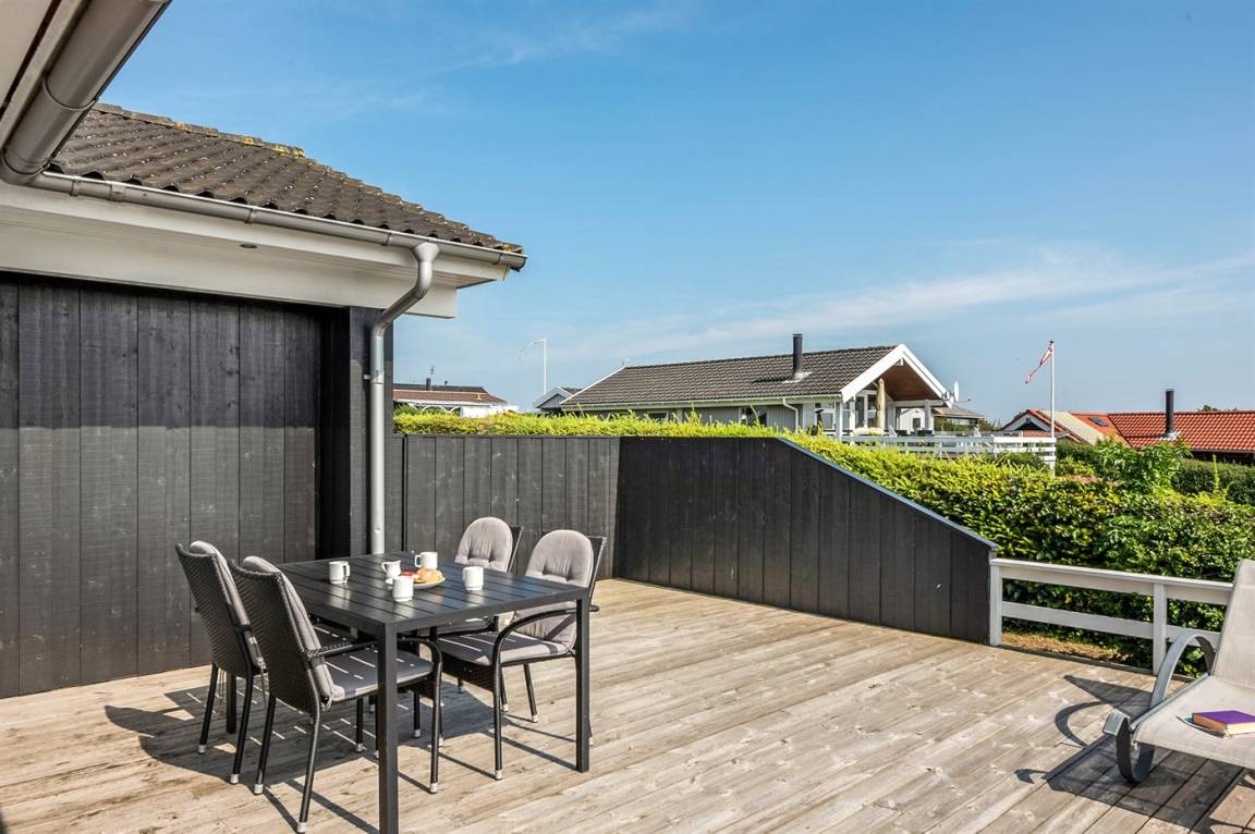 DraußenDie Ferienunterkunft liegt auf einem 610 m² großen Gartengrundstück. Die Entfernung zum Meer beträgt 150 m. Die nächste Einkaufsmöglichkeit liegt 500 m entfernt. Es steht ein 65 m² Terrassenareal zur Verfügung. Außerdem gibt es 22 m² überdachte Terrasse. Schaukel. Sandkasten. Parkplatz auf dem Grundstück.