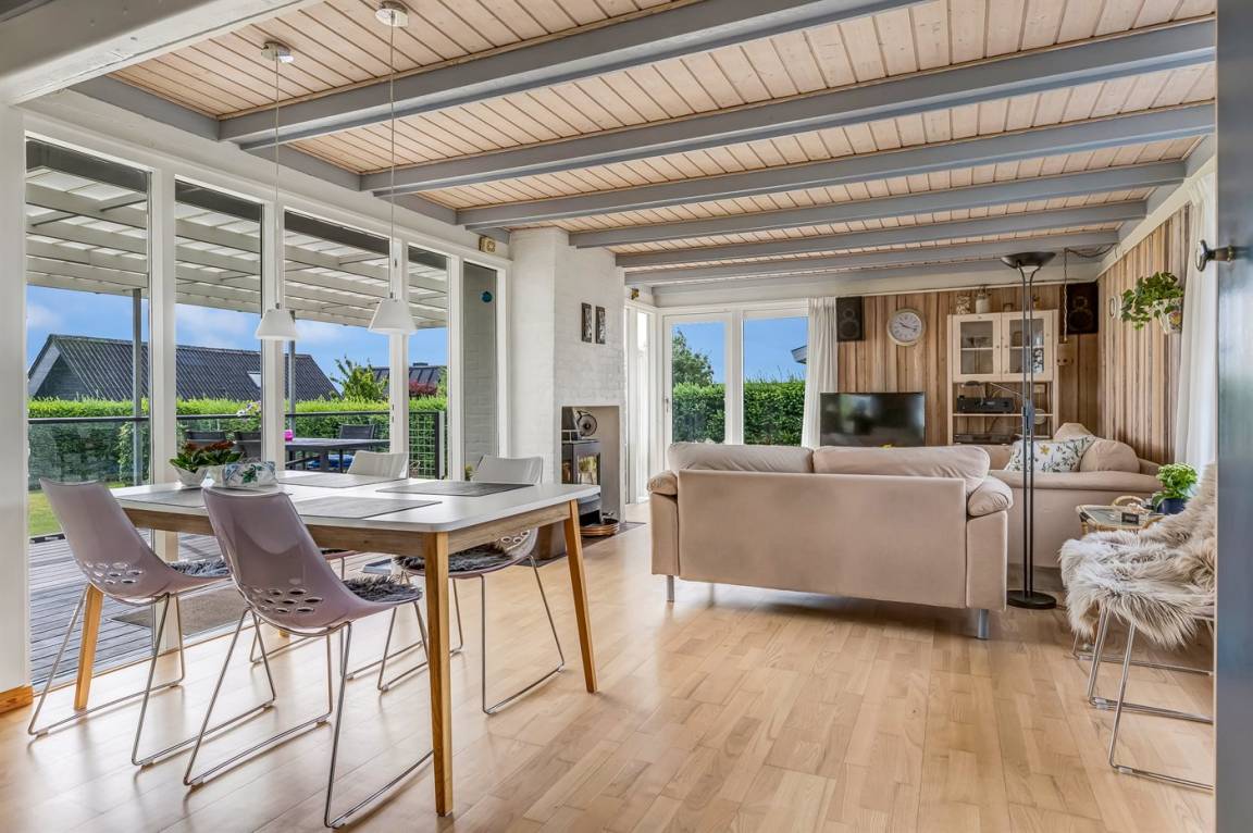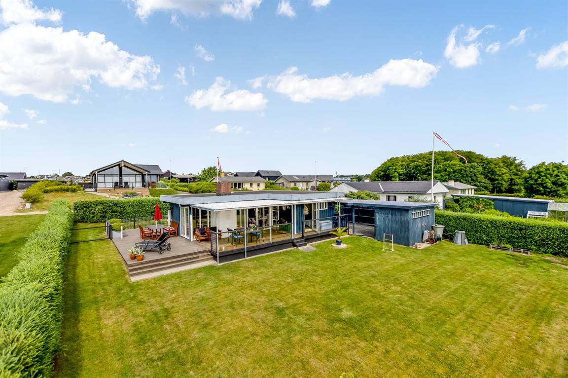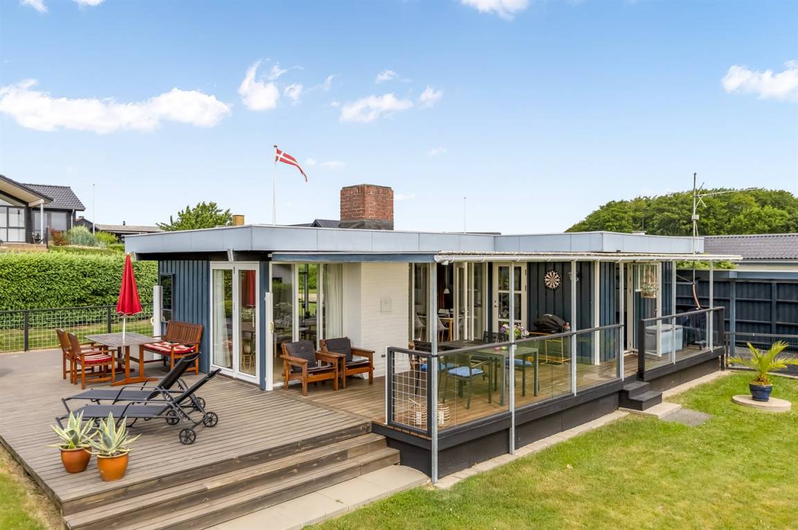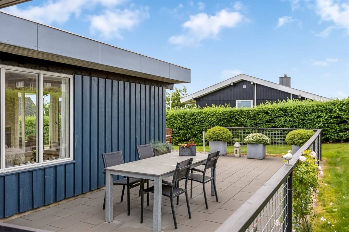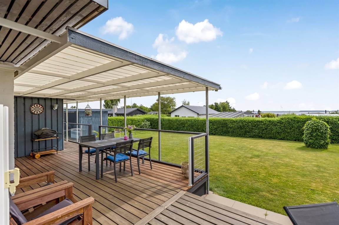 Im Garten findest du mehrere Terrassenbereiche sowie eine große überdachte Fläche, auf der du das Leben im Freien vom Morgen bis zum Abend genießen kannst – mit Blick auf das glitzernde Wasser in Hejlsminde. Der Garten bietet zudem viel Platz für Ballspiele, Spiele und gemütliche Stunden unter freiem Himmel an.
