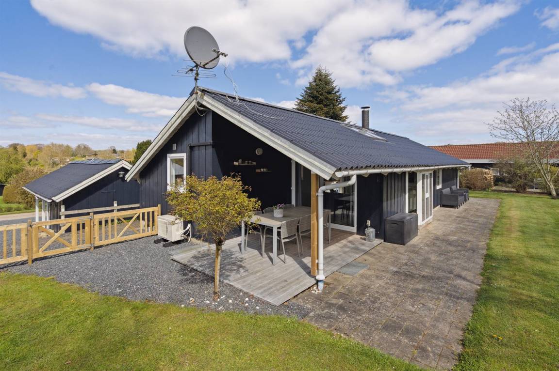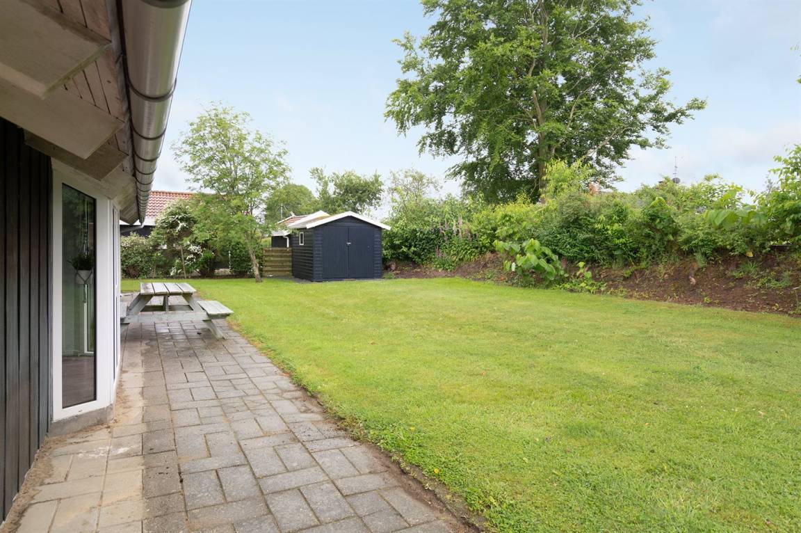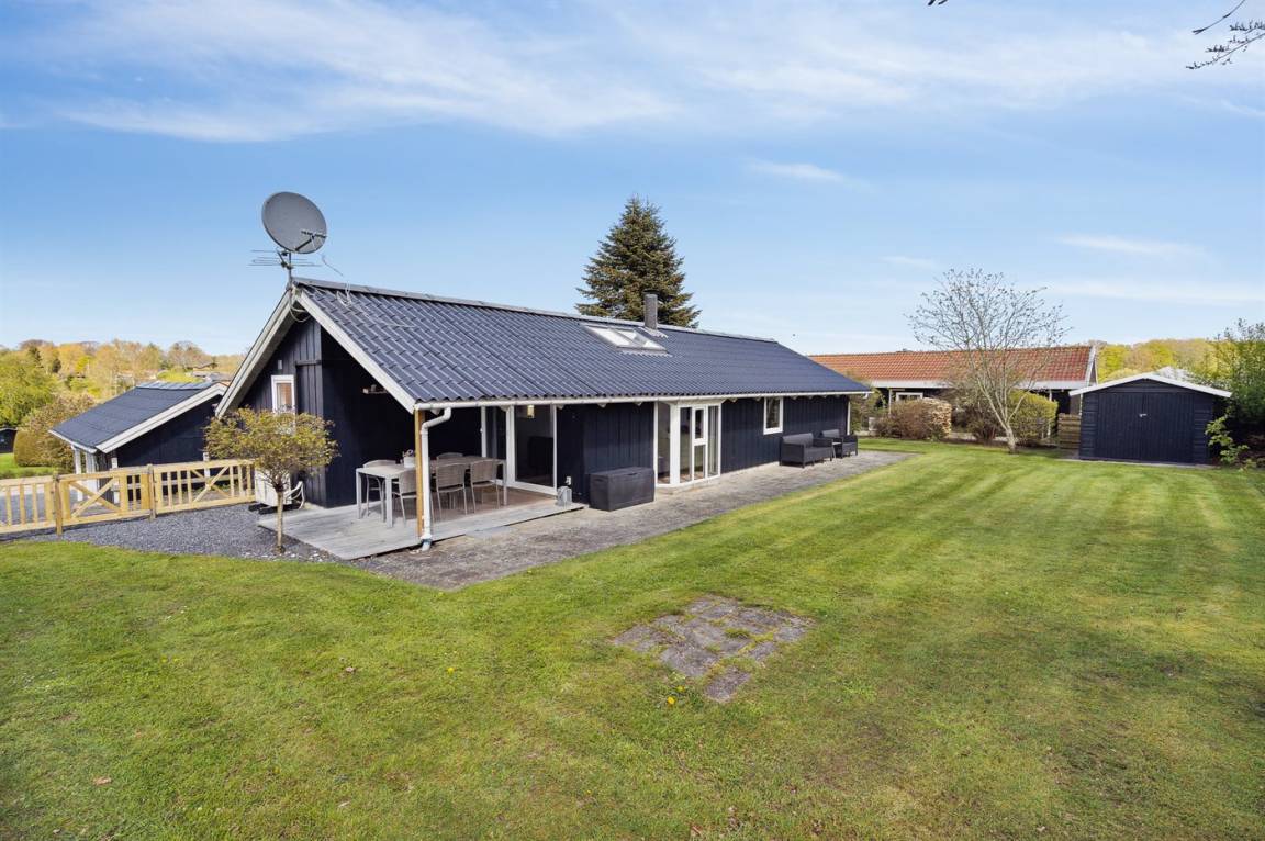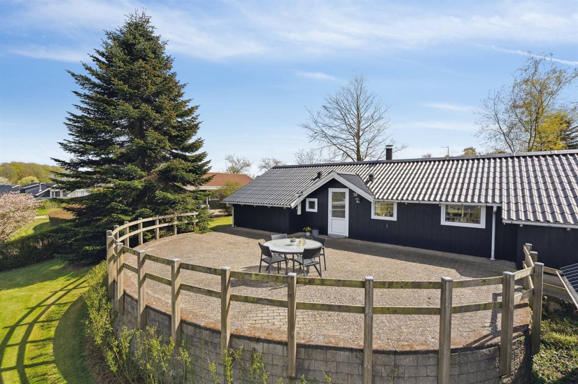 Dieses Ferienhaus liegt auf einem geneigten Grundstück in einer Sackgasse in einem Ferienhausgebiet zwischen dem Kleinen Belt und der Förde "Hejls Nor". Sie können vom Grundstück die Förde ahnen.