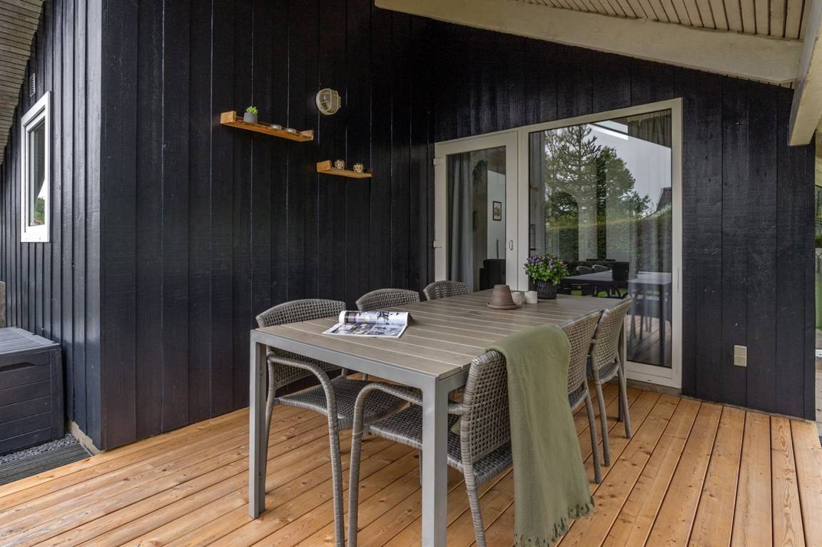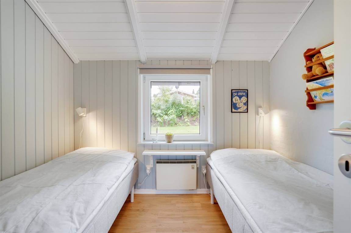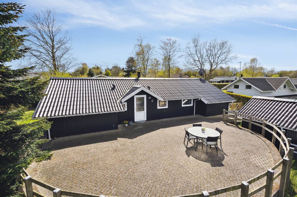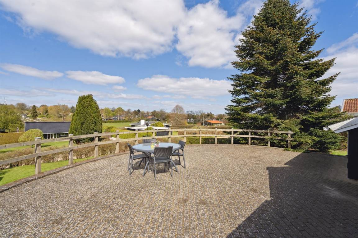 Dieses Ferienhaus liegt auf einem geneigten Grundstück in einer Sackgasse in einem Ferienhausgebiet zwischen dem Kleinen Belt und der Förde "Hejls Nor". Sie können vom Grundstück die Förde ahnen.