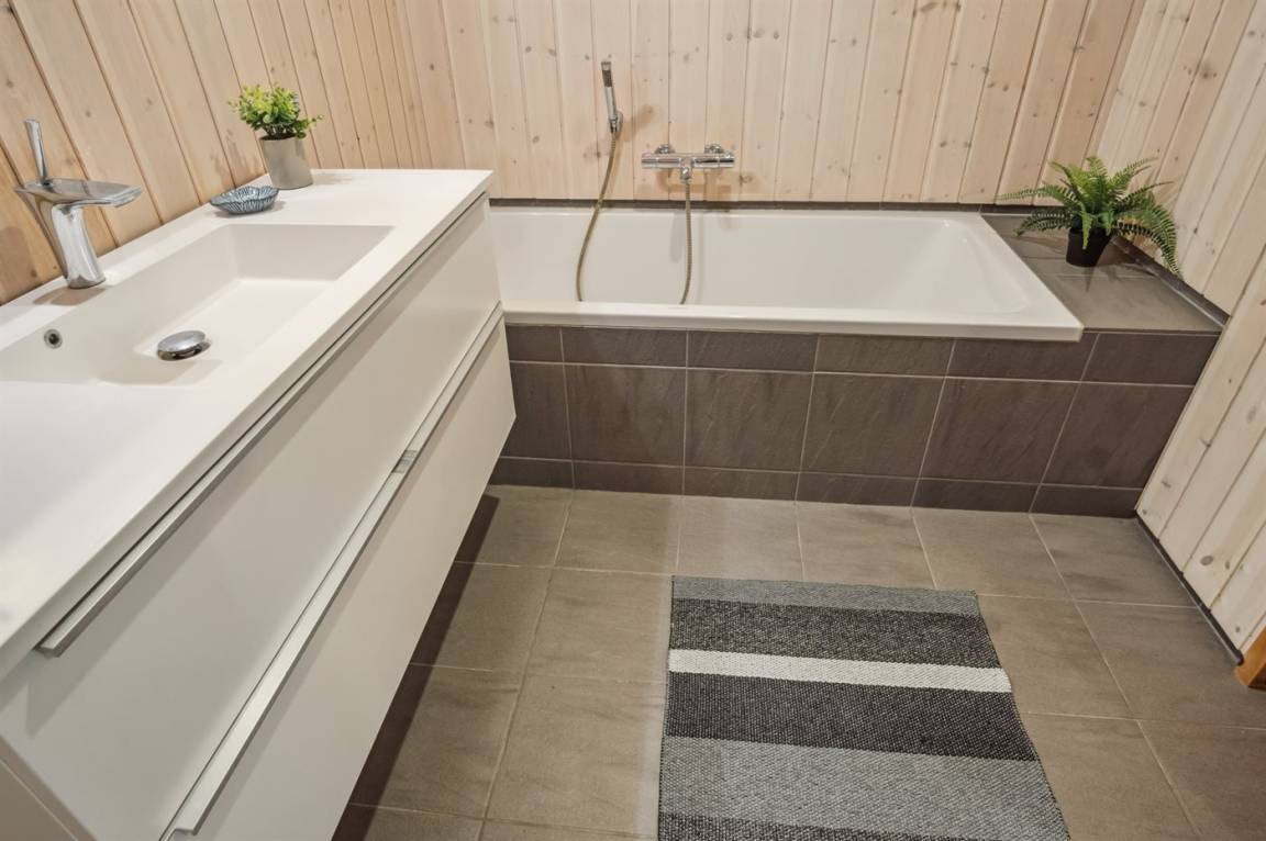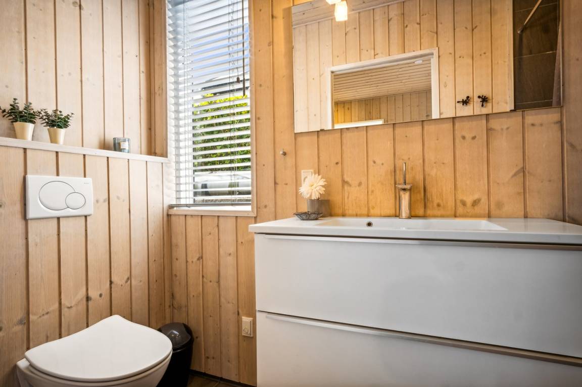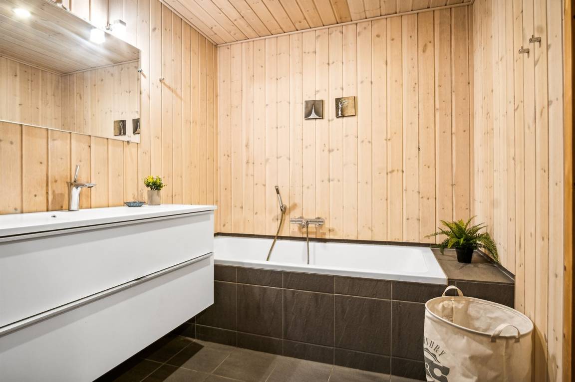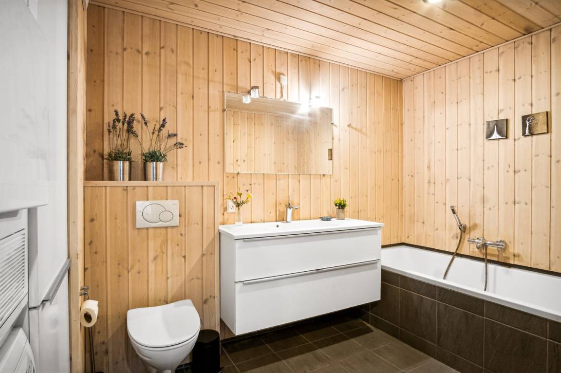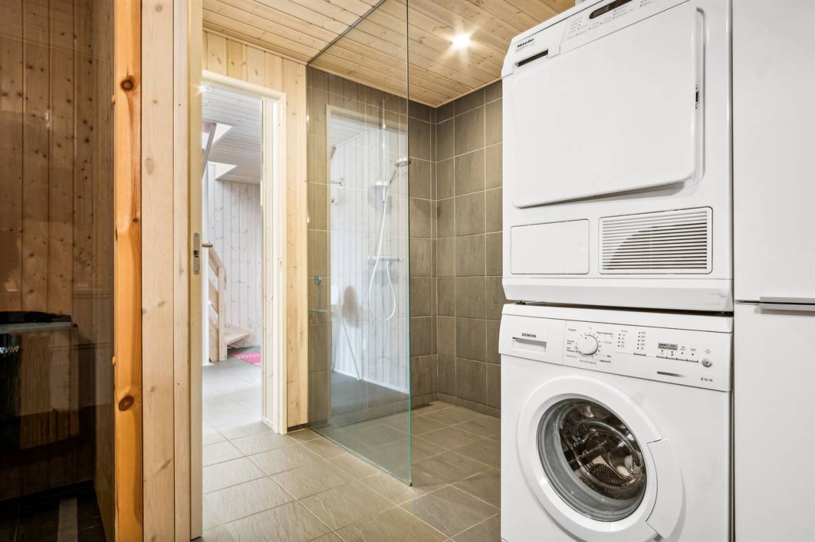 Ferner ist ein Kinderhochstuhl vorhanden und es ist kabellose Internetverbindung installiert. Das Haus ist mit 2 Badezimmern eingerichtet; 1 mit Duschnische im Erdgeschoss und 1 mit Dusche, Badewanne, Waschmaschine und Zutritt zur Sauna im Keller. Es ist eine energiegerechte Wärmepumpe installiert.