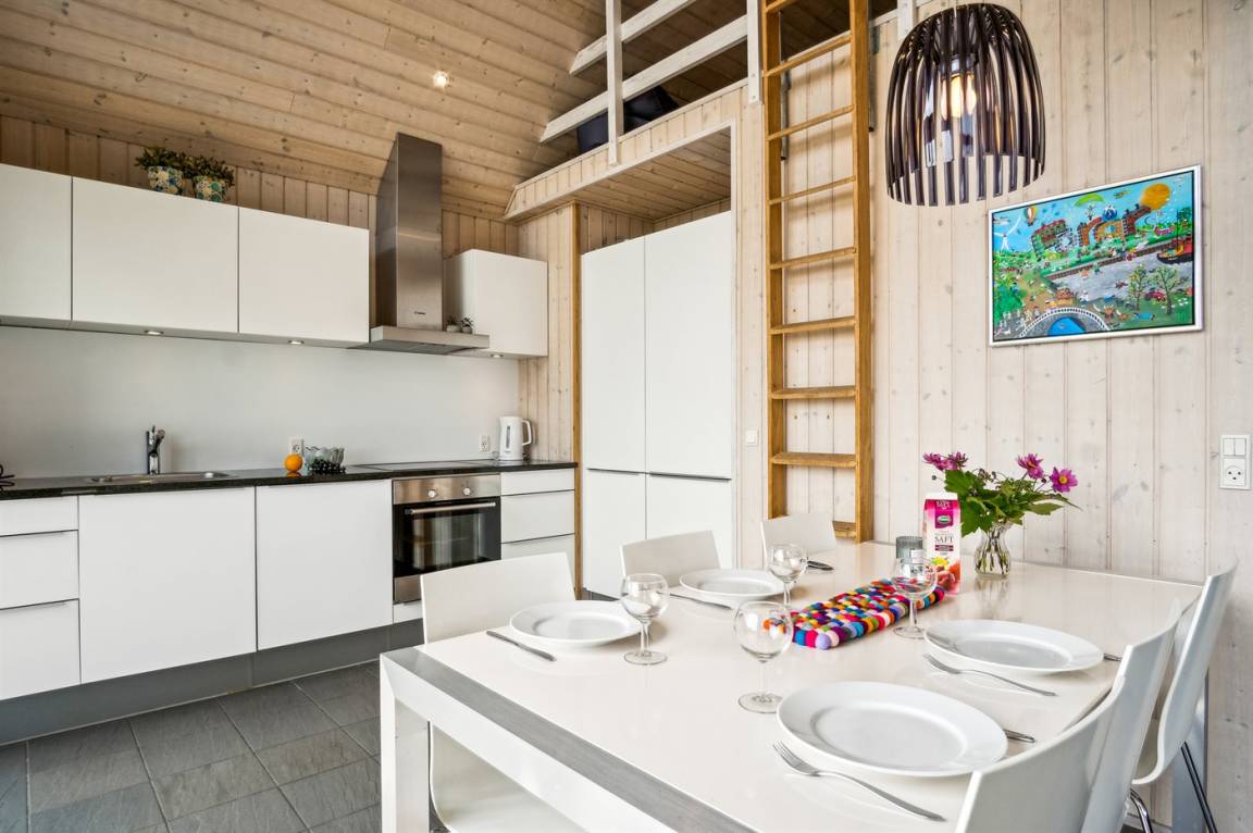 Die schöne Küche ist mit u. a. Mikrowelle, Tiefkühlgerät 40L und Herd mit Ceran-Feld ausgestattet. Im Wohnzimmer finden Sie Kaminofen, Flatscreen-TV (Kabelanschluss) mit eingebautem DVD-Spieler sowie Stereoanlage. Die Schlafplätze verteilen sich auf 3 Zimmer mit Doppelbett und 2 Schlafplätze im offenen Obergeschoss.