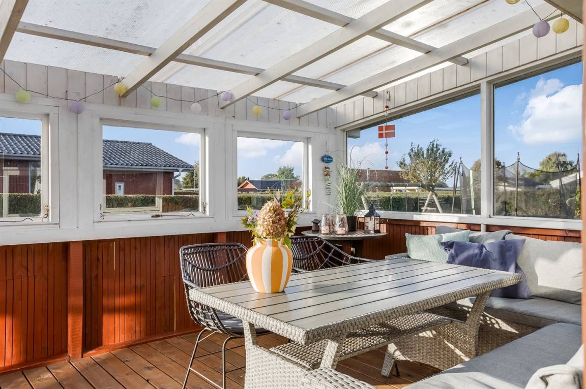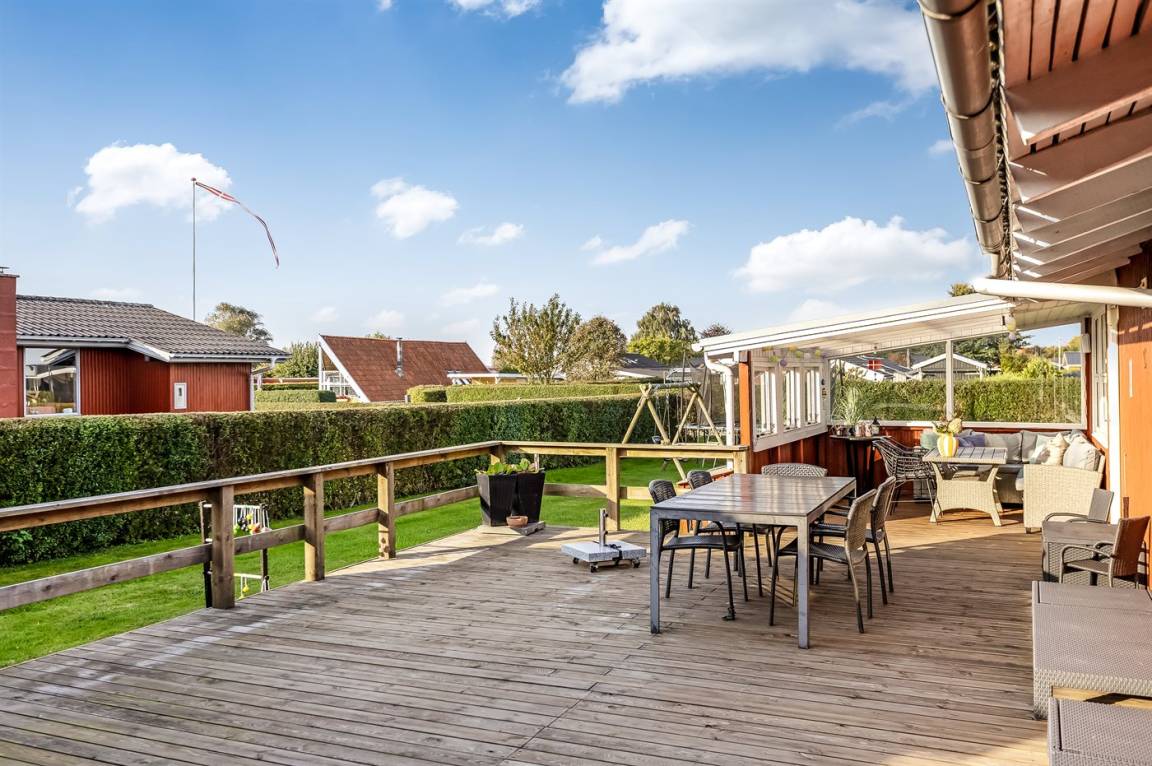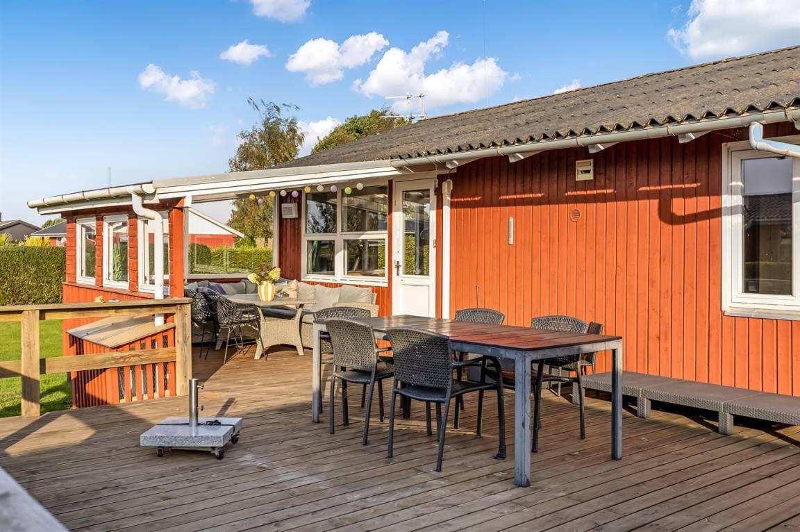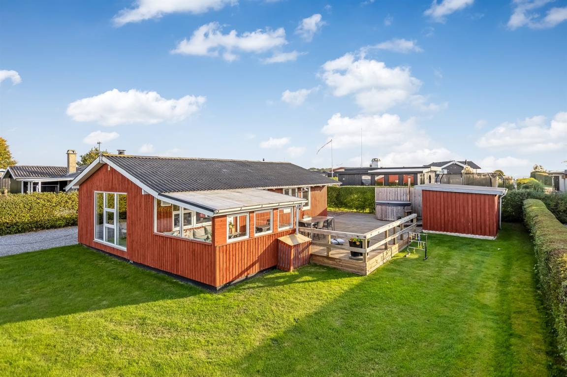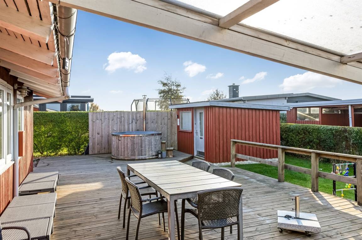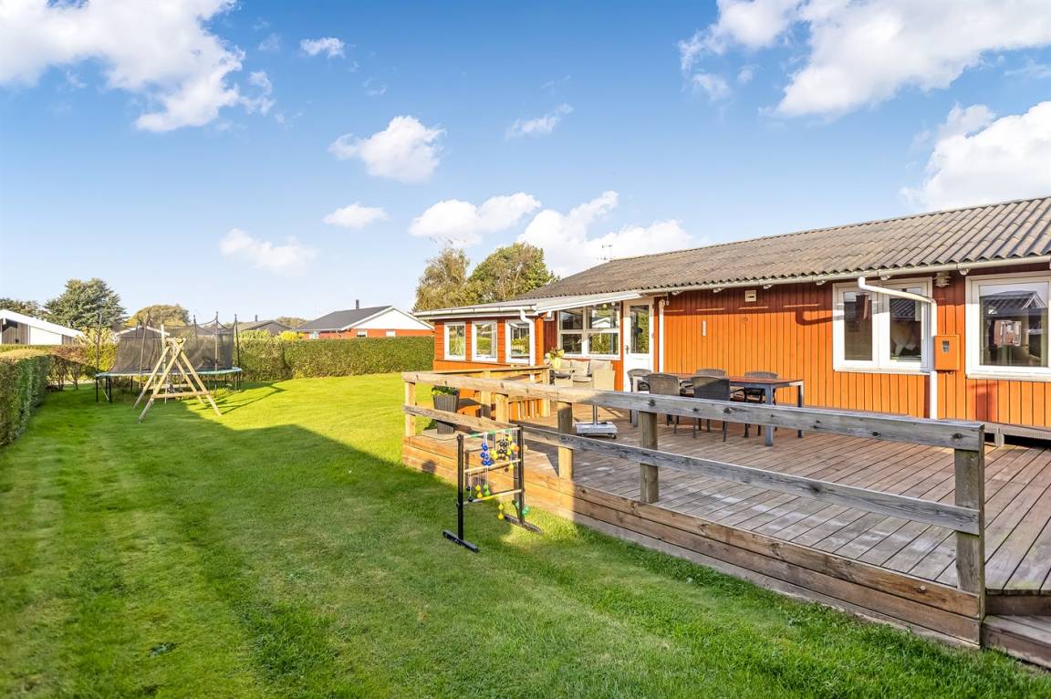 DraußenDie Ferienunterkunft liegt auf einem 682 m² großen Gartengrundstück. Die Entfernung zum Meer beträgt 500 m. Die nächste Einkaufsmöglichkeit liegt 3400 m entfernt. Es steht ein offenes Terrassenareal zur Verfügung. Außerdem gibt es überdachte Terrasse. Schaukel. Sandkasten. Trampolin. Es steht ein Grill zur Verfügung. Parkplatz auf dem Grundstück.