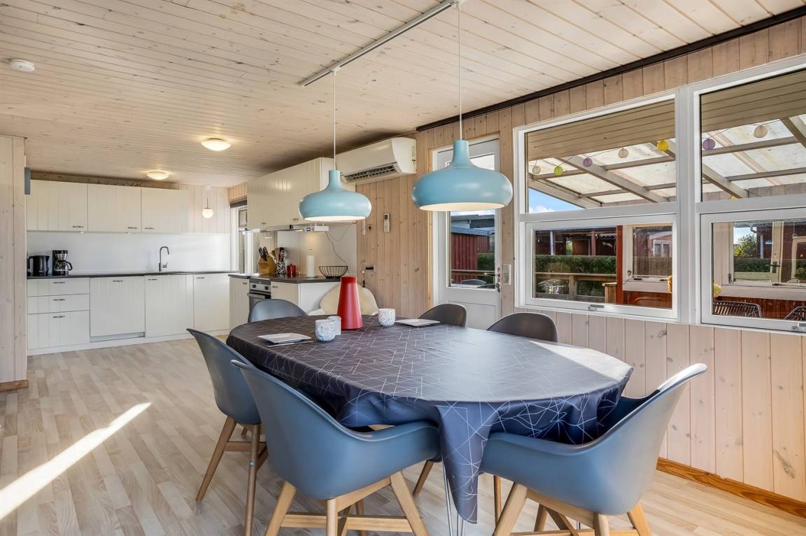 Das Ferienhaus eignet sich für 6 Personen sowie 1 Kleinkind bis zu 3 Jahren. Die Ferienunterkunft hat eine Wohnfläche von 70 m² und wurde 1971 gebaut. 2018 wurde die Ferienunterkunft renoviert. Haustiere dürfen nicht mitgebracht werden. Die Ferienunterkunft ist mit energiefreundlicher Luft-Luft- Wärmepumpe ausgestattet. Die Ferienunterkunft ist mit Waschmaschine ausgestattet. Wäschetrockner. Tiefkühlmöglichkeit mit 60 Liter Nutzinhalt. Es gibt außerdem einen Kaminofen. Für die jüngsten Feriengäste ist 1 Kinderhochstuhl vorhanden.