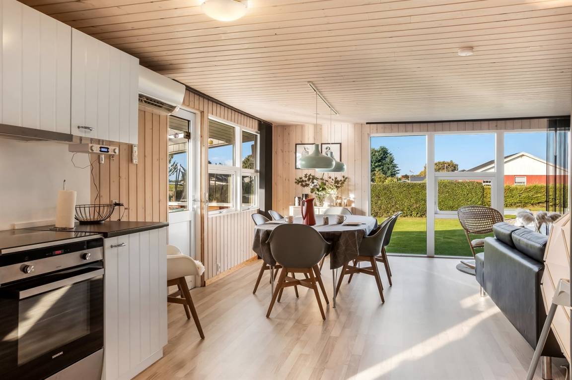Das Haus ist hell, geräumig und gemütlich eingerichtet – und bietet Platz für bis zu sechs Personen, und die Schlafplätze sind auf drei separate Schlafzimmer verteilt. Der große Küchen- und Wohnbereich lädt zu gemeinsame Stunden und Aktivitäten ein. Von hier aus habt ihr direkten Zugang zu einer überdachten Terrasse mit einer gemütlichen Lounge-Ecke, wo ihr entspannen und viele schöne Stunden im Freien genießen könnt.