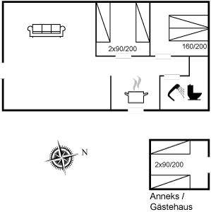 SchlafverhältnisseDie Schlafplätze verteilen sich auf 3 Schlafräume. 2 Schlafplätze in einem Doppelbett. 4 Schlafplätze in Einzelbetten.2 von diesen Schlafplätzen befinden sich im Gästehaus.