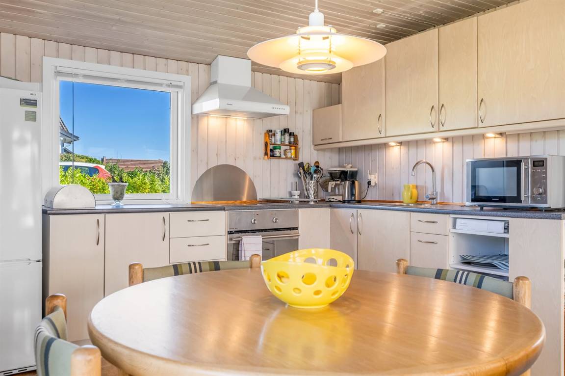 Wenn du von einem erholsamen Urlaub in einem gemütlichen Ferienhaus für vier Personen träumst, ist dieses Haus im schönen Hejlsminde die perfekte Wahl. Hier findest du den idealen Rahmen für eine entspannte Auszeit voller Nähe, Ruhe und unvergesslicher Urlaubsmomente. Der natürliche Treffpunkt des Hauses ist die helle und einladende Wohnküche mit Essplatz und gemütlicher Sofaecke – perfekt, um leckere Mahlzeiten zuzubereiten, gemeinsam zu essen und einfach zu entspannen. Außerdem gibt es einen schönen Wintergarten, in dem du eine Runde Tischfußball spielen kannst. Auch an die Kinder wurde gedacht: Da eine Schaukel und ein Sandkasten vorhanden sind – ideal für Spiel und Spaß.