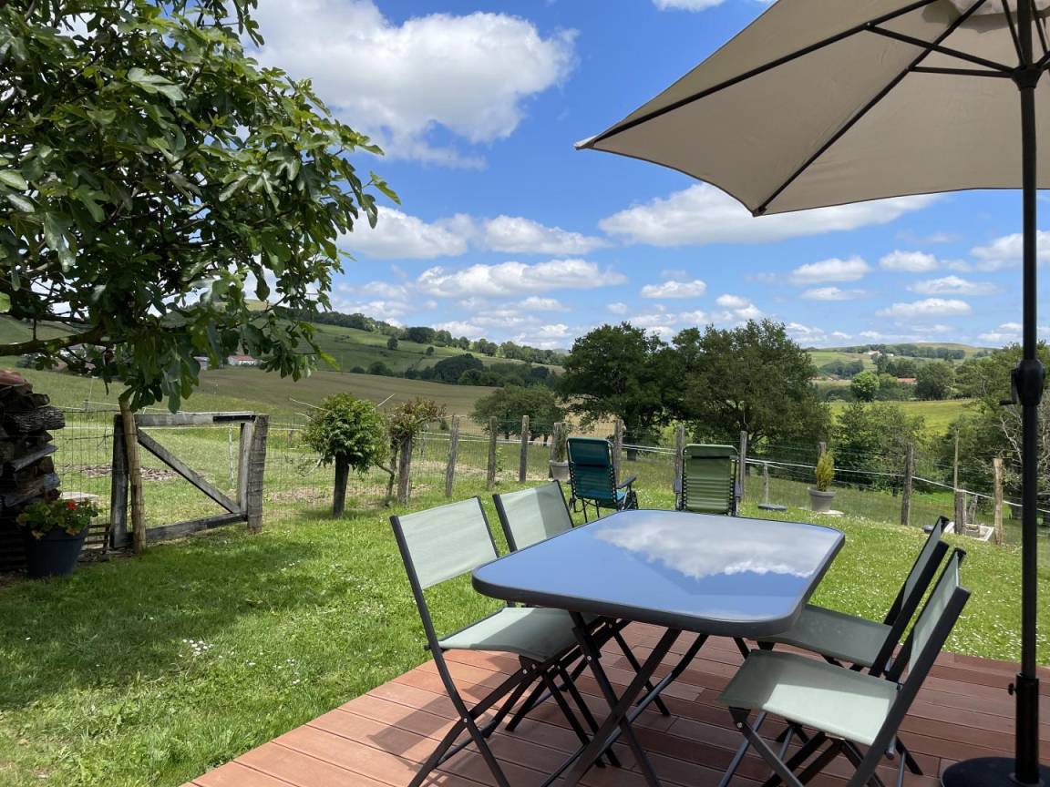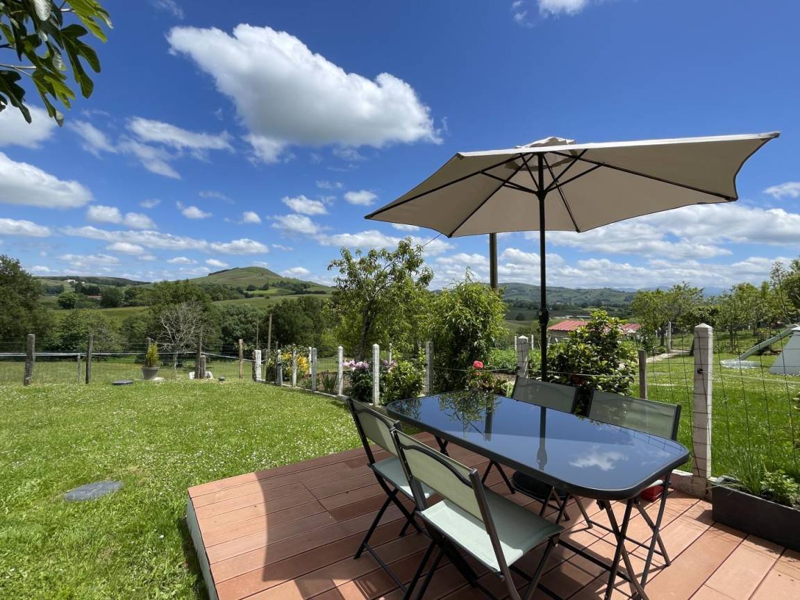 Ferienhaus im Obergeschoss, auf der Rückseite des Hauses der Eigentümer, 3,8 km von der Stadt Hélette im Herzen des Baskenlandes entfernt.