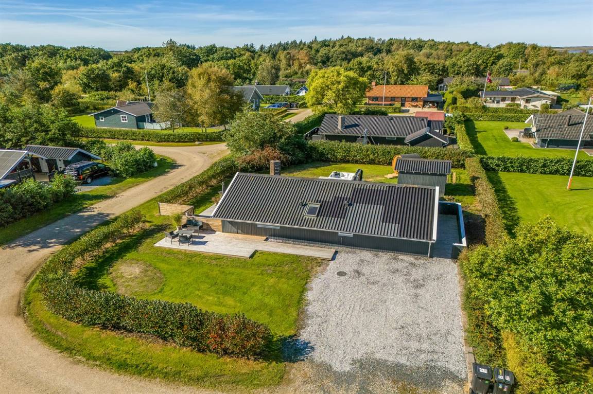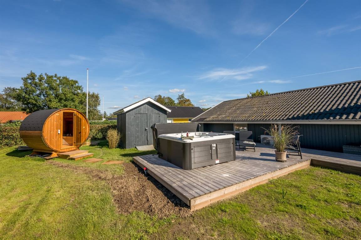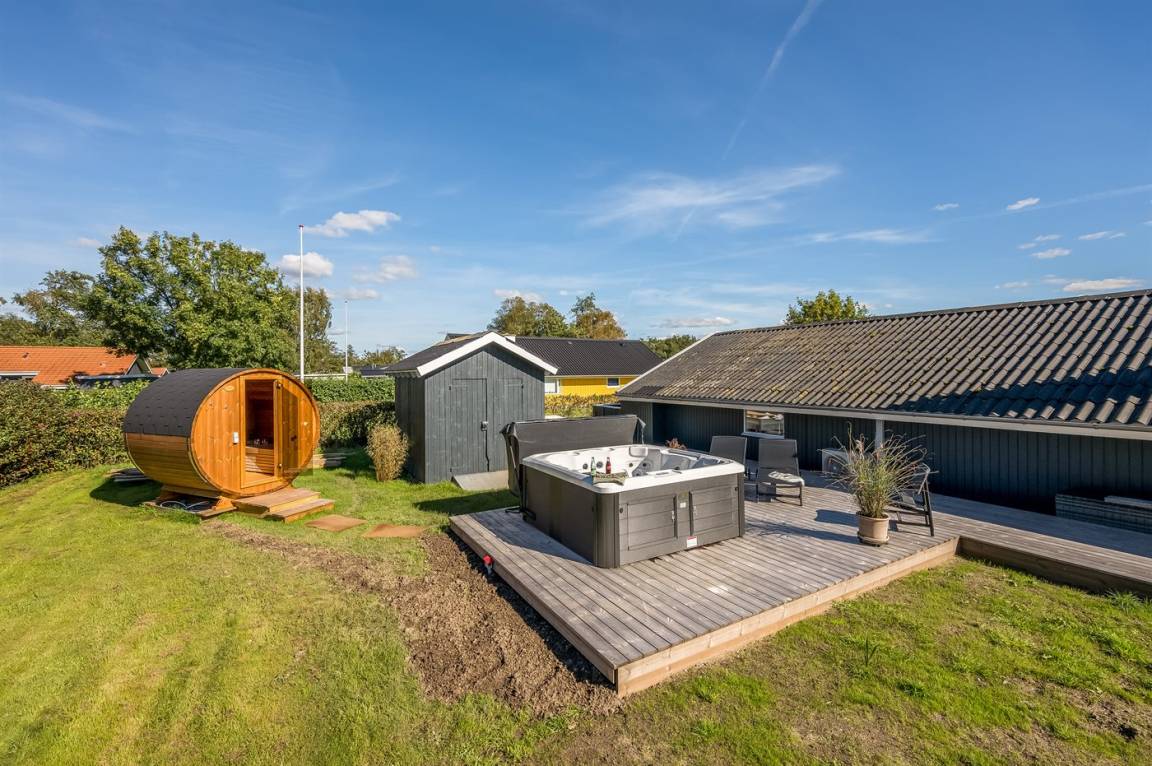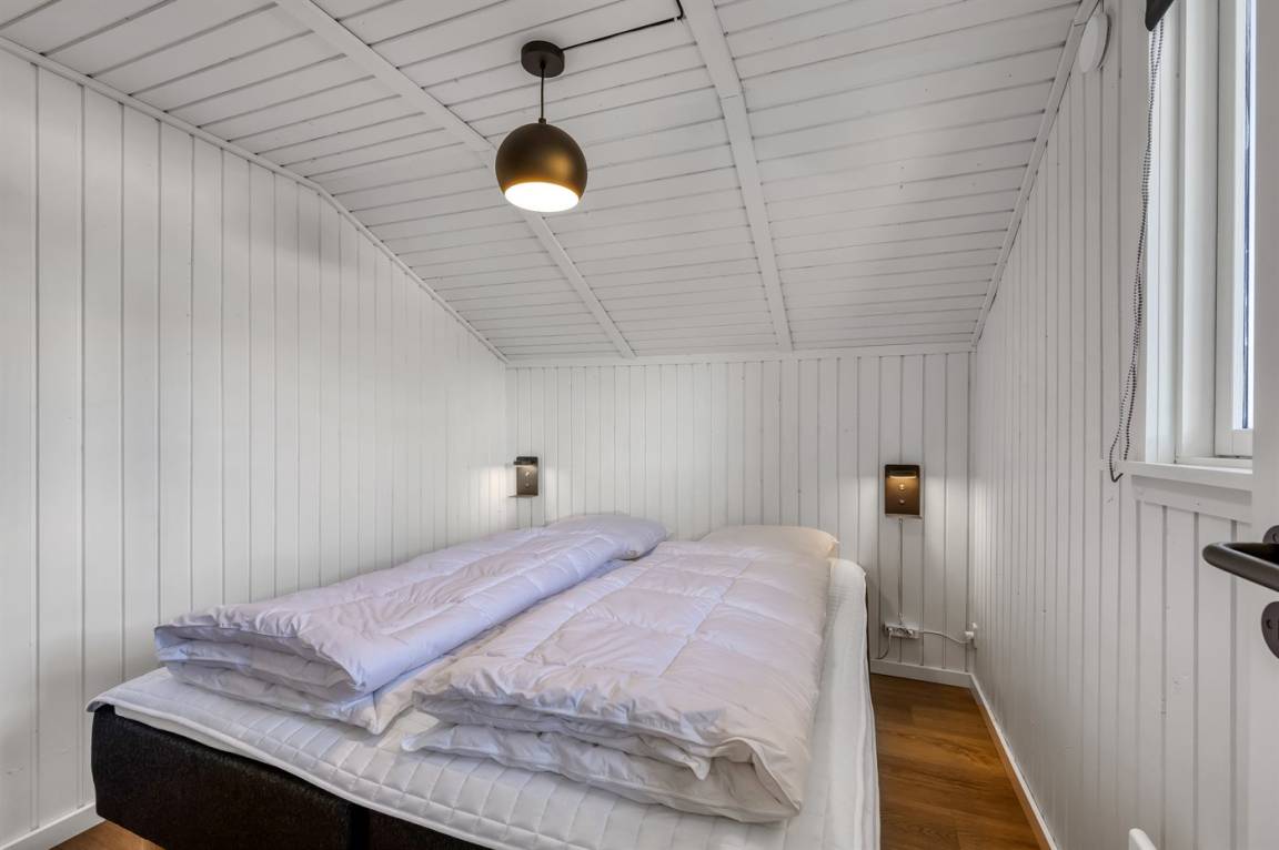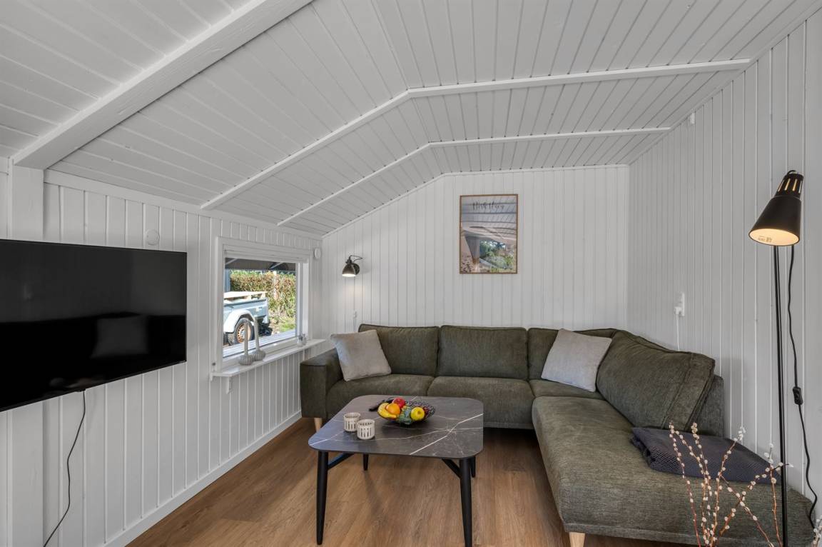 DraußenDie Ferienunterkunft liegt auf einem 714 m² großen Naturgrundstück. Das Grundstück ist eingezäunt. Die Entfernung zum Meer beträgt 8000 m. Die Entfernung zum Fjord beträgt 200 m. Die nächste Einkaufsmöglichkeit liegt 800 m entfernt. Es steht ein offenes Terrassenareal zur Verfügung. Außerdem gibt es überdachte Terrasse. Geräteraum. Außensauna. Es steht ein Grill zur Verfügung. Parkplatz auf dem Grundstück.