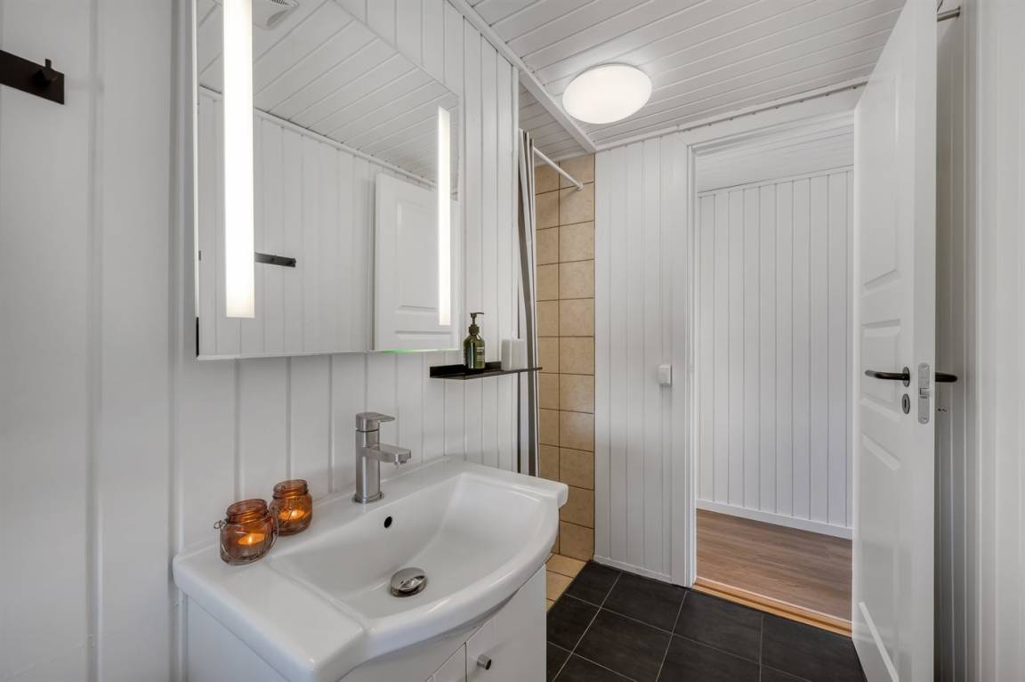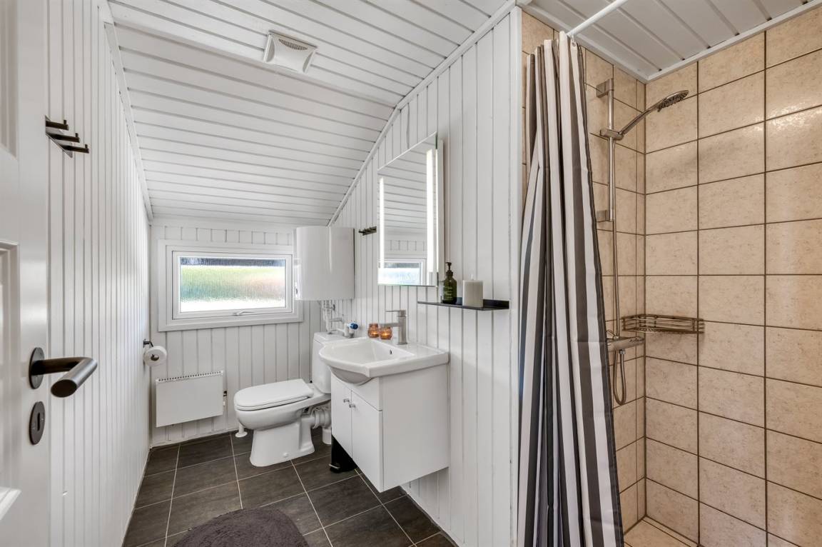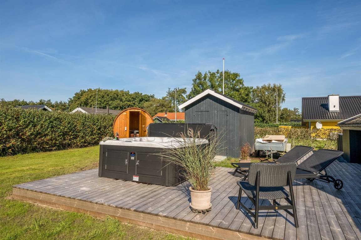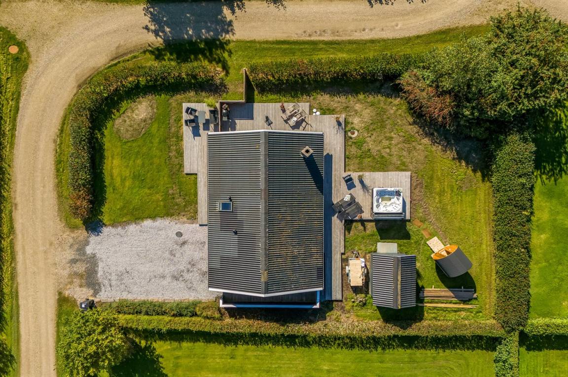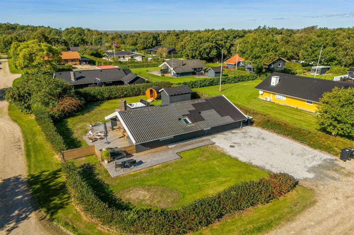 DraußenDie Ferienunterkunft liegt auf einem 714 m² großen Naturgrundstück. Das Grundstück ist eingezäunt. Die Entfernung zum Meer beträgt 8000 m. Die Entfernung zum Fjord beträgt 200 m. Die nächste Einkaufsmöglichkeit liegt 800 m entfernt. Es steht ein offenes Terrassenareal zur Verfügung. Außerdem gibt es überdachte Terrasse. Geräteraum. Außensauna. Es steht ein Grill zur Verfügung. Parkplatz auf dem Grundstück.