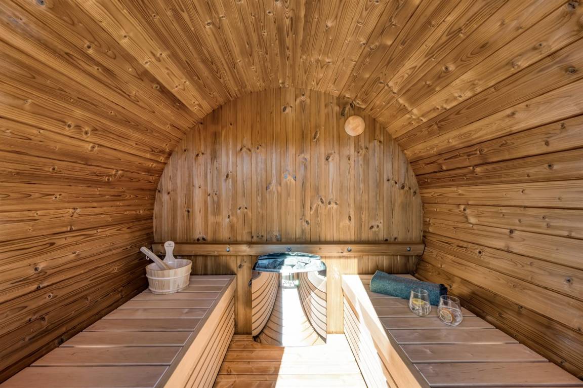 Für besondere Wohlfühlmomente könnt ihr auf der einladenden Terrasse entspannen, die Außensauna nutzen oder im sprudelnden Außen-Whirlpool die Seele baumeln lassen – und das am Abend mit einem herrlichen Blick auf den klaren Sternenhimmel.