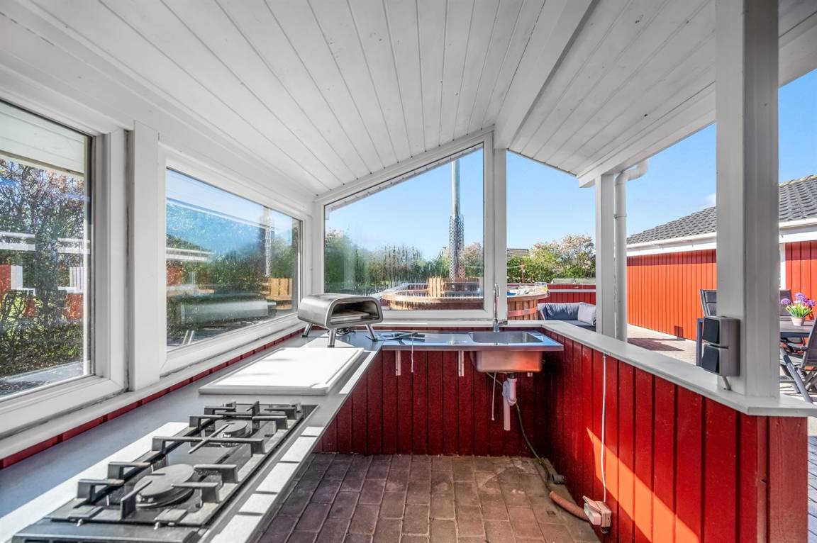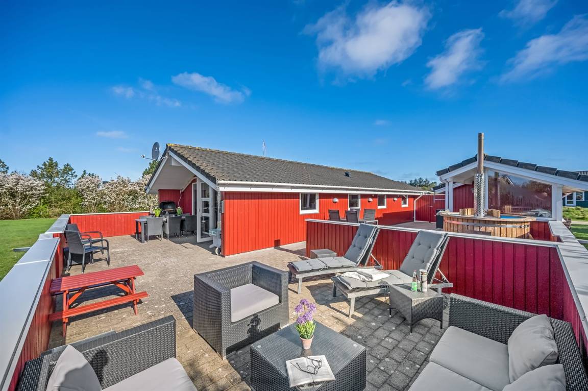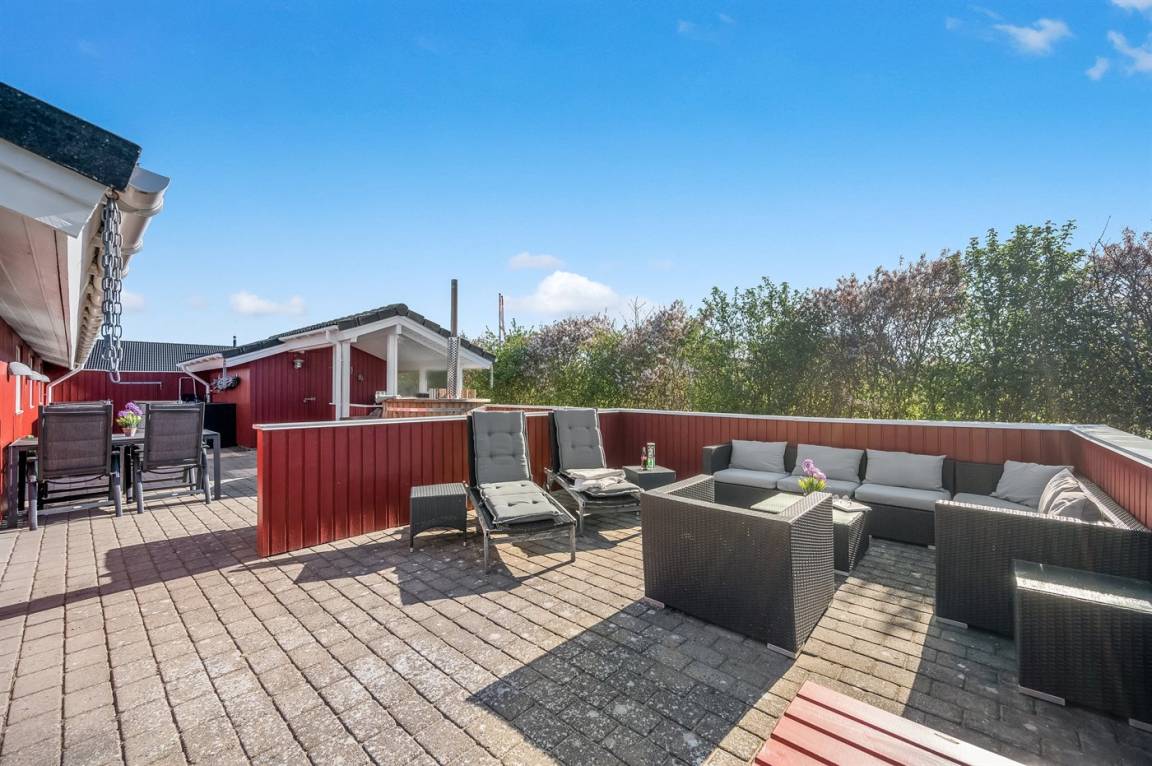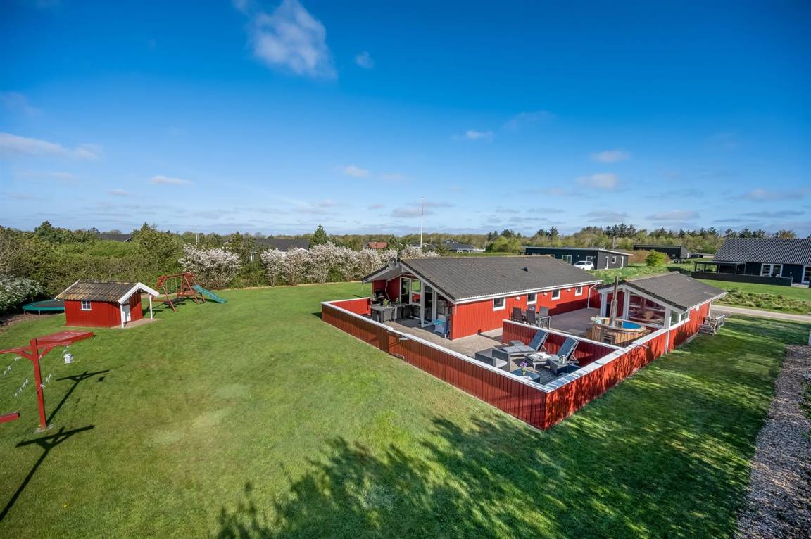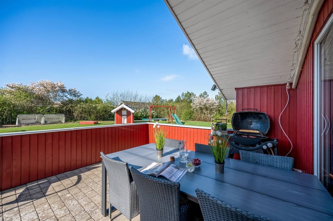 DraußenDie Ferienunterkunft liegt auf einem 1204 m² großen Naturgrundstück. Das Grundstück ist eingezäunt. Die Entfernung zum Meer beträgt 9000 m. Die Entfernung zum Fjord beträgt 1000 m. Die nächste Einkaufsmöglichkeit liegt 1500 m entfernt. In einem Abstand von 15000 m gibt es einen Golfplatz. Es steht ein offenes Terrassenareal zur Verfügung. Außerdem gibt es überdachte Terrasse. Geräteraum. Schaukel. Sandkasten. Kinderspielhaus. Trampolin. Rutsche. Fußballtor. Die Entfernung zu einem Spielplatz beträgt 170 m.Es beteht die Möglichkeit das Essen in der Außenküche zuzubereiten. Es steht ein Grill zur Verfügung. Parkplatz auf dem Grundstück.