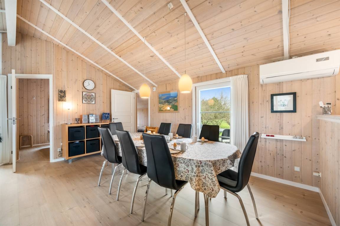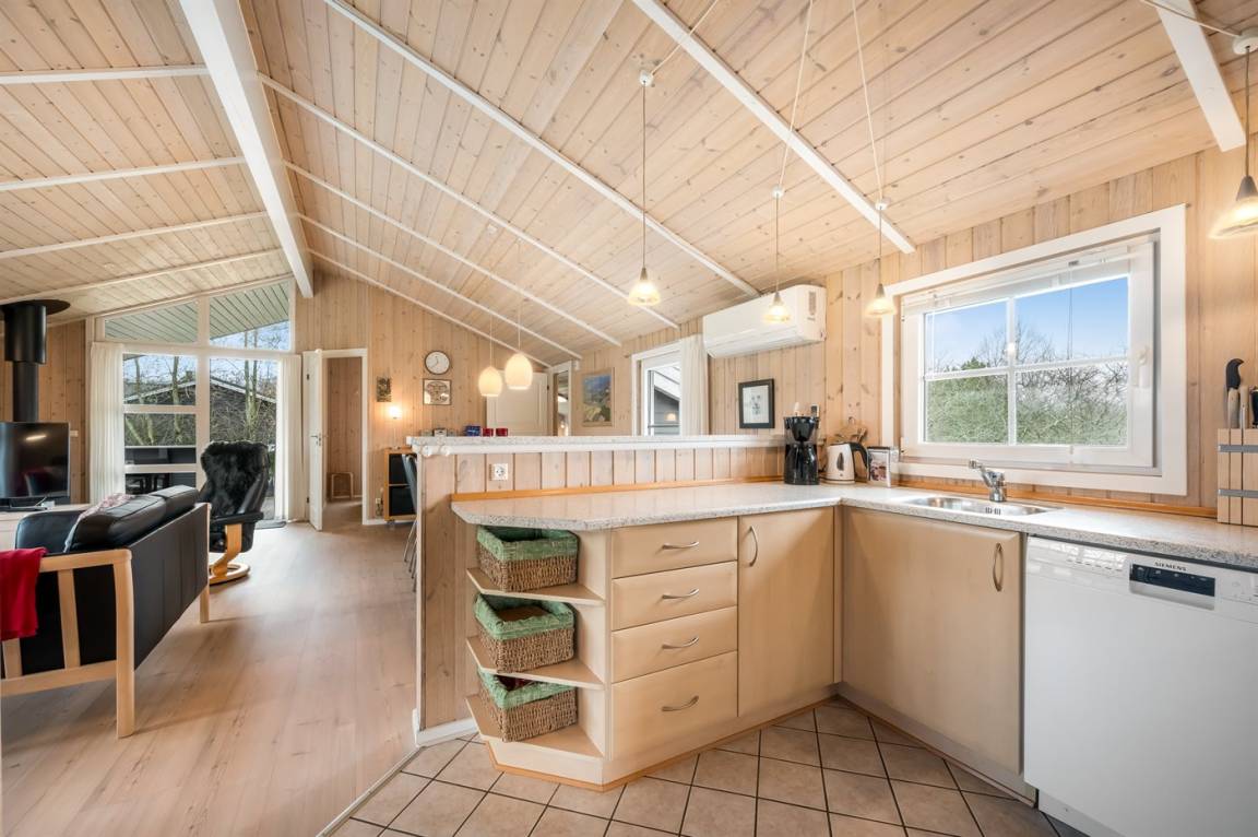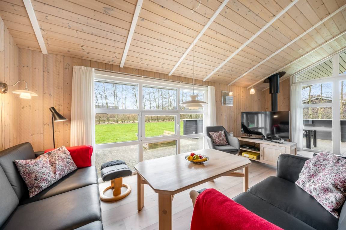 Dieses gemütliche und hell eingerichtete Ferienhaus liegt in einem beliebten Ferienhausgebiet. Zum Haus gehören sowohl offene als auch überdachte Terrassen mit Gartenmöbeln.