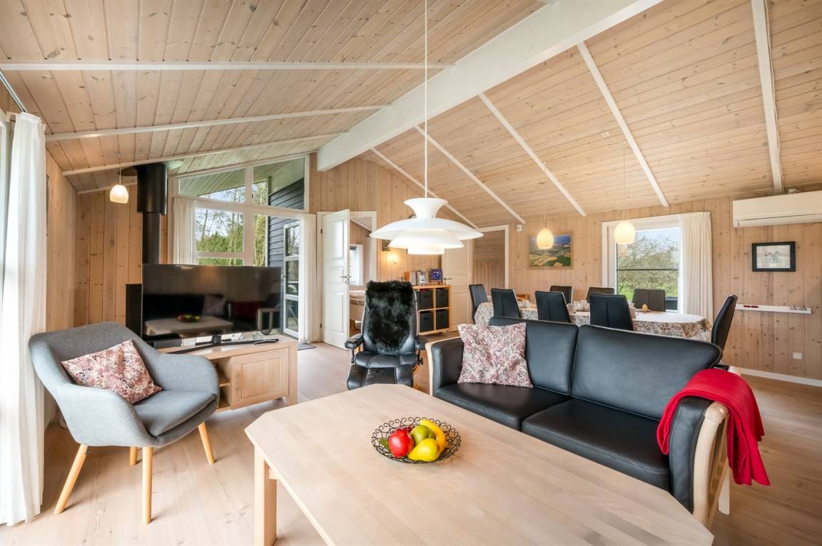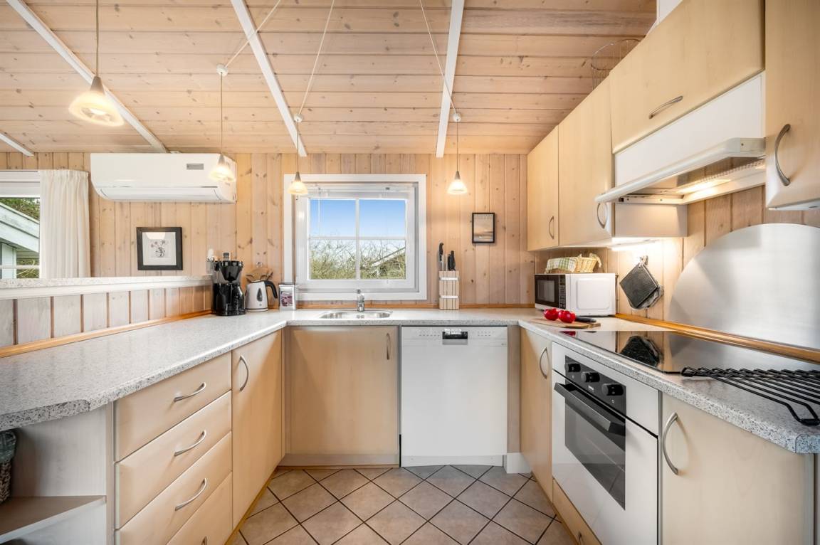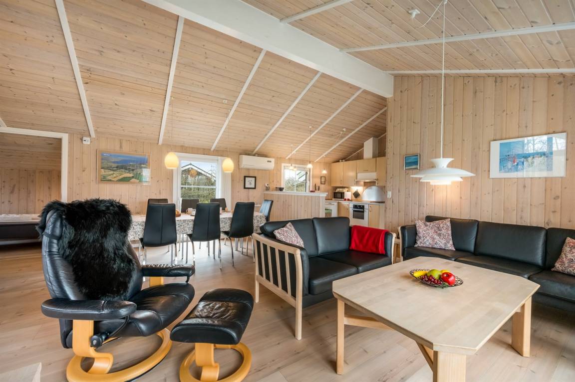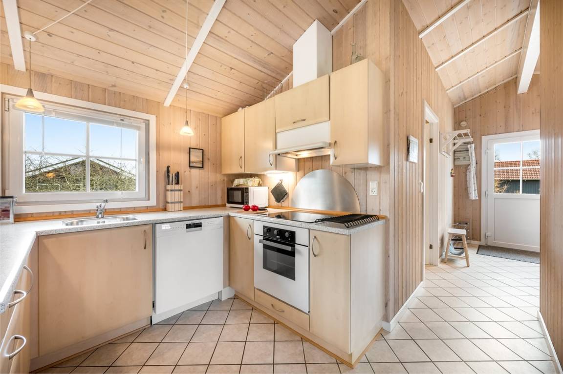 Dieses gemütliche und hell eingerichtete Ferienhaus liegt in einem beliebten Ferienhausgebiet. Zum Haus gehören sowohl offene als auch überdachte Terrassen mit Gartenmöbeln.
