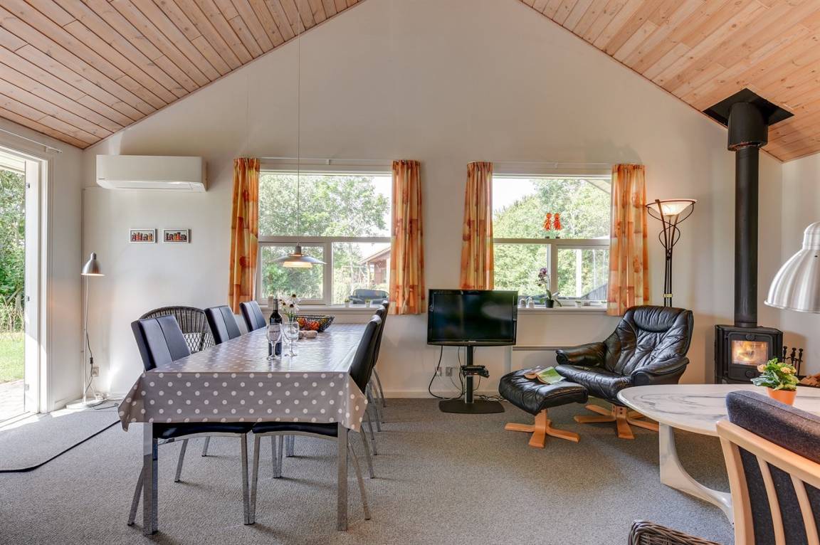 Auf einem schönen Grundstück finden Sie dieses gemütlich eingerichtete Ferienhaus. Zum Haus gehört eine teilweise überdachte Terrasse mit Gartenmöbeln. Das Haus liegt in einem naturschönen Gebiet mit guten Aktivitätsmöglichkeiten - u. a. ein großes Waldgebiet mit Wanderpfaden sowie gute Surf- und Angelmöglichkeiten auf dem Ringkøbing Fjord.