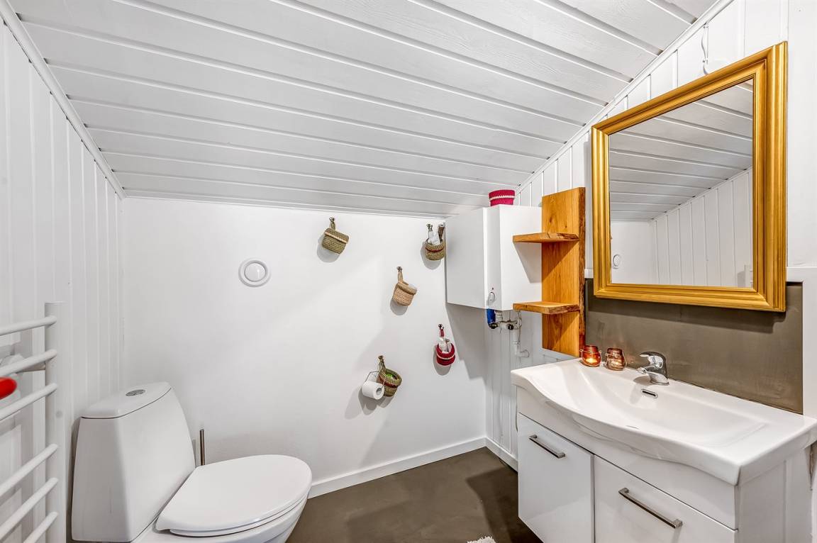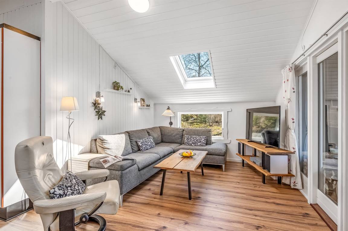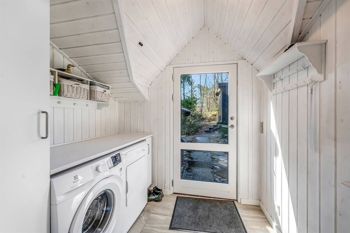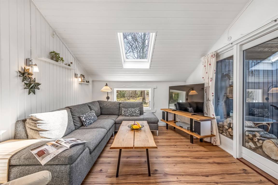 DraußenDie Ferienunterkunft liegt auf einem 1539 m² großen Naturgrundstück. Die Entfernung zum Fjord beträgt 450 m. Die nächste Einkaufsmöglichkeit liegt 4500 m entfernt. Es steht ein 20 m² Terrassenareal zur Verfügung. Außerdem gibt es 7 m² überdachte Terrasse. Die Entfernung zu einem Spielplatz beträgt 100 m.Es steht eine Garage zur Verfügung. Parkplatz auf dem Grundstück.