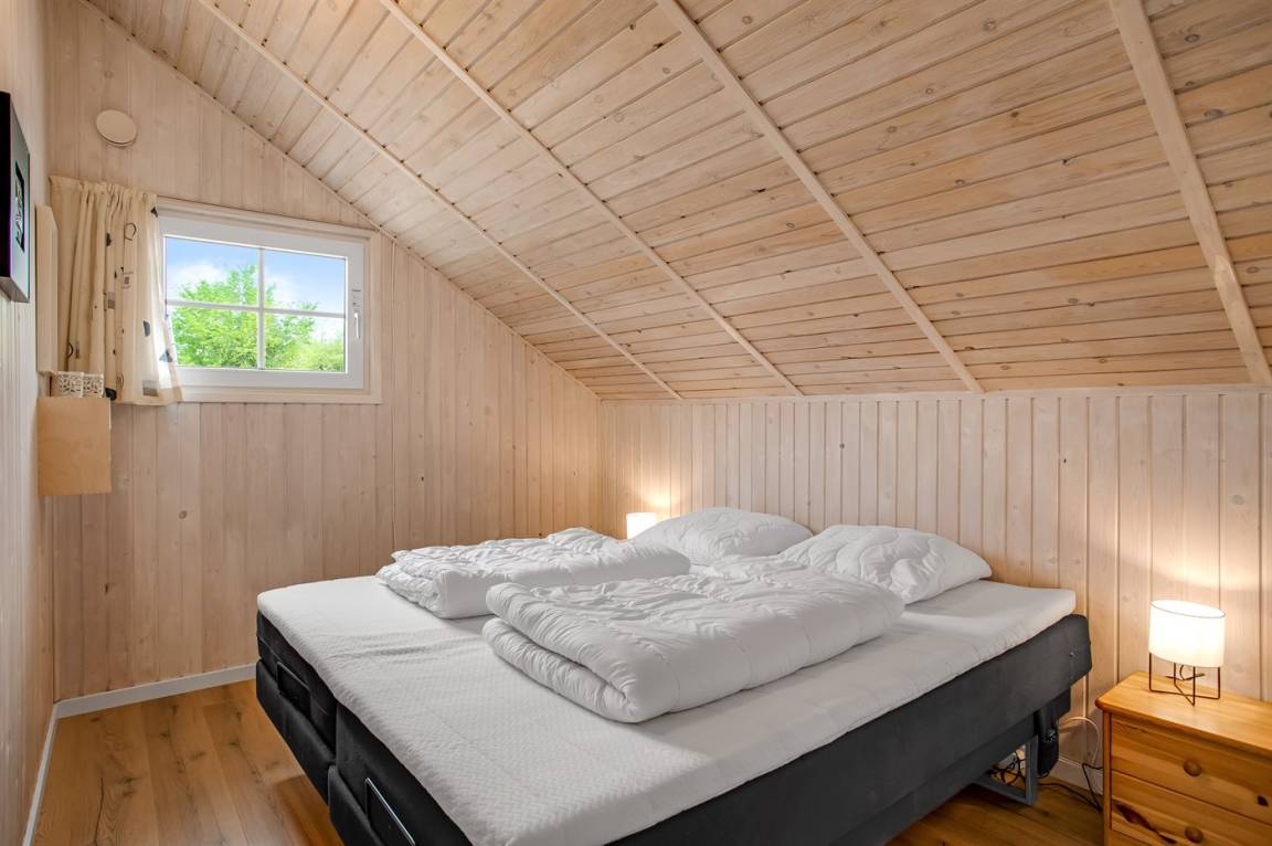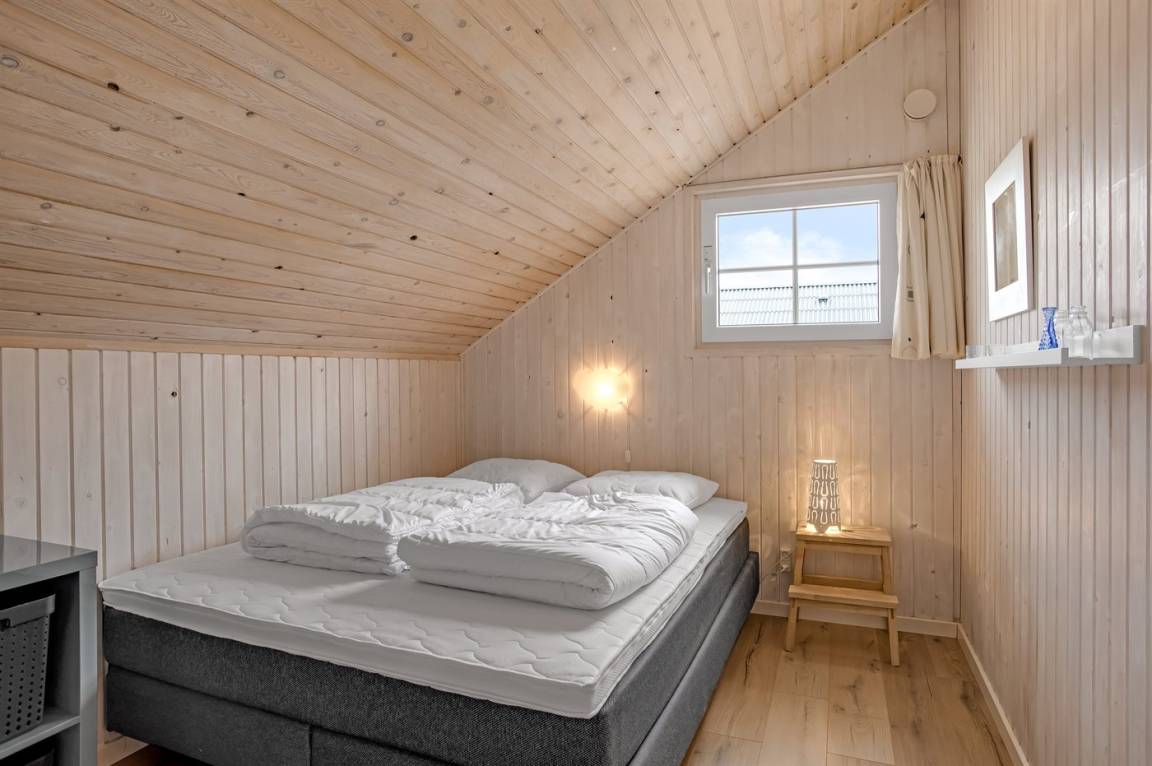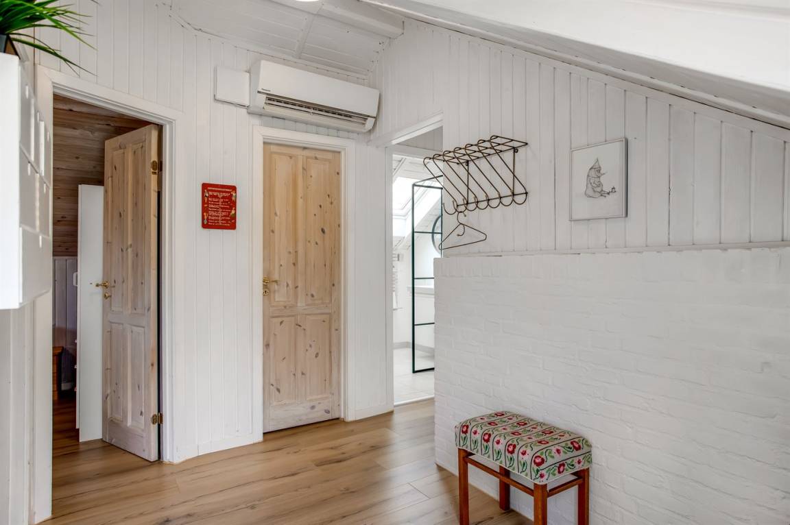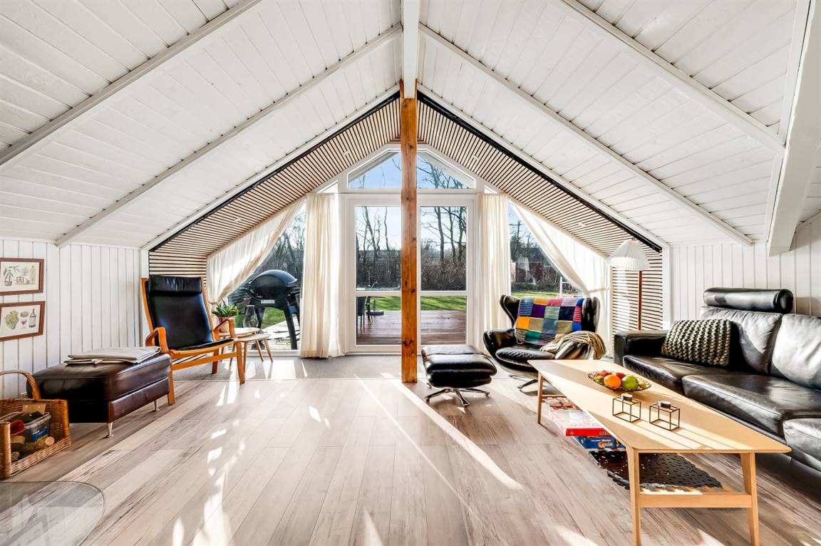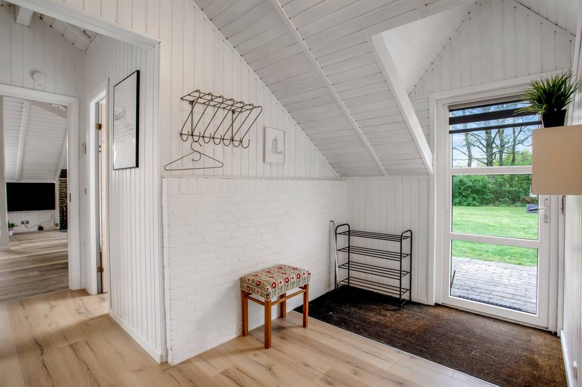 Das Innere des Ferienhauses ist hell und freundlich, und wenn Sie das Wohnzimmer betreten, werden Sie sofort die schöne Decke bemerken, die ein Gefühl von Räumlichkeit, Gemütlichkeit und Charme verleiht. Die große Couch lädt zum Faulenzen ein und der Kaminofen sorgt für ein gemütlichs Ambiente und ist perfekt für kühle Abende.