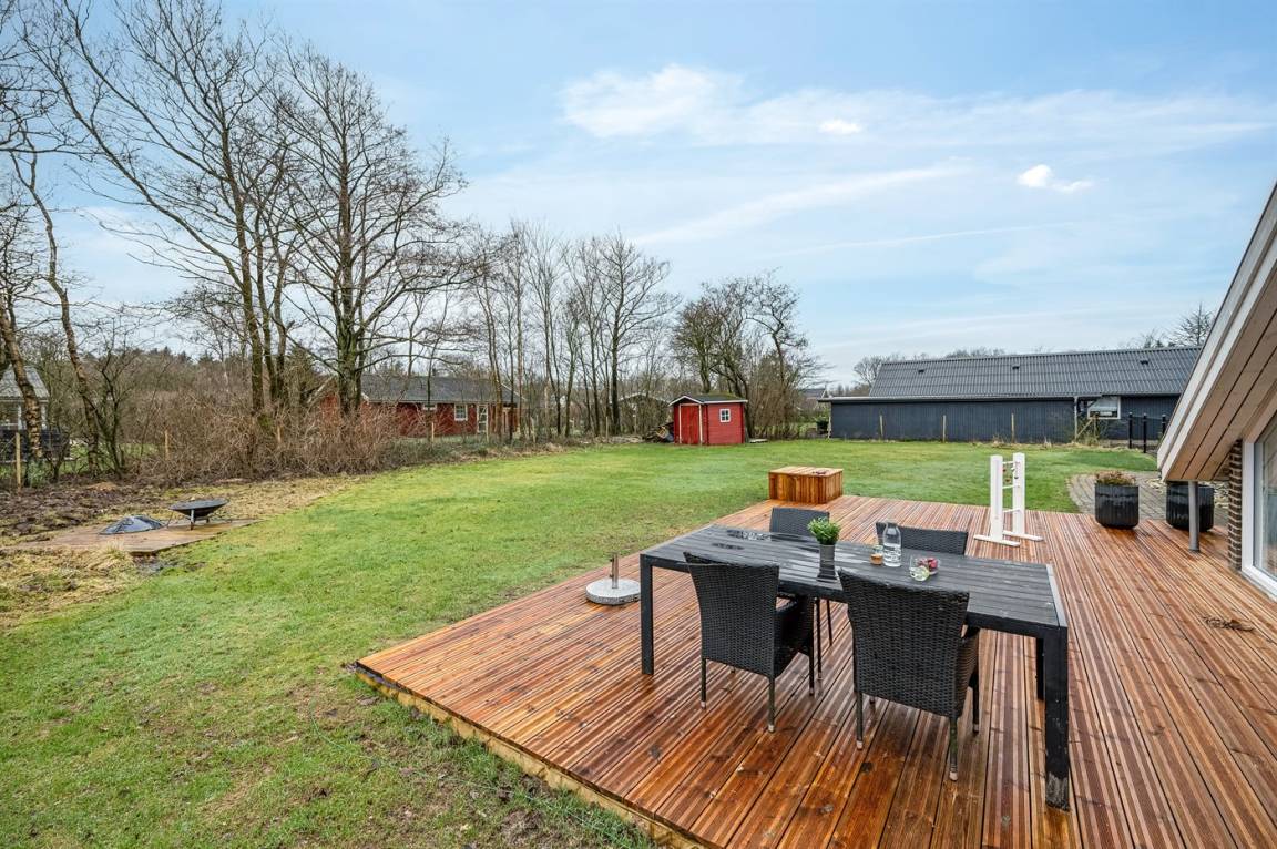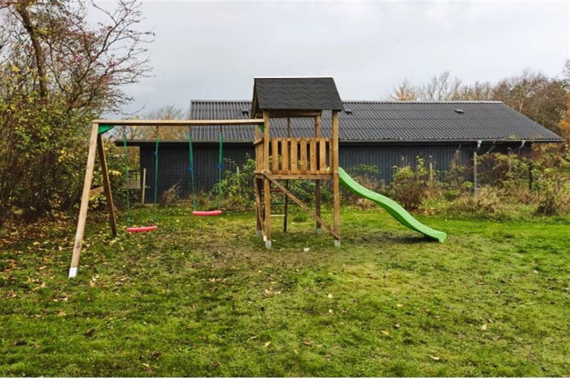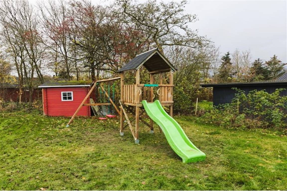 DraußenDie Ferienunterkunft liegt auf einem 1100 m² großen Naturgrundstück. Das Grundstück ist eingezäunt. Die Entfernung zum Meer beträgt 6800 m. Die Entfernung zum Fjord beträgt 300 m. Die nächste Einkaufsmöglichkeit liegt 1600 m entfernt. Es steht ein offenes Terrassenareal zur Verfügung. Schaukel. Spielturm. Rutsche. Die Entfernung zu einem Spielplatz beträgt 150 m. Parkplatz auf dem Grundstück.