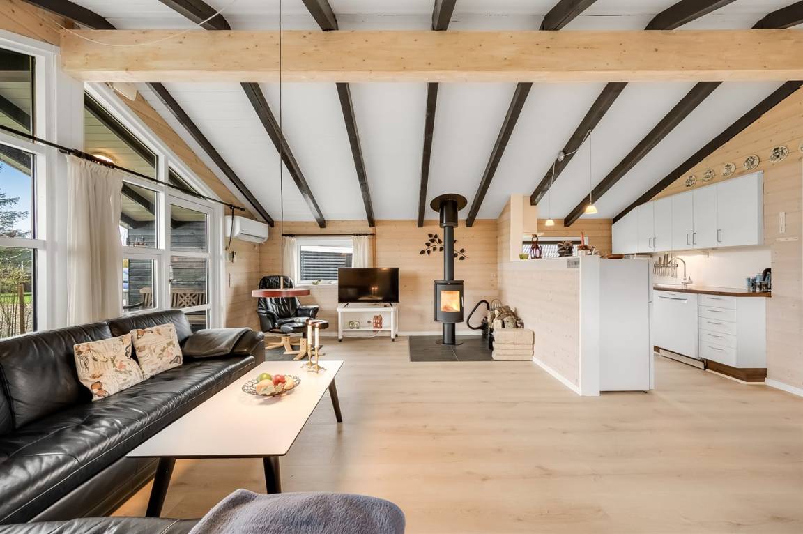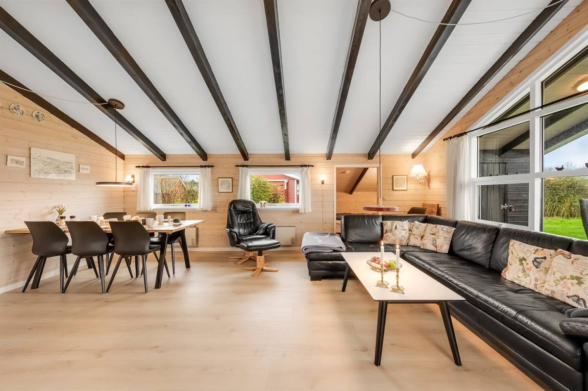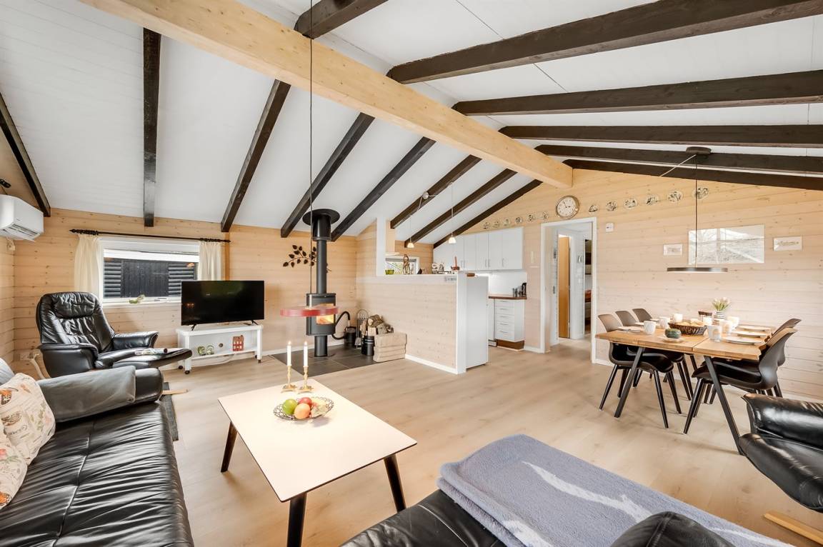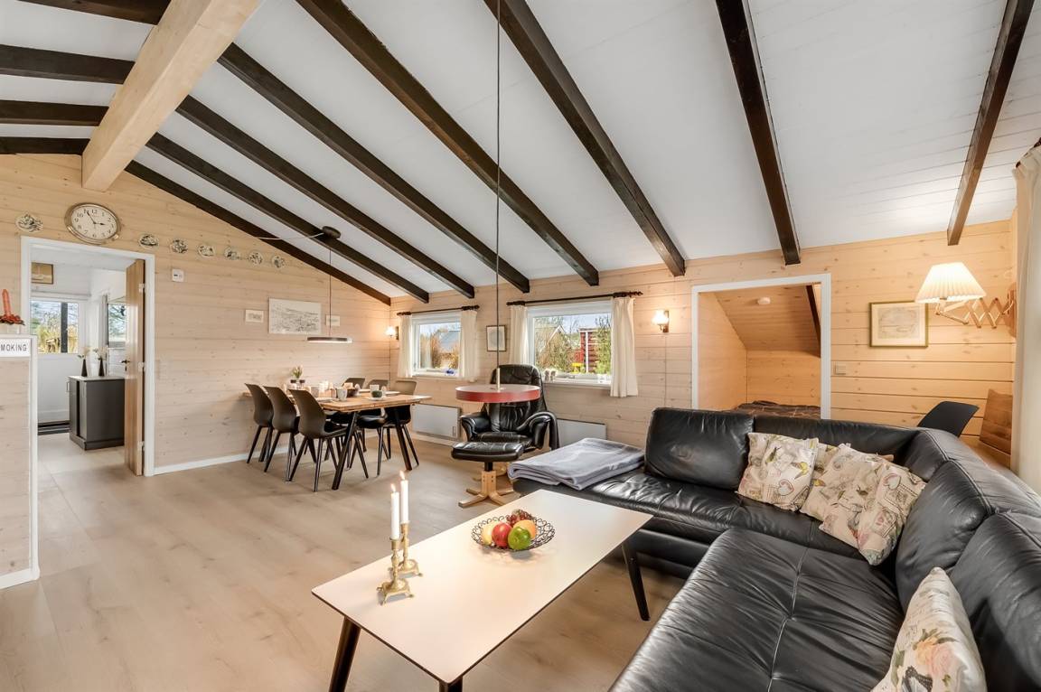 DraußenDie Ferienunterkunft liegt auf einem 1000 m² großen Gartengrundstück. Das Grundstück ist eingezäunt. Die Entfernung zum Meer beträgt 7200 m. Die Entfernung zum Fjord beträgt 800 m. Die nächste Einkaufsmöglichkeit liegt 800 m entfernt. Es steht ein 25 m² Terrassenareal zur Verfügung. Außerdem gibt es 30 m² überdachte Terrasse. Geräteraum. Schaukel. Sandkasten. Rutsche. Es ist ein Ladestecker für Elektroautos installiert. Ladestecker Typ 2. Parkplatz auf dem Grundstück.