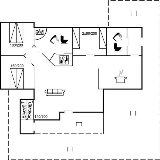 SchlafverhältnisseDie Schlafplätze verteilen sich auf 3 Schlafräume. 4 Schlafplätze in Doppelbetten. 2 Schlafplätze in Einzelbetten.2 Schlafplätze im Alkoven. Ferner steht ein Kinderbett zur Verfügung.