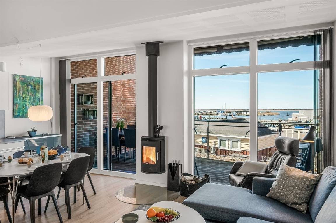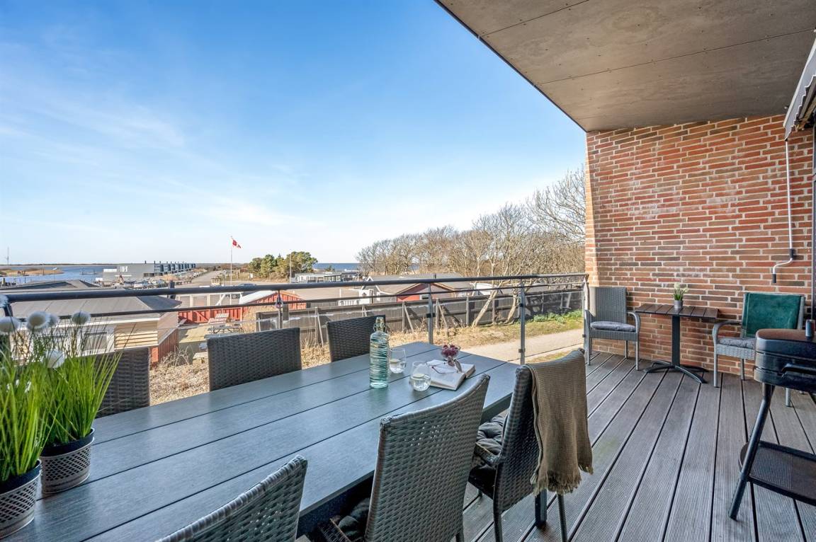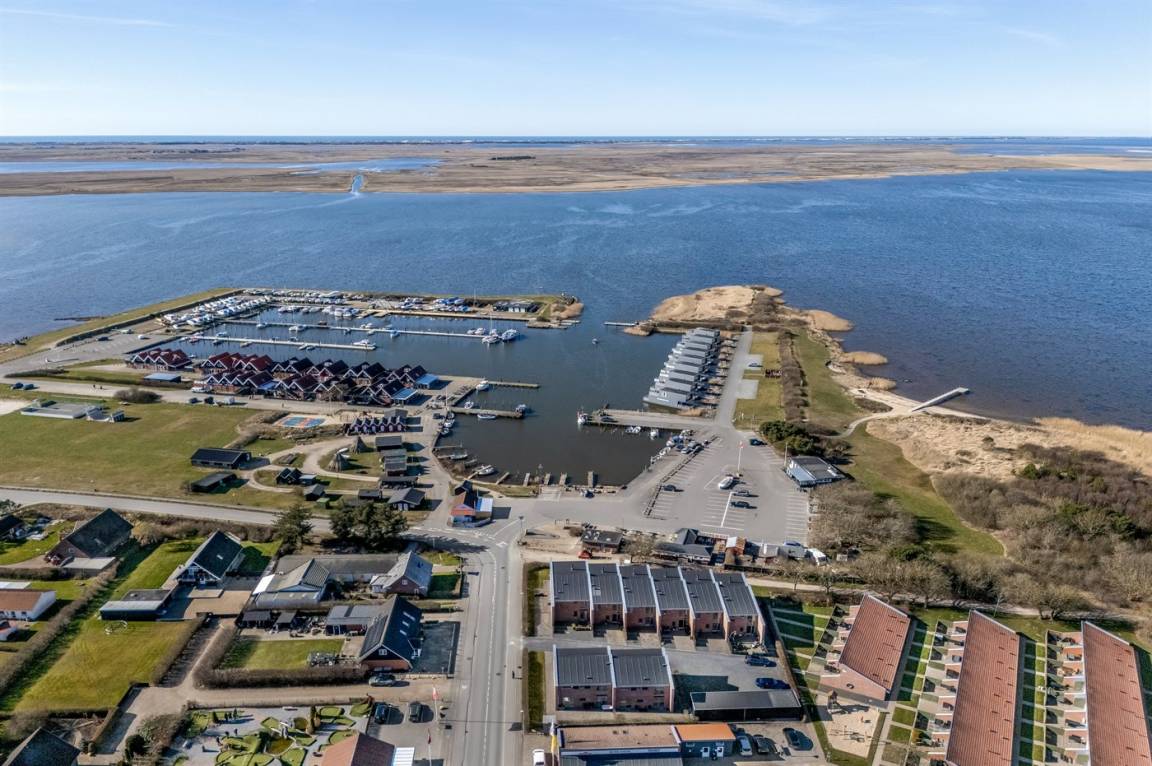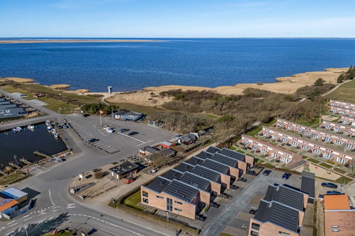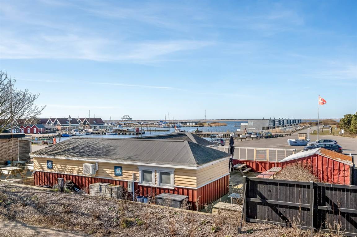 Mit einer fantastischen Aussicht über Bork Havn – ein idyllisches kleines Fischerdorf – und den Ringkøbing Fjord liegt dieses schöne Ferienhaus in bester Lage. Vom offenen Wohn- und Essbereich im Obergeschoss habt ihr Panoramaaussicht auf den Hafen und den Fjord – egal, wo im Raum ihr euch befindet. Der große überdachte Balkon ist der perfekte Ort, um den Abend zu verbringen und den Sonnenuntergang über dem Fjord zu genießen – ein Erlebnis in Sonderklasse.