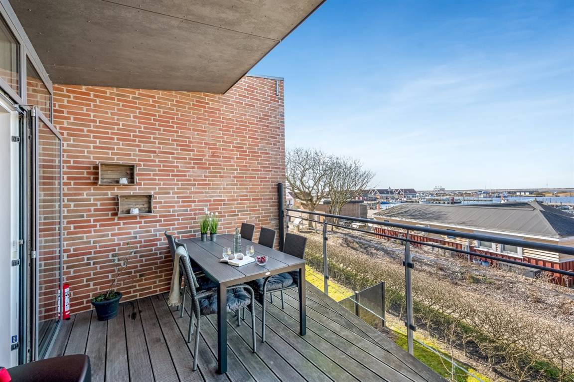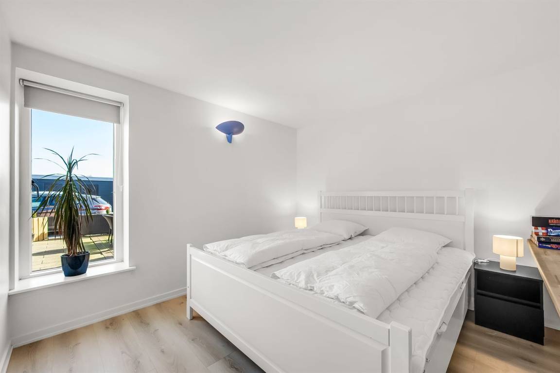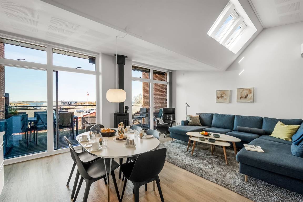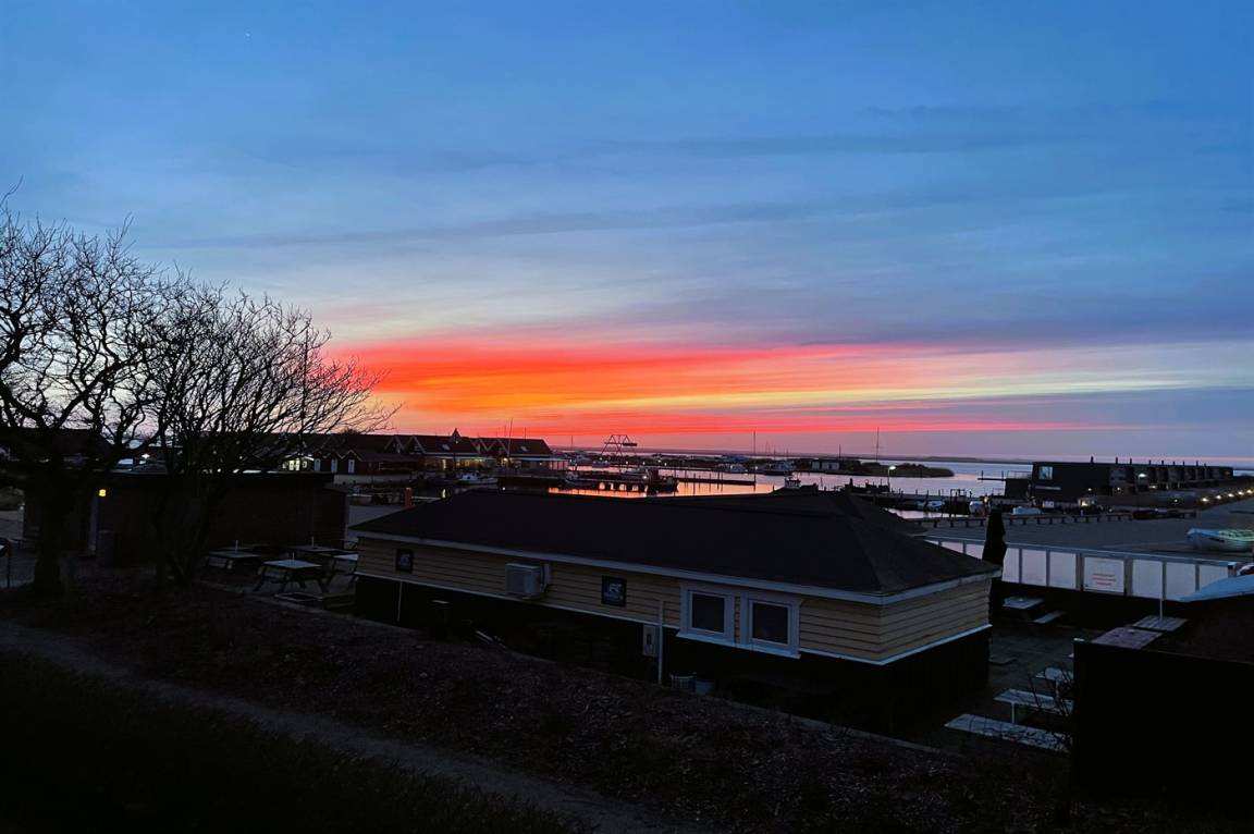 Mit einer fantastischen Aussicht über Bork Havn – ein idyllisches kleines Fischerdorf – und den Ringkøbing Fjord liegt dieses schöne Ferienhaus in bester Lage. Vom offenen Wohn- und Essbereich im Obergeschoss habt ihr Panoramaaussicht auf den Hafen und den Fjord – egal, wo im Raum ihr euch befindet. Der große überdachte Balkon ist der perfekte Ort, um den Abend zu verbringen und den Sonnenuntergang über dem Fjord zu genießen – ein Erlebnis in Sonderklasse.