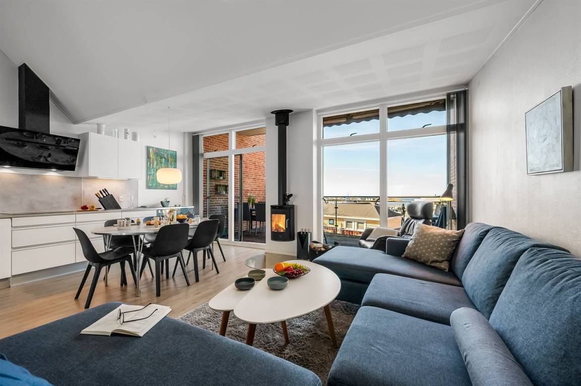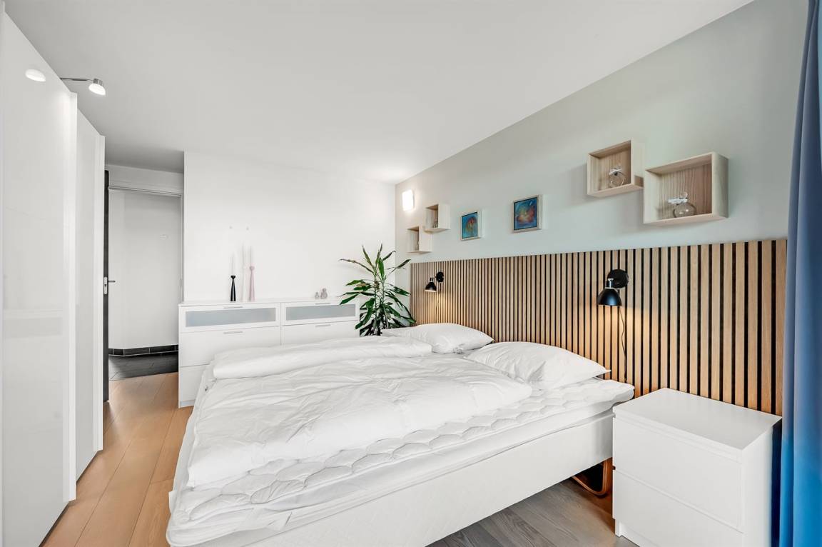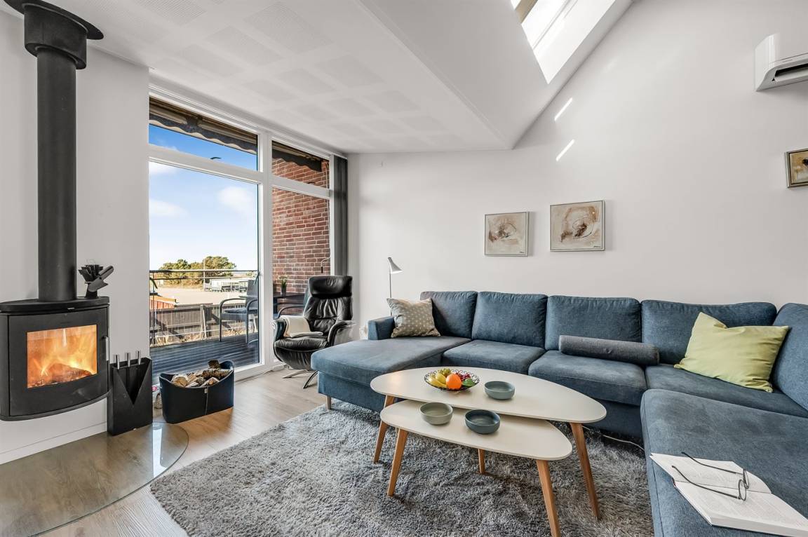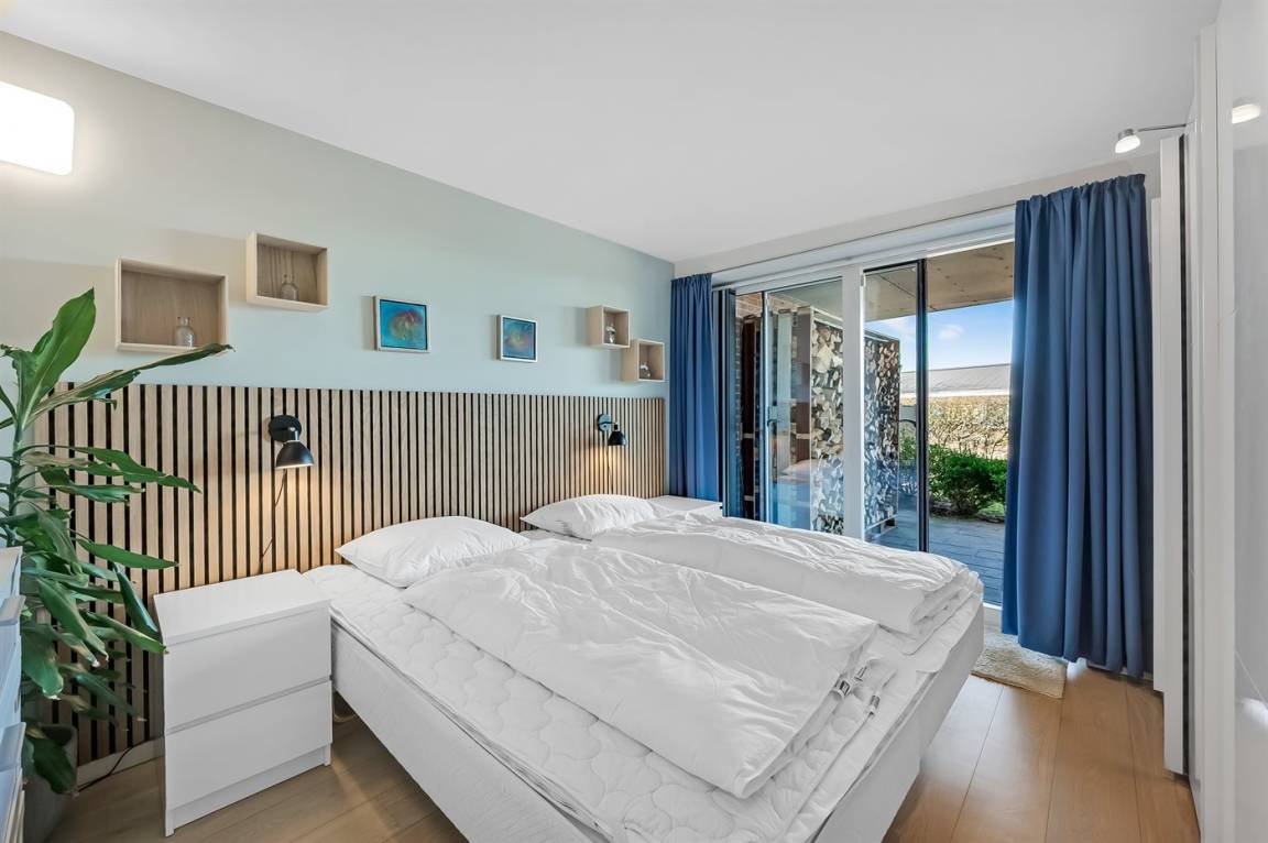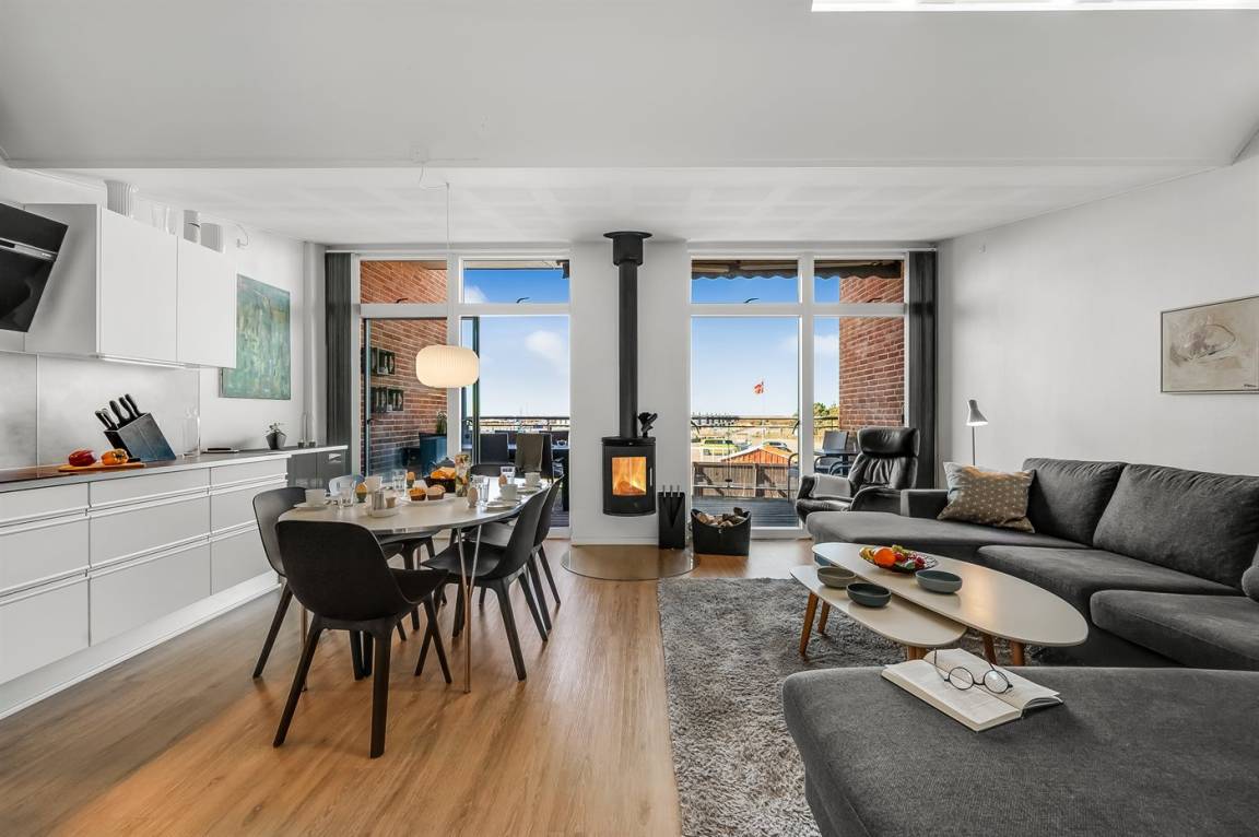 Mit einer fantastischen Aussicht über Bork Havn – ein idyllisches kleines Fischerdorf – und den Ringkøbing Fjord liegt dieses schöne Ferienhaus in bester Lage. Vom offenen Wohn- und Essbereich im Obergeschoss habt ihr Panoramaaussicht auf den Hafen und den Fjord – egal, wo im Raum ihr euch befindet. Der große überdachte Balkon ist der perfekte Ort, um den Abend zu verbringen und den Sonnenuntergang über dem Fjord zu genießen – ein Erlebnis in Sonderklasse.