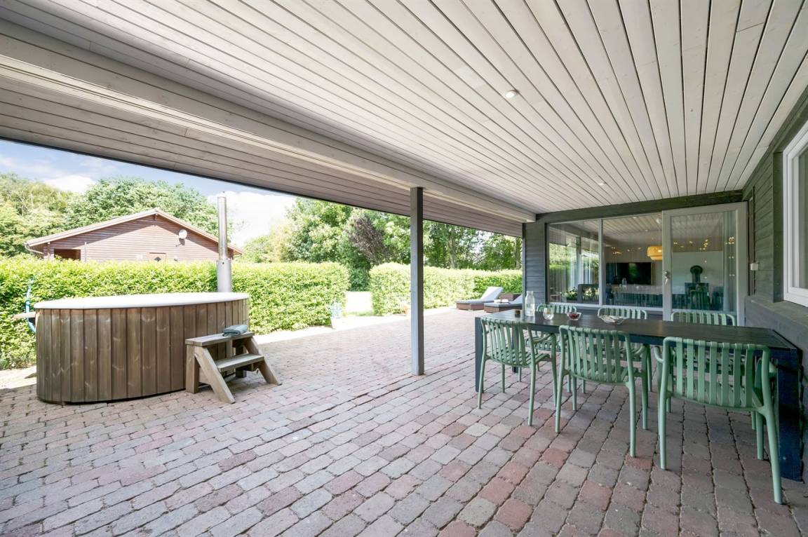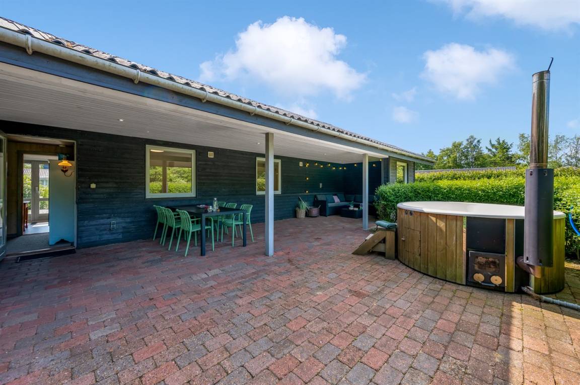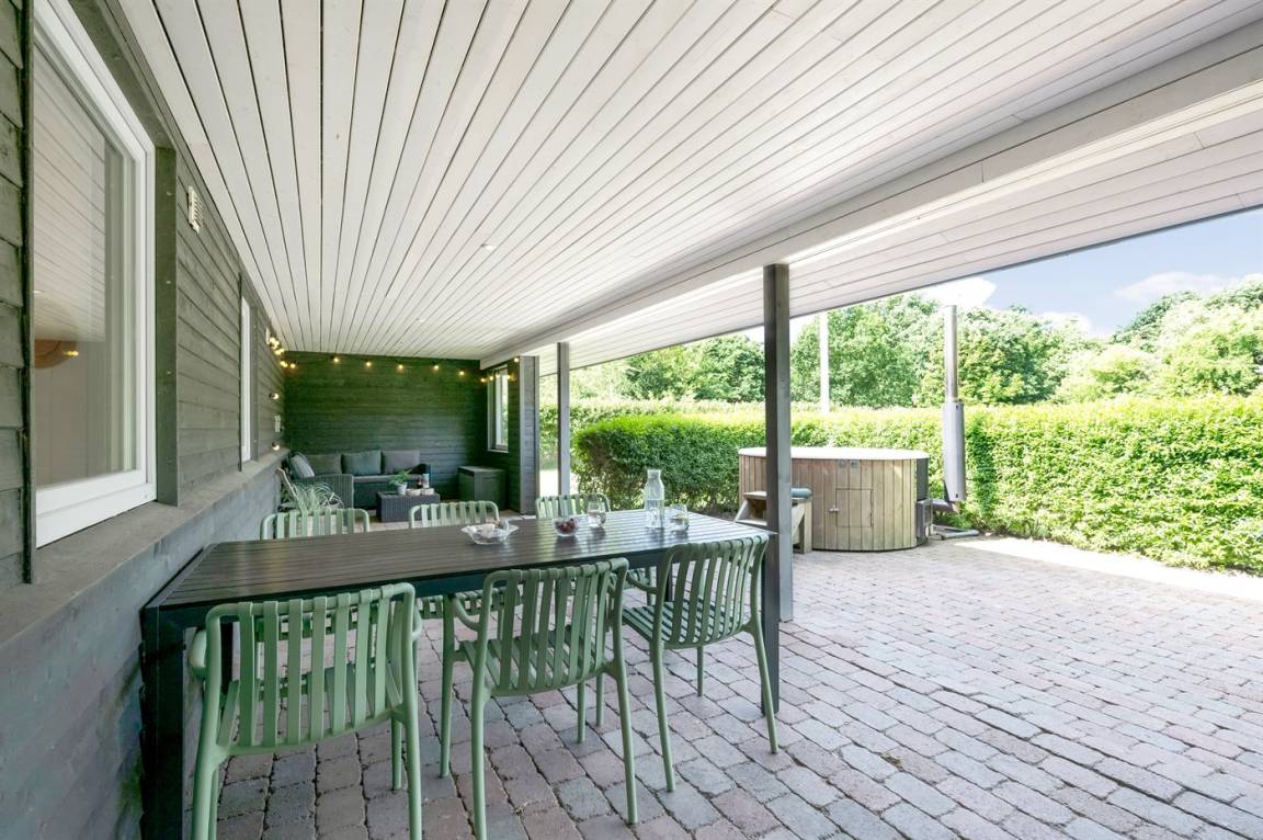 Auf der großen und teilweise überdachten Terrasse kannst du es dir in den bequemen Loungemöbeln gemütlich machen. Genieße ein warmes Bad in dem vorhandenen Hot Tub - hier kannst du dich vollkommen entspannen, und abends hast du freie Sicht auf den schönen, klaren Sternenhimmel.