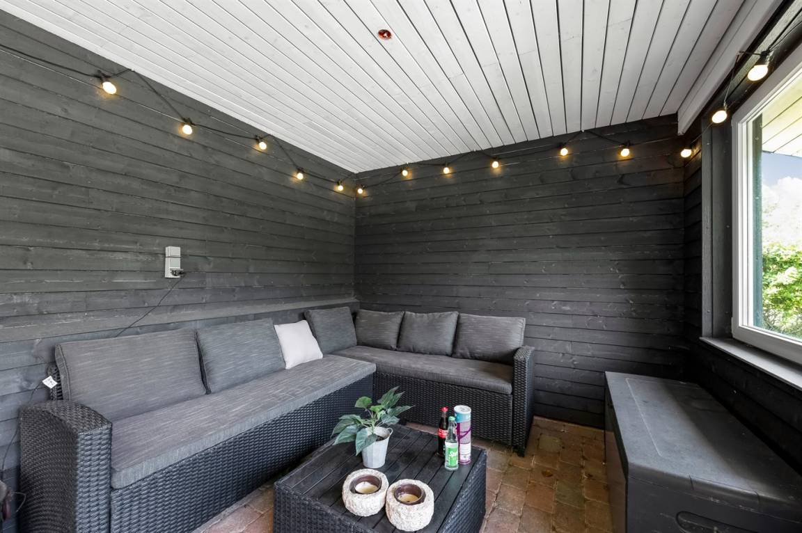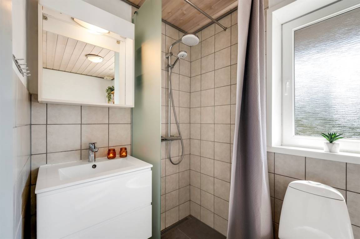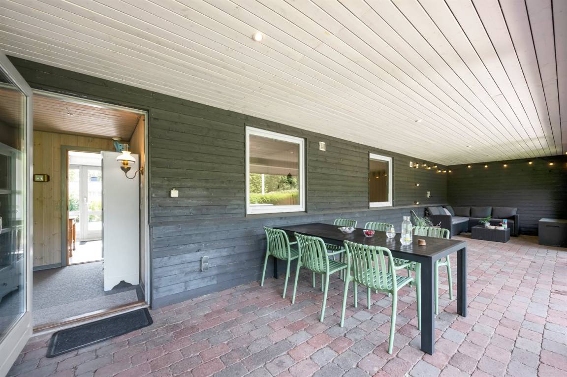 DraußenDie Ferienunterkunft liegt auf einem 944 m² großen Gartengrundstück. Das Grundstück ist eingezäunt. Die Entfernung zum Meer beträgt 3000 m. Die Entfernung zum Fjord beträgt 800 m. Die nächste Einkaufsmöglichkeit liegt 1000 m entfernt. Es steht ein 25 m² Terrassenareal zur Verfügung. Außerdem gibt es 39 m² überdachte Terrasse. Es steht ein Grill zur Verfügung. Parkplatz auf dem Grundstück.