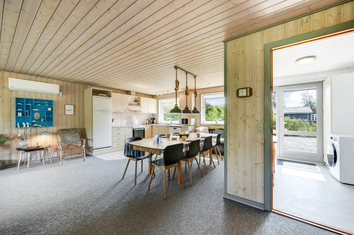 Das Ferienhaus liegt in der Nähe vom Ringkøbing Fjord und Bork Havn, der mit seiner maritimen Atmosphäre besticht. Hier kannst du den Sandstrand, das flache Badewasser und die besten Surfbedingungen genießen oder bei einem Spaziergang mit dem Hund ein Eis essen.