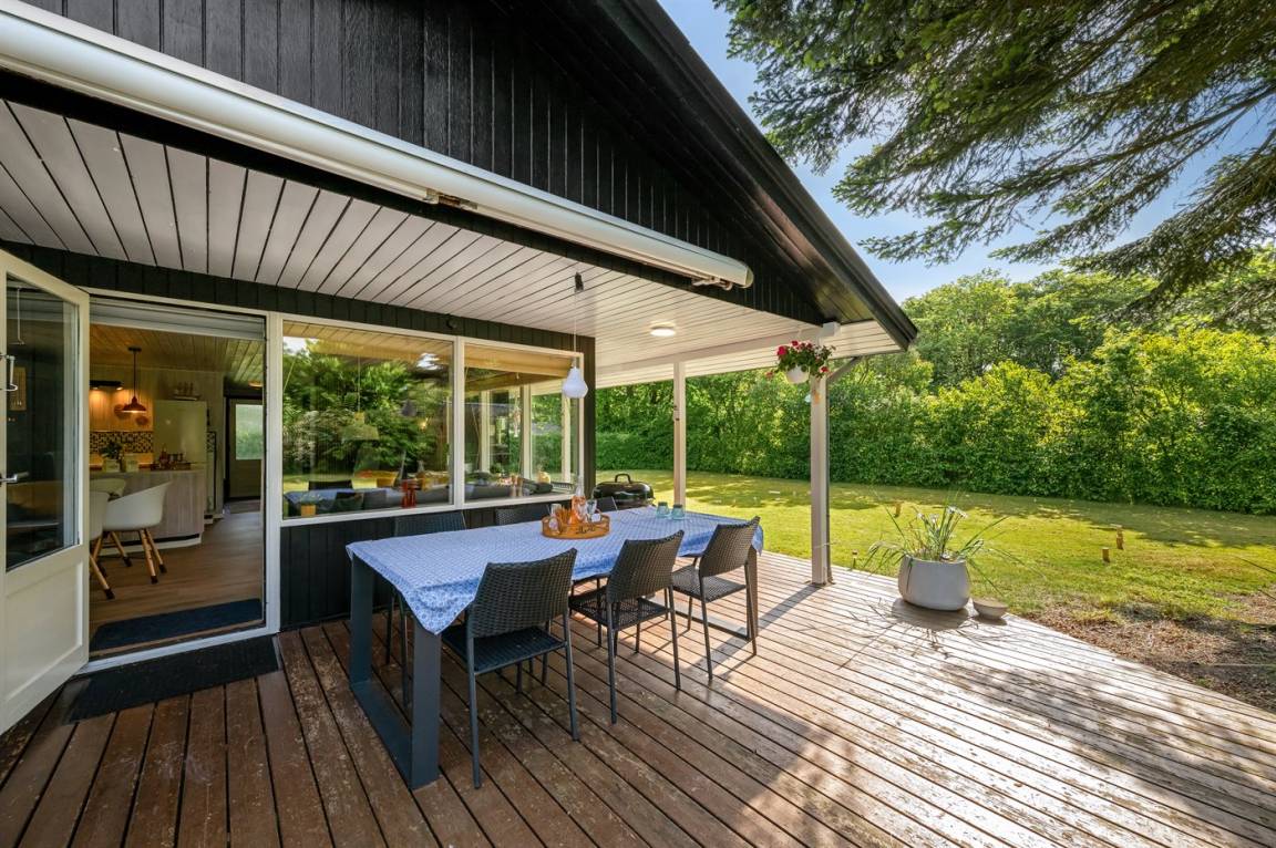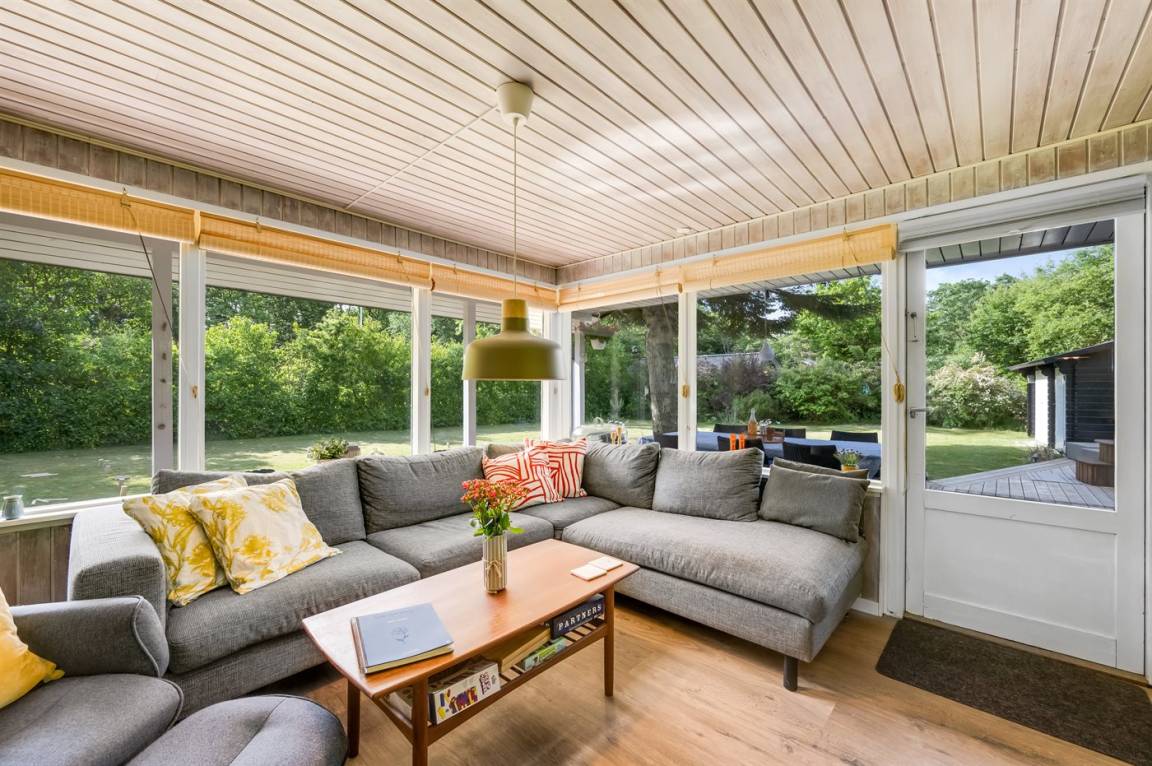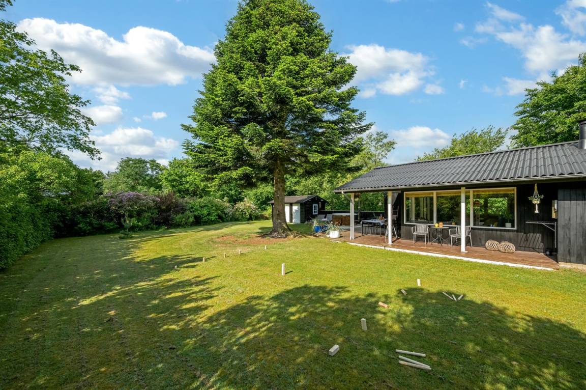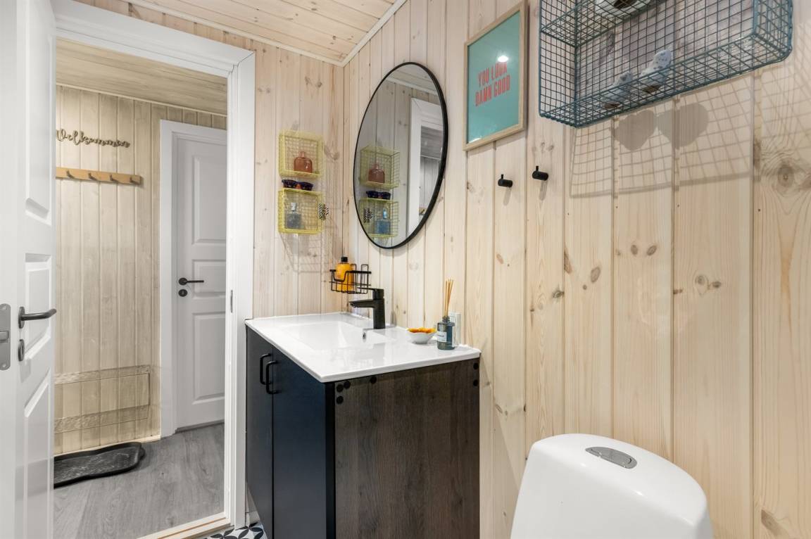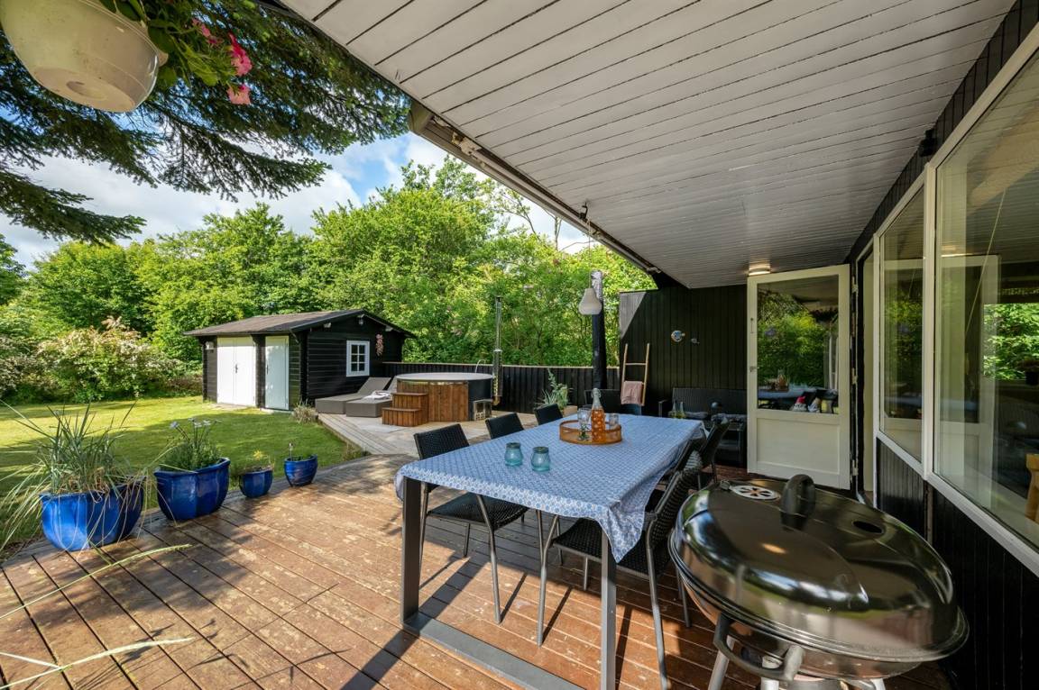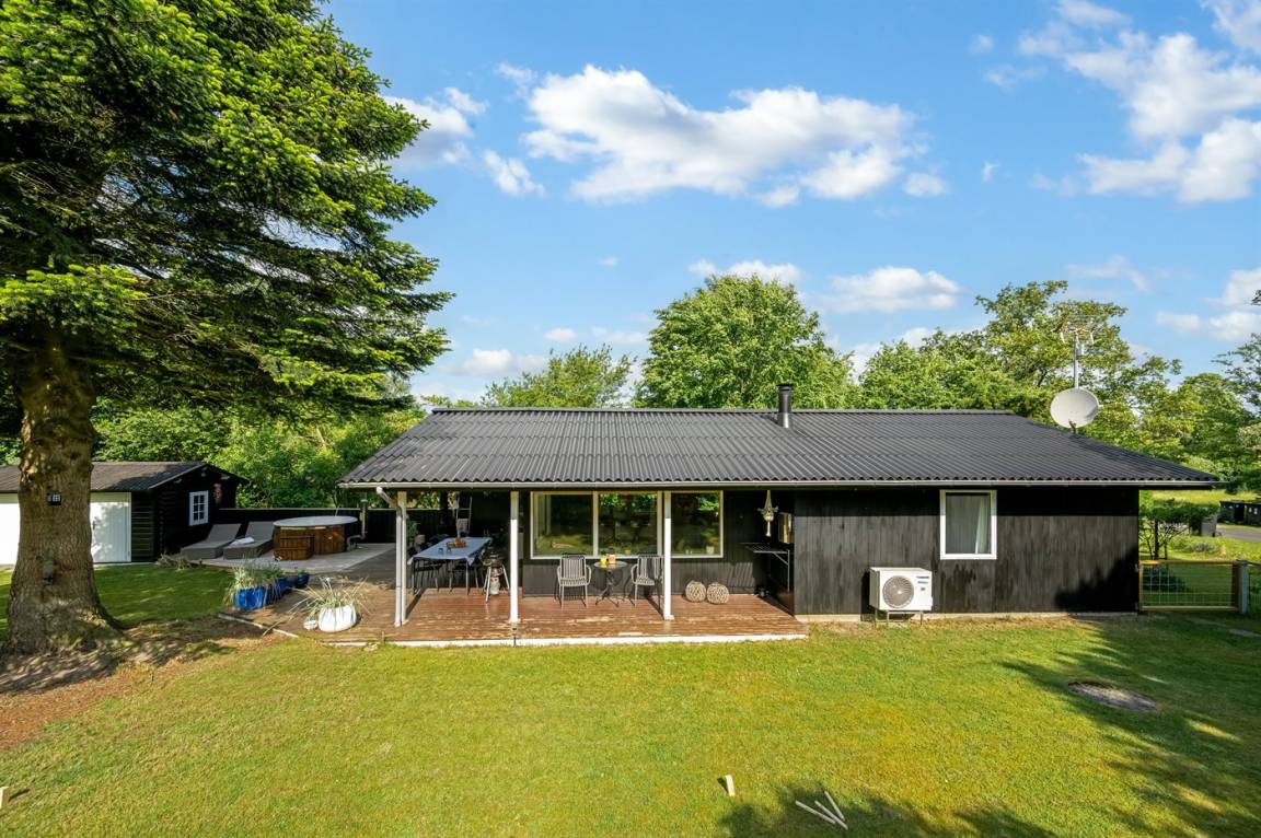 DraußenDie Ferienunterkunft liegt auf einem 925 m² großen Naturgrundstück. Das Grundstück ist eingezäunt. 80 cm hoher Drahtzaun. Die Entfernung zum Meer beträgt 6700 m. Die Entfernung zum Fjord beträgt 950 m. Die nächste Einkaufsmöglichkeit liegt 1500 m entfernt. Es stehen sowohl offene als auch 15 m² überdachte Terrassen zur Verfügung. Geräteraum. Parkplatz auf dem Grundstück.