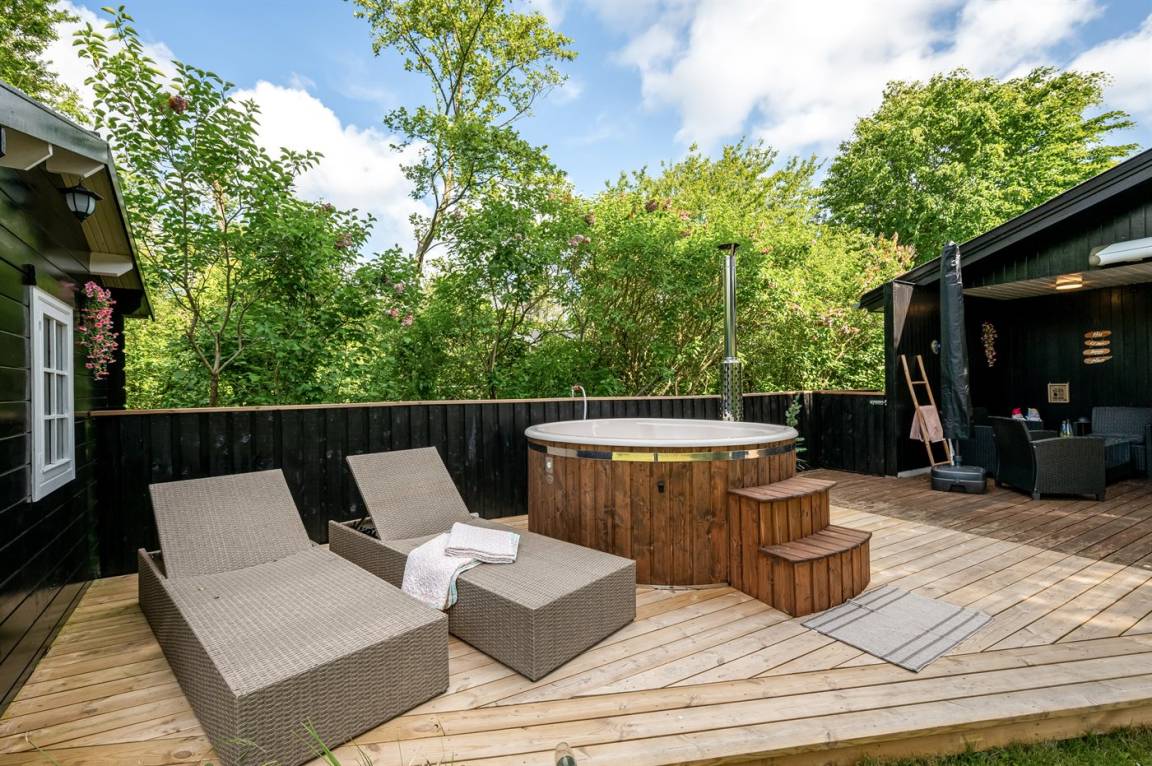 Die Holzterrasse wurde 2025 erweitert, sodass du das Leben im Freien nun noch besser genießen kannst – zum Beispiel im Hot-Tub, der sowohl im Sommer als auch im Winter zur Verfügung steht. Vom warmen Wasser umgeben kannst du vollkommen entspannen, und am Abend kannst du den Blick in den wunderschönen Sternenhimmel genießen.