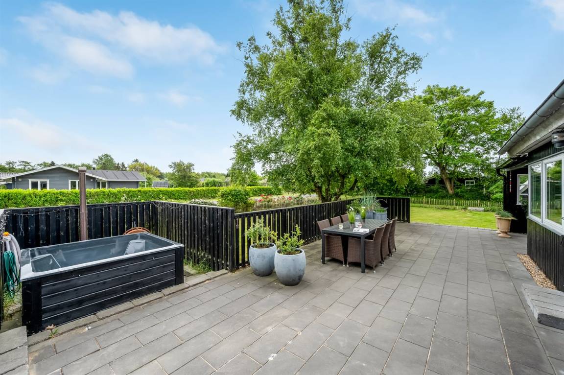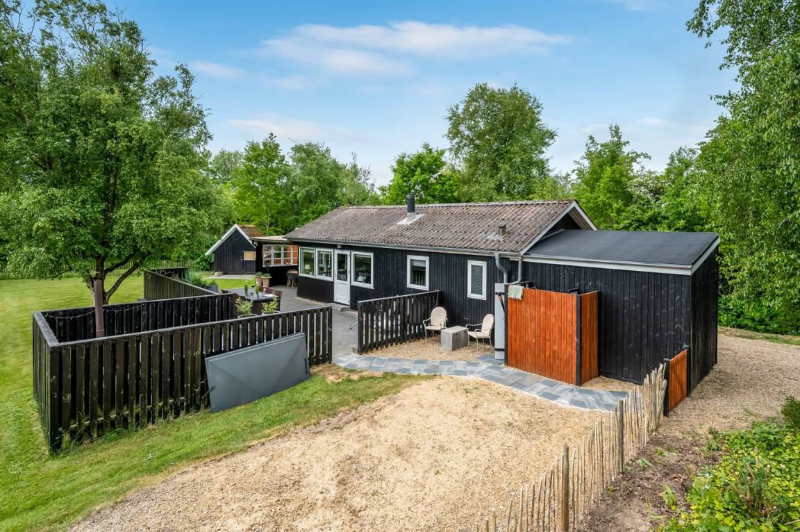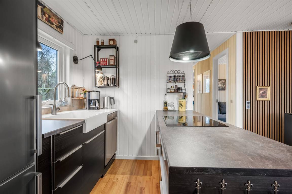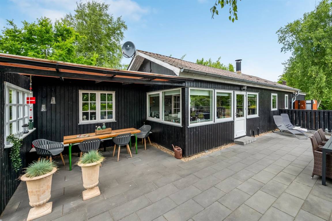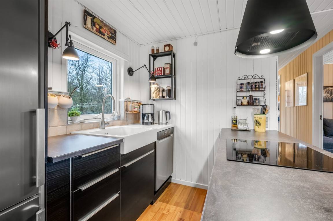 DraußenDie Ferienunterkunft liegt auf einem 994 m² großen Naturgrundstück. Das Grundstück ist eingezäunt. Die Entfernung zum Meer beträgt 7200 m. Die Entfernung zum Fjord beträgt 550 m. Es gibt einen Badesteg in der Nähe. Die nächste Einkaufsmöglichkeit liegt 800 m entfernt. Es steht ein offenes Terrassenareal zur Verfügung. Außerdem gibt es überdachte Terrasse. Geräteraum. Parkplatz auf dem Grundstück.