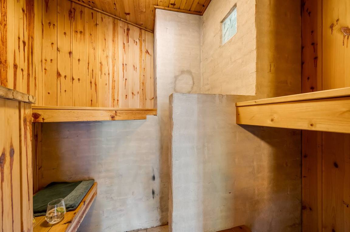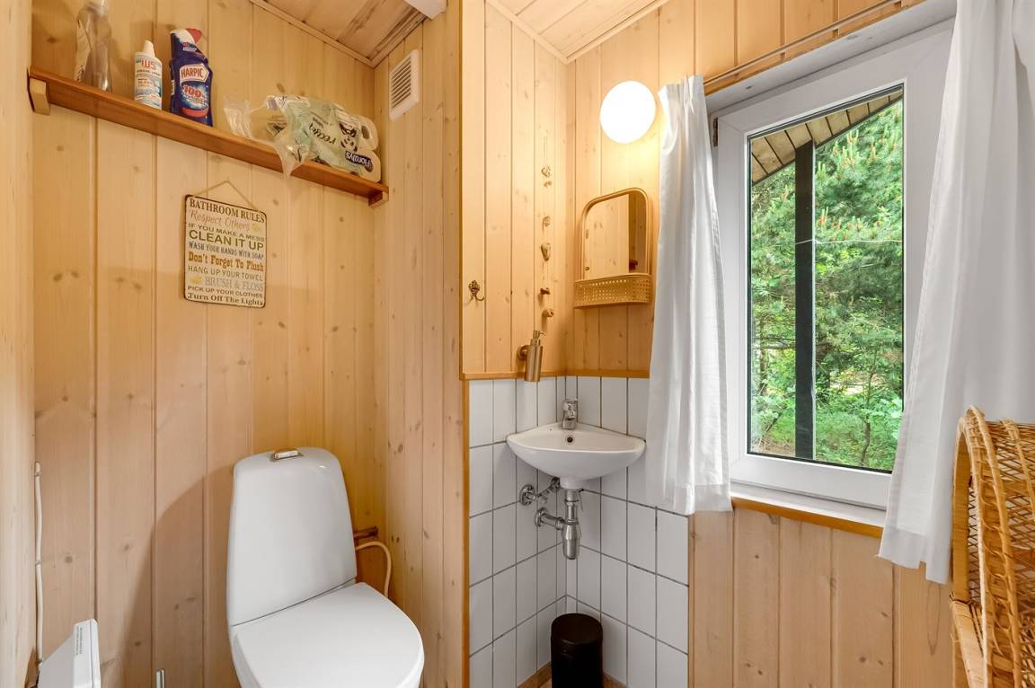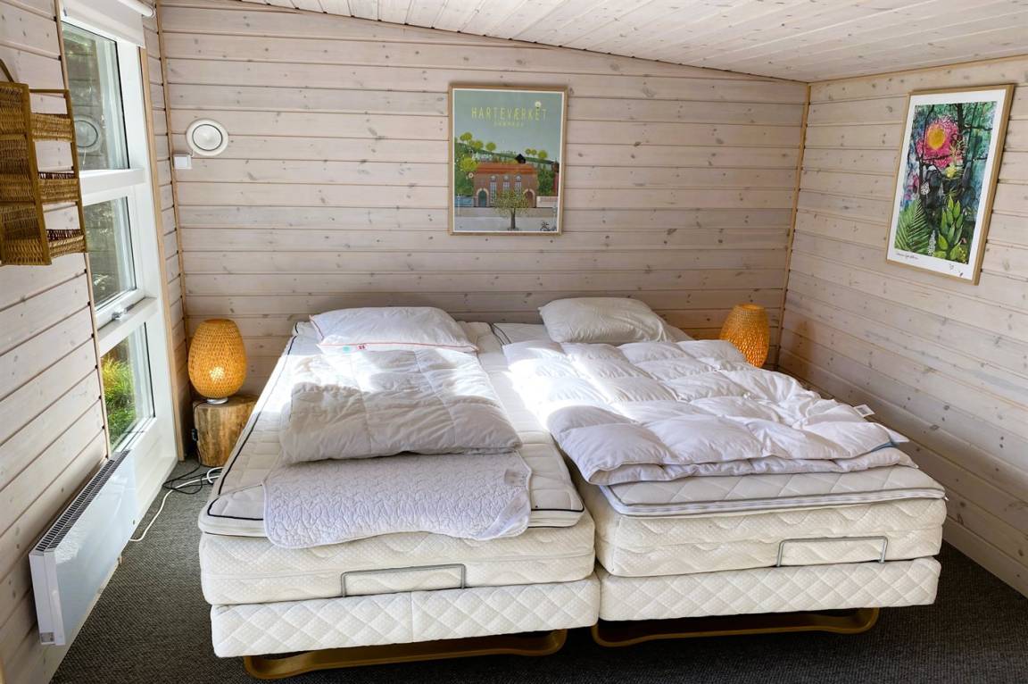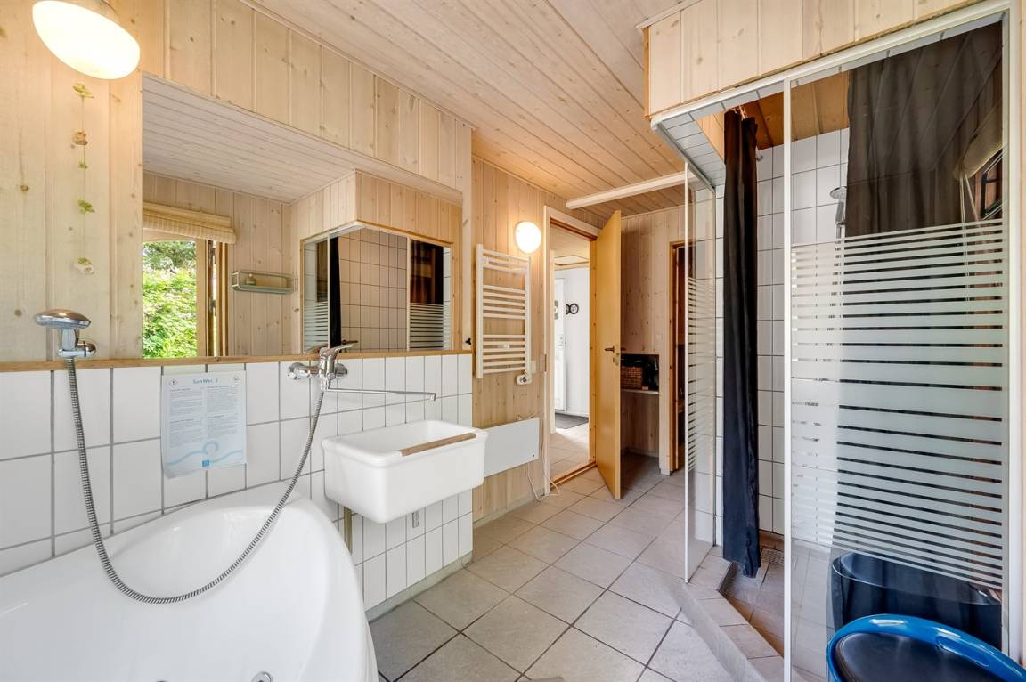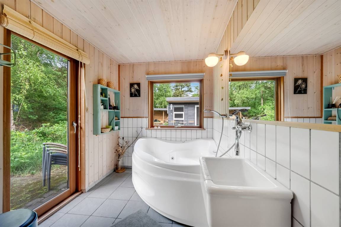 Drinnen bietet das Ferienhaus sowohl einen Whirlpool als auch eine Sauna, und im Wohnzimmer gibt es große Panoramafenster zum Wald hin. Hier kannst du auf dem Sofa sitzen und dich entspannen, während du dem Vogelleben folgst. Es kommen sehr oft Eichhörnchen und Hasen vorbei und begrüßen dich. Draußen schaffen die vielen Bäume auf dem Grundstück eine ganz besondere Atmosphäre. Auf den großen Terrassen bieten die Pflanzen Schutz, und es gibt reichlich Gelegenheit, die Sonne von morgens bis abends zu genießen. Auf dem Grundstück gibt es auch ein Trampolin, wo Kinder und jung gebliebene Seelen viele gemütliche Stunden verbringen können.