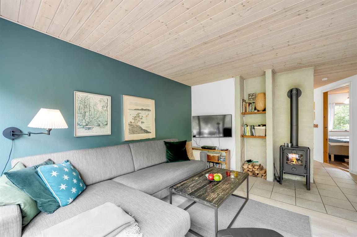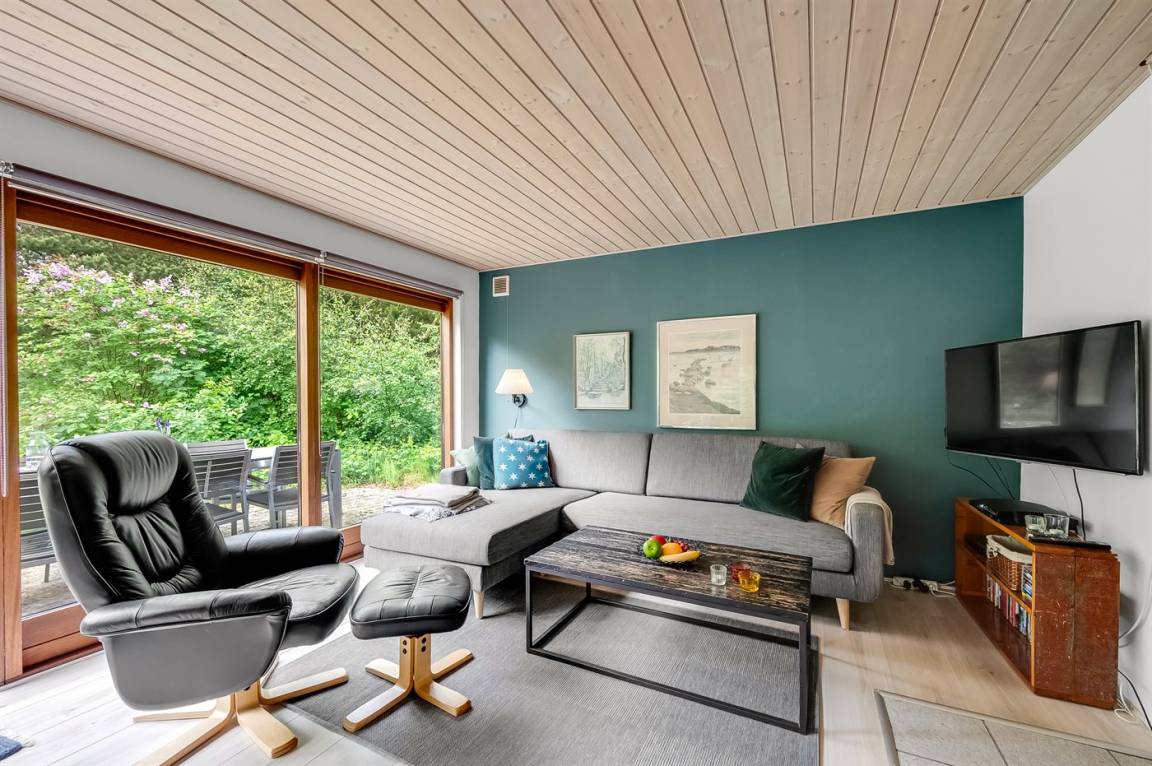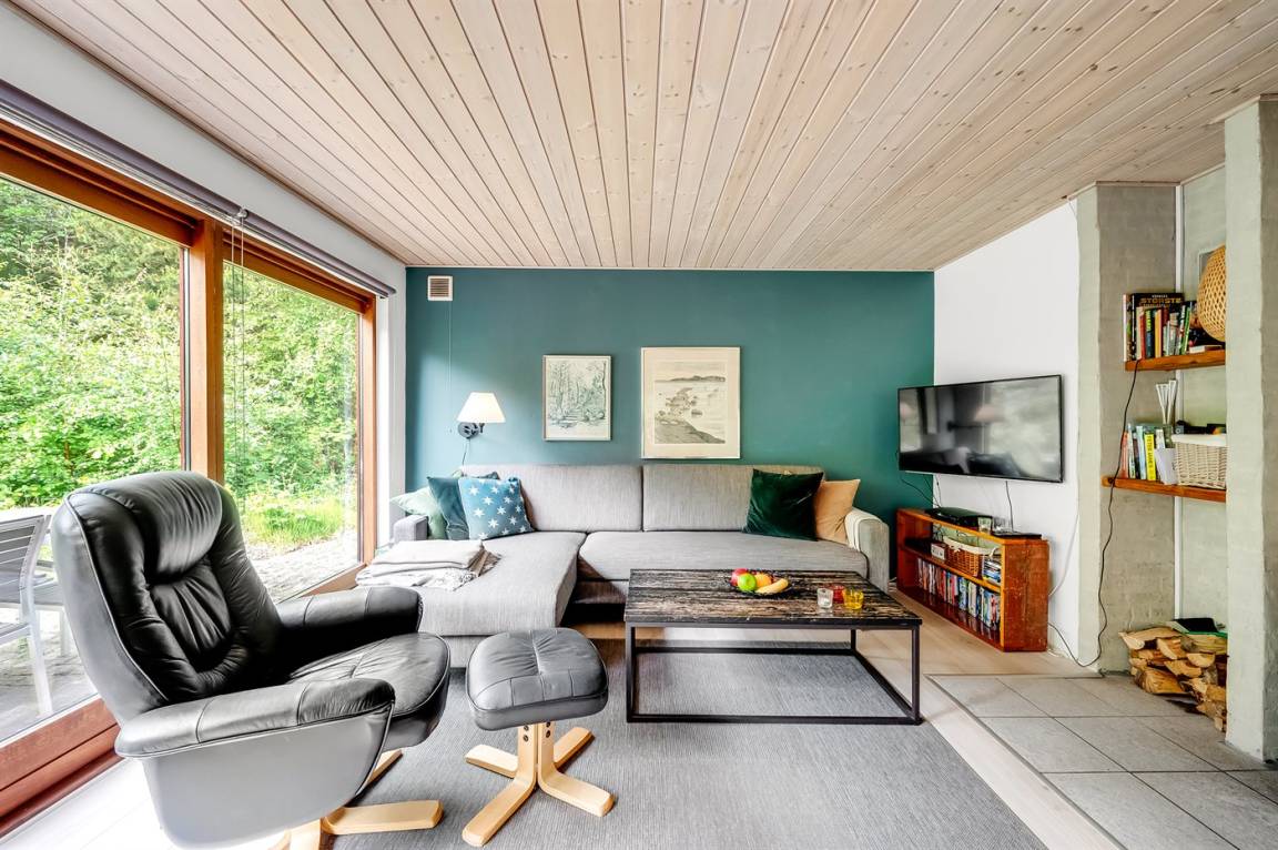 DraußenDie Ferienunterkunft liegt auf einem 1600 m² großen Naturgrundstück. Die Entfernung zum Fjord beträgt 350 m. Die nächste Einkaufsmöglichkeit liegt 4500 m entfernt. Es steht ein offenes Terrassenareal zur Verfügung. Schaukel. Trampolin. Die Entfernung zu einem Spielplatz beträgt 100 m. Es steht ein Grill zur Verfügung. Parkplatz auf dem Grundstück.