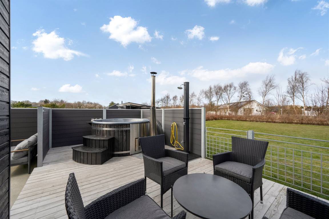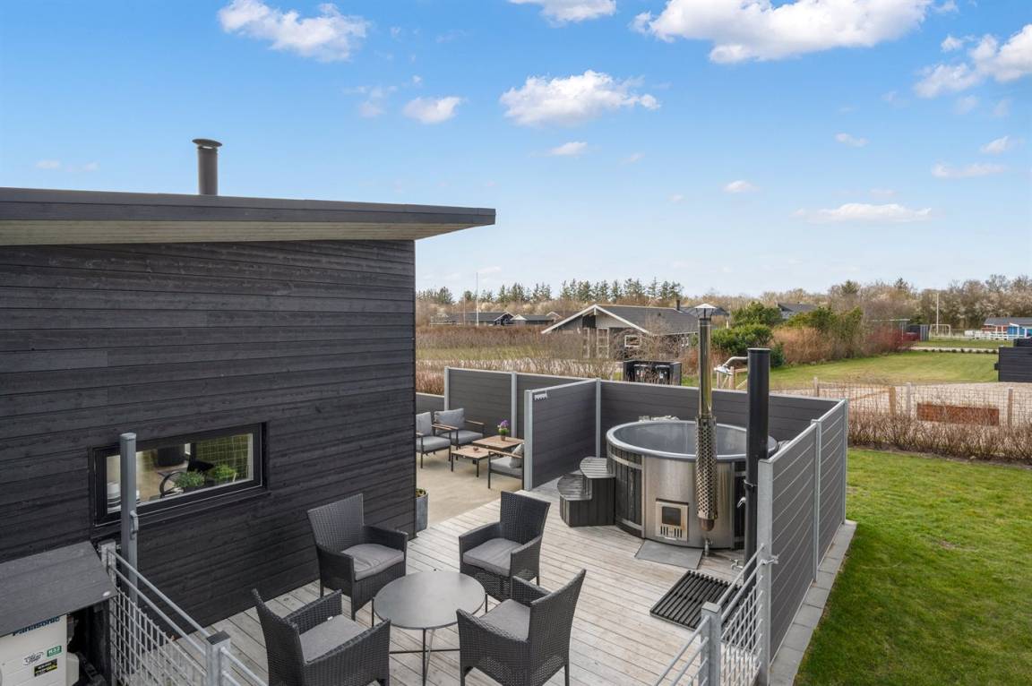 Dieses ganz besonders schöne Ferienhaus liegt in dem beliebten Feriengebiet Bork Havn. Zum Haus gehört eine ganz phantastische Terrasse mit einem Hot Tub für 6 Personen, der das ganze Jahr hindurch benutzt werden kann.