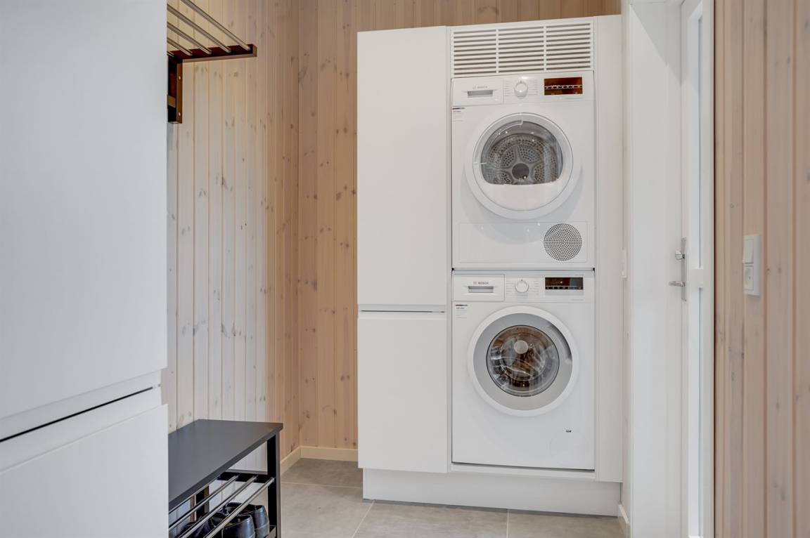 DraußenDie Ferienunterkunft liegt auf einem 1202 m² großen Naturgrundstück. Der Garten ist eingezäunt. Die Entfernung zum Fjord beträgt 1300 m. Die nächste Einkaufsmöglichkeit liegt 1100 m entfernt. Es steht ein 50 m² gesclossenes Terrassenareal zur Verfügung. Außendusche. Parkplatz auf dem Grundstück.