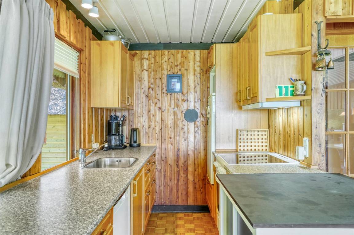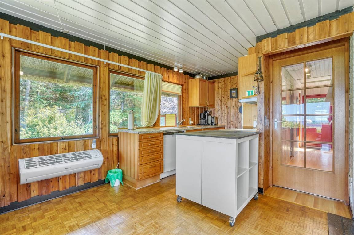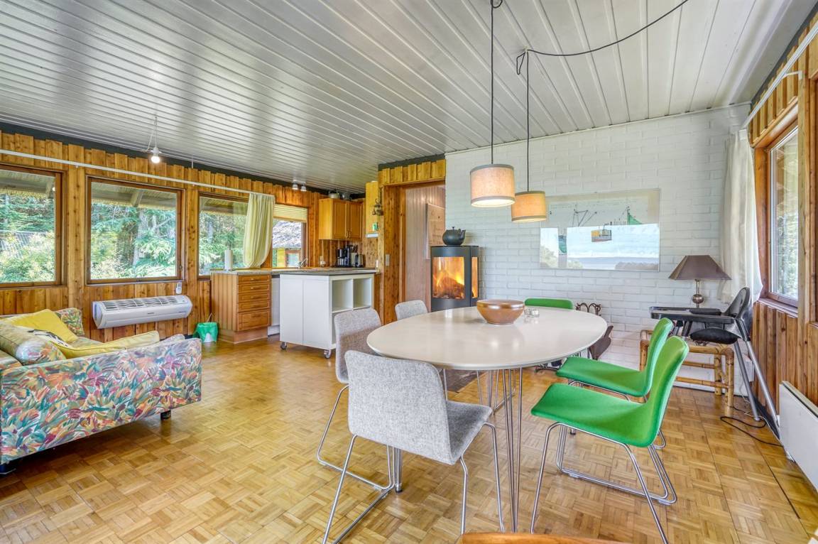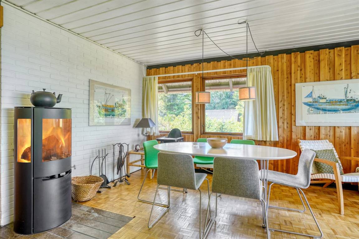 DraußenDie Ferienunterkunft liegt auf einem 2795 m² großen Naturgrundstück. Die Entfernung zum Fjord beträgt 100 m. Die nächste Einkaufsmöglichkeit liegt 6000 m entfernt. Es steht ein 40 m² Terrassenareal zur Verfügung. Parkplatz auf dem Grundstück.