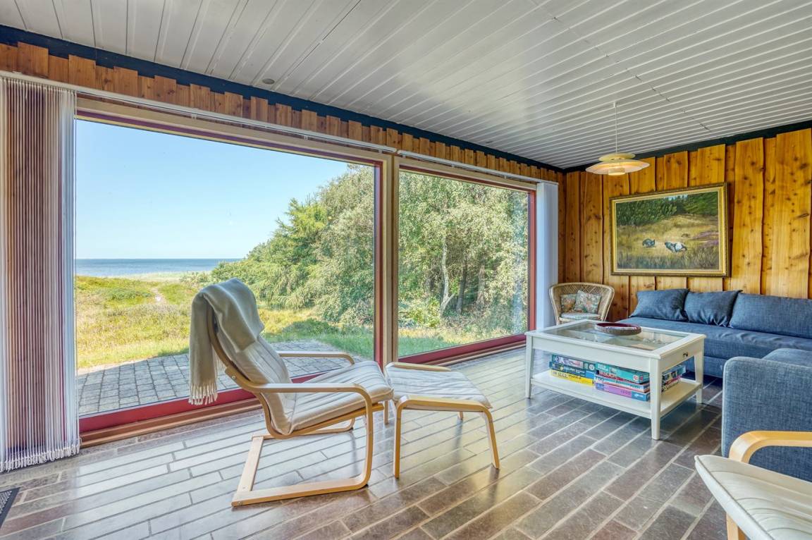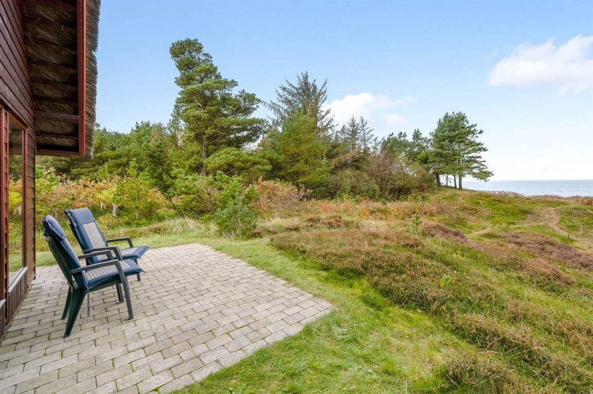 Mit Panoramaausblick auf den Ringkøbing Fjord liegt dieses gemütliche Ferienhaus älteren Jahrgangs mit Reetdach – auf einem großen leicht hügeligen Grundstück. Das Grundstück erstreckt sich bis an den Fjord hinunter und daher ist das Haus auch für Surfer gut geeignet. Die Einrichtung ist funktionell mit verschiedenem Mobiliar. Es gibt mehrere gute Fahrradrouten im Gebiet u. a. führt eine nach Bork Havn und eine andere nach Skaven Strand.